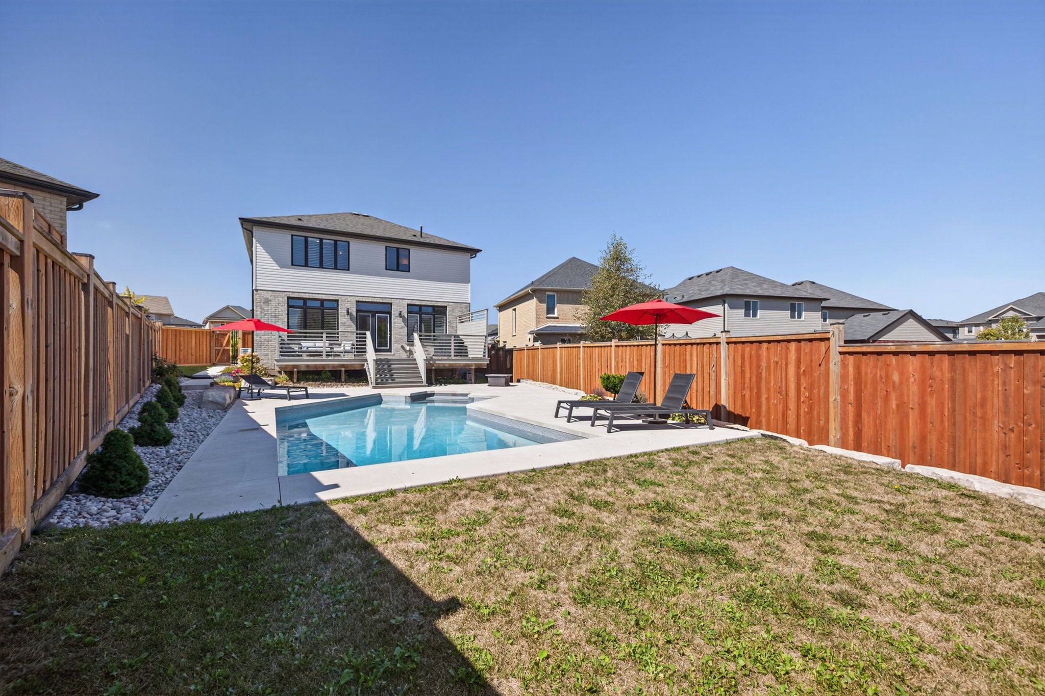 Located in a desirable and quiet northwest london neighbourhood, this 2-storey family home has curb appeal, a stunning fully fenced backyard and great pool for the family . The open concept main floor plan features a large living room with fireplace insert and accent wall. The adjacent dining area has plenty of natural light and provides access to the backyard. The fabulous kitchen overlooks it all highlighted by a built-in oven and countertop range, amazing island with bar fridge & bar seating, and plenty of storage. The second level has a great primary suite with large walk-in closet and a fantastic ensuite bathroom featuring double vanity, soaker tub and a tiled shower with glass door. There are 2 additional bedrooms and a full bathroom on the second level. The basement is unfinished and awaits your finishing touches. The highlight of the home is the fully fenced backyard with a large deck area leading to a concrete patio surrounding a lovely inground pool. Book your private showing today!
