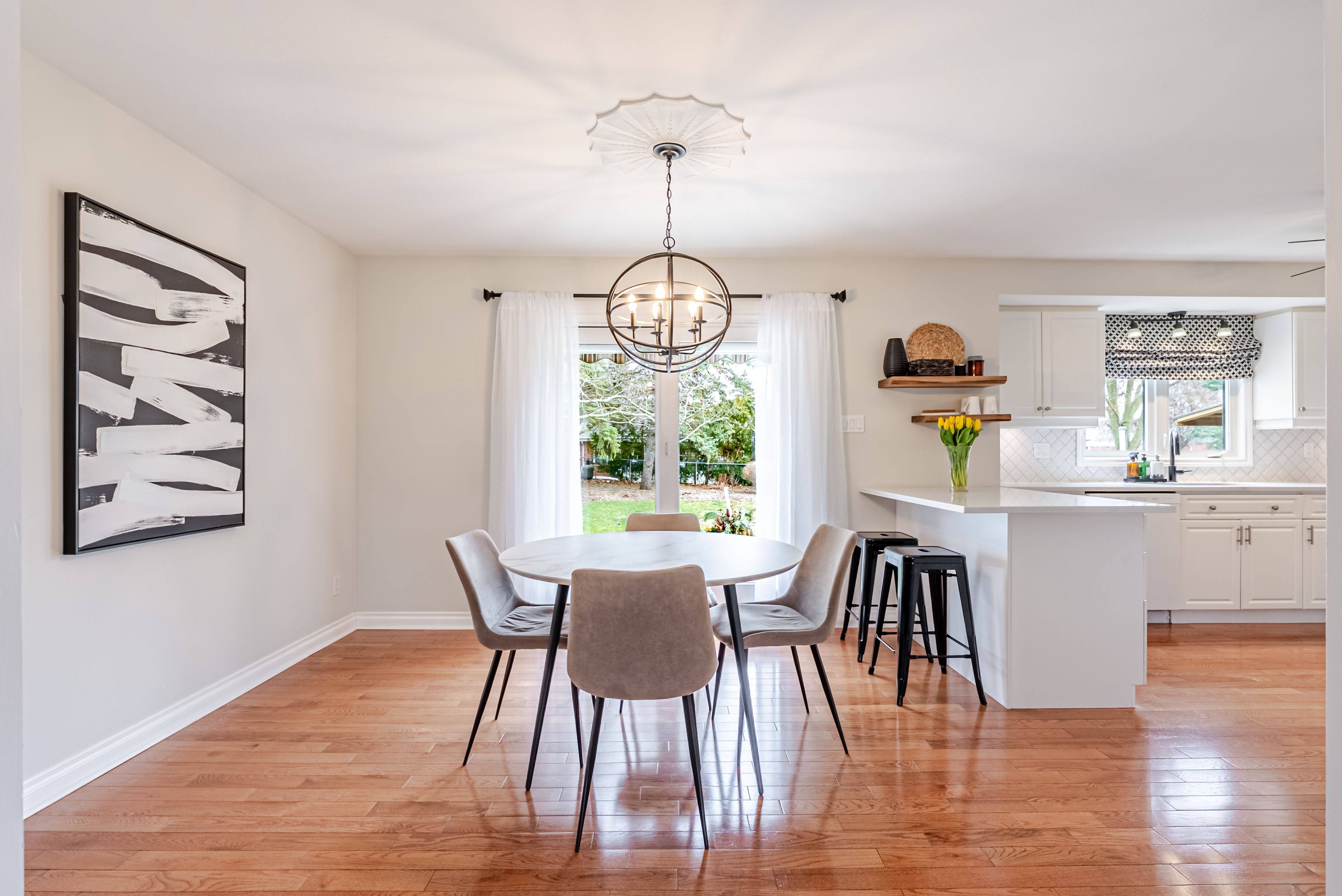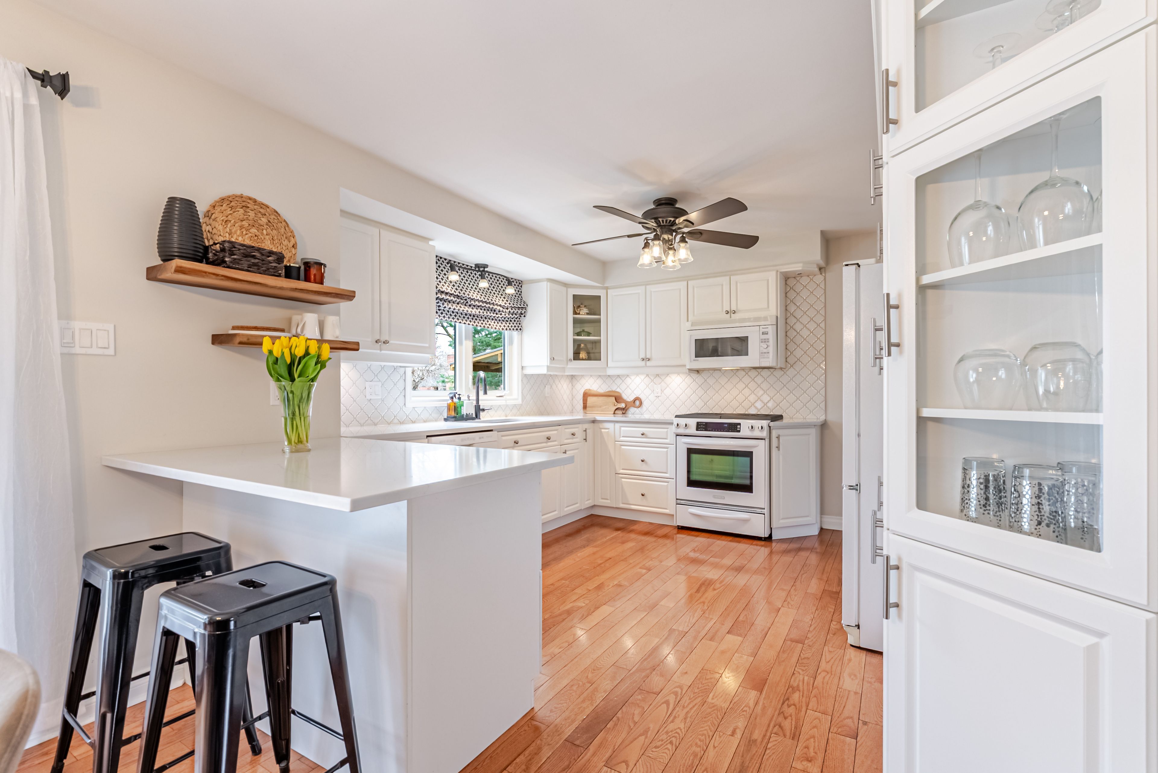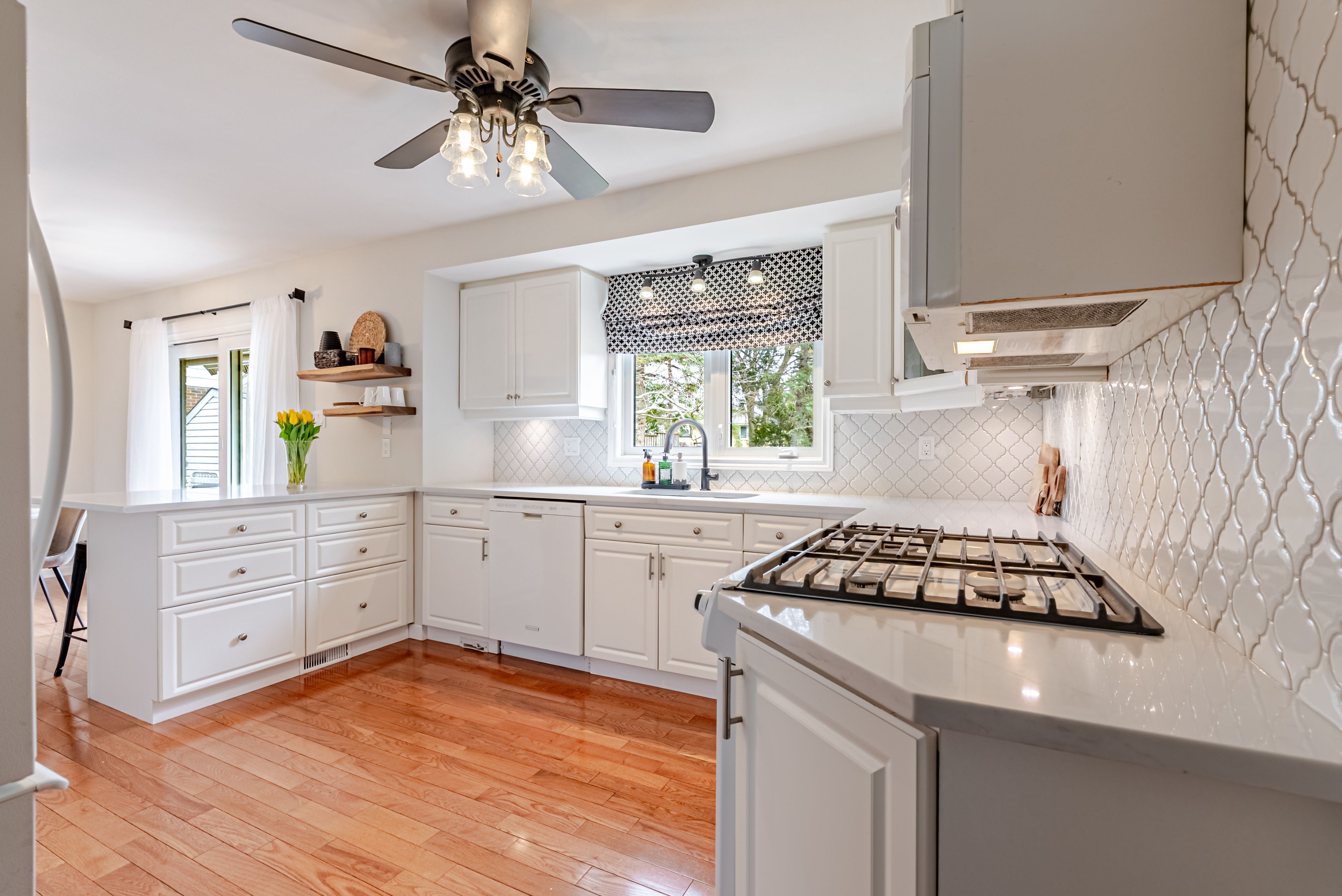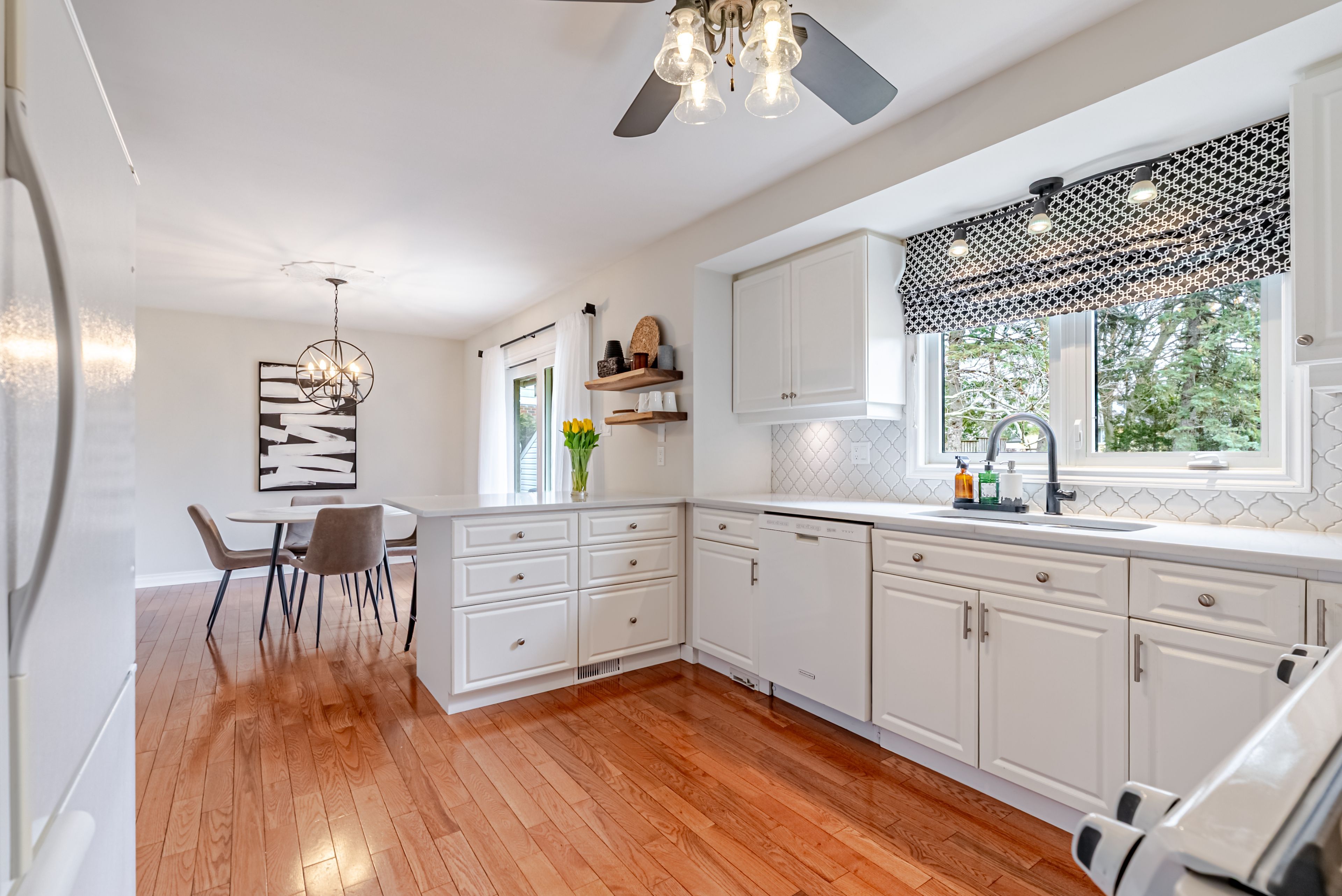 • Updated kitchen with ample cabinetry, perfect for cooking and dining.