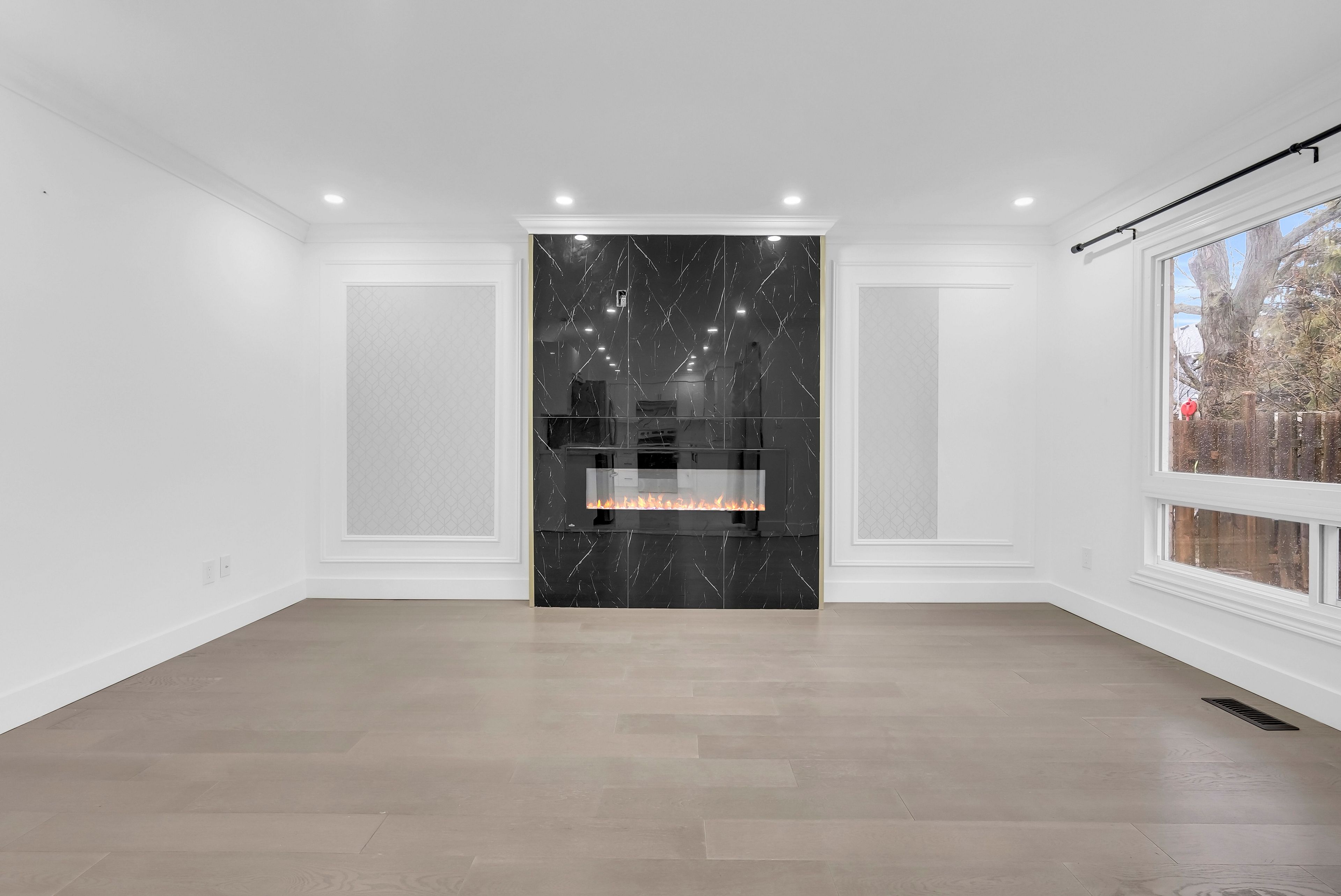 • Custom tile fireplace adds warmth to the living space.