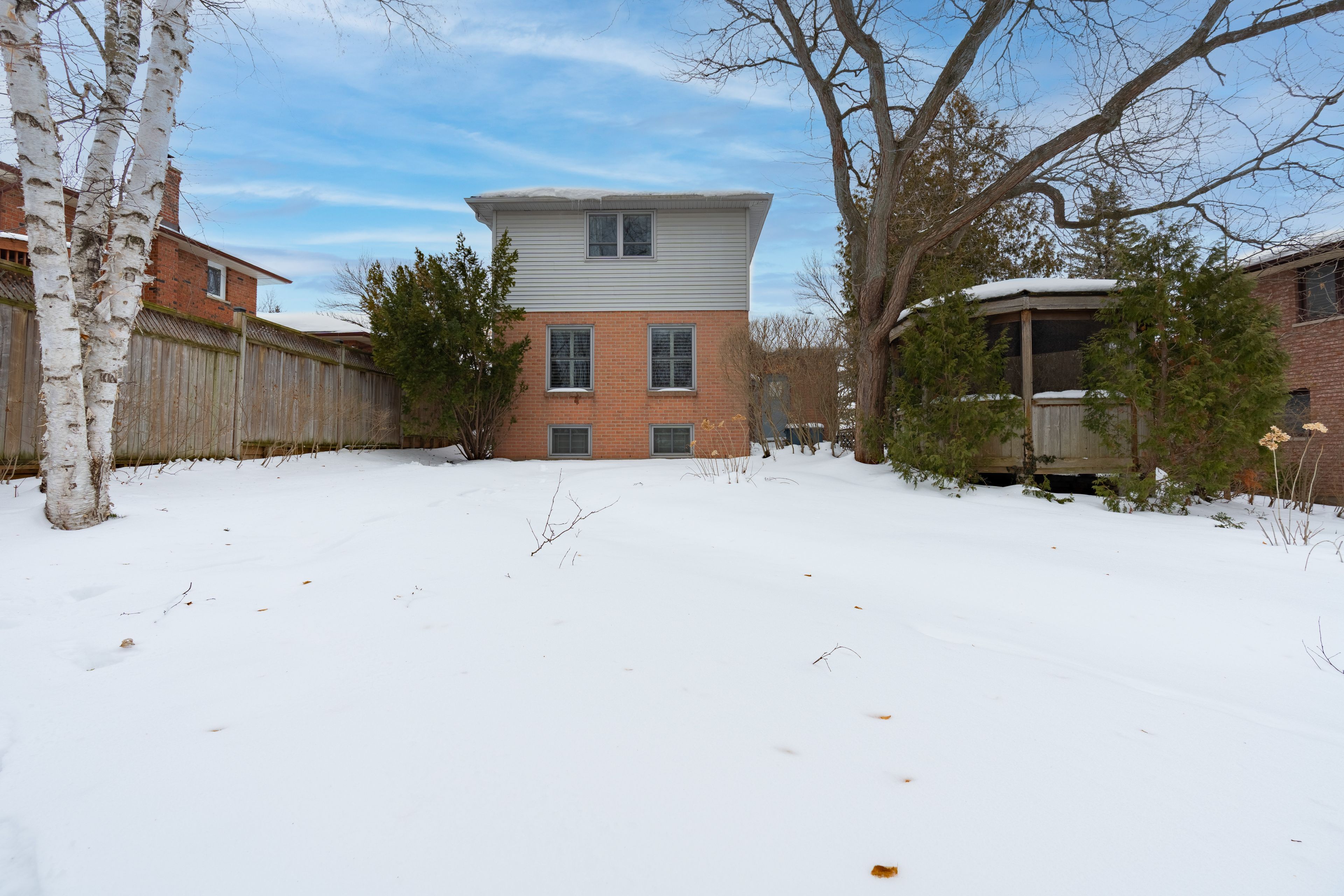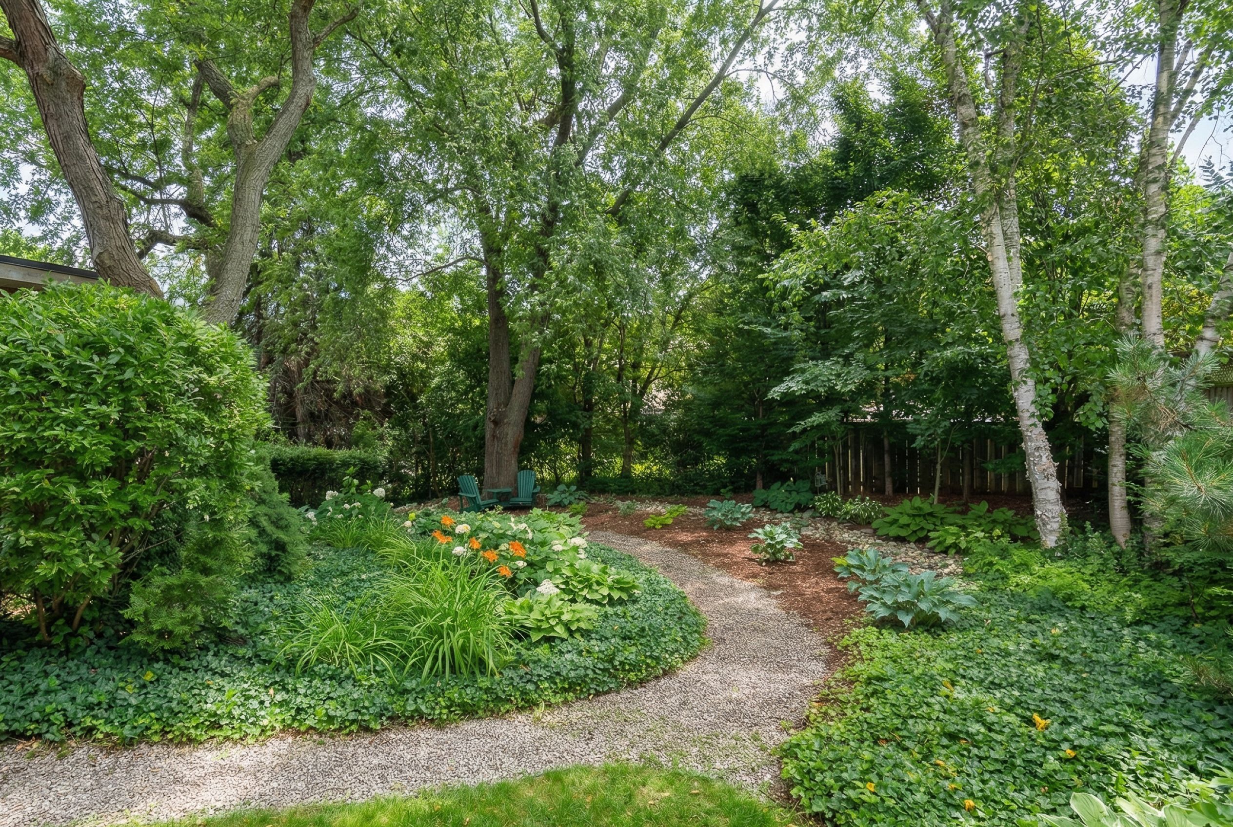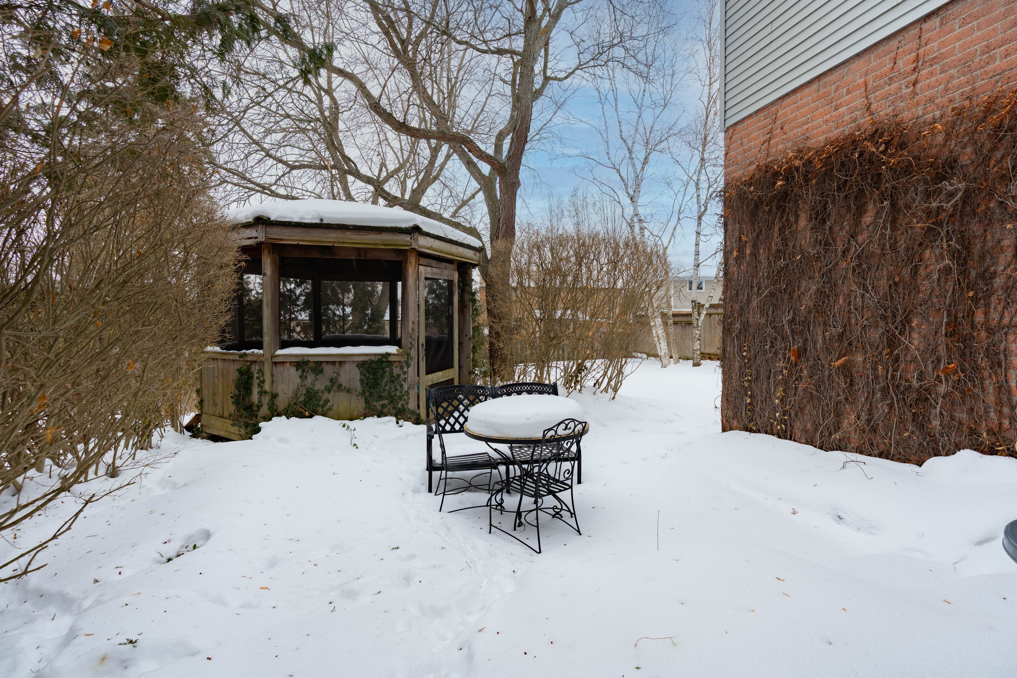 • Large deep lot with mature trees, perennial gardens, and a gazebo.
