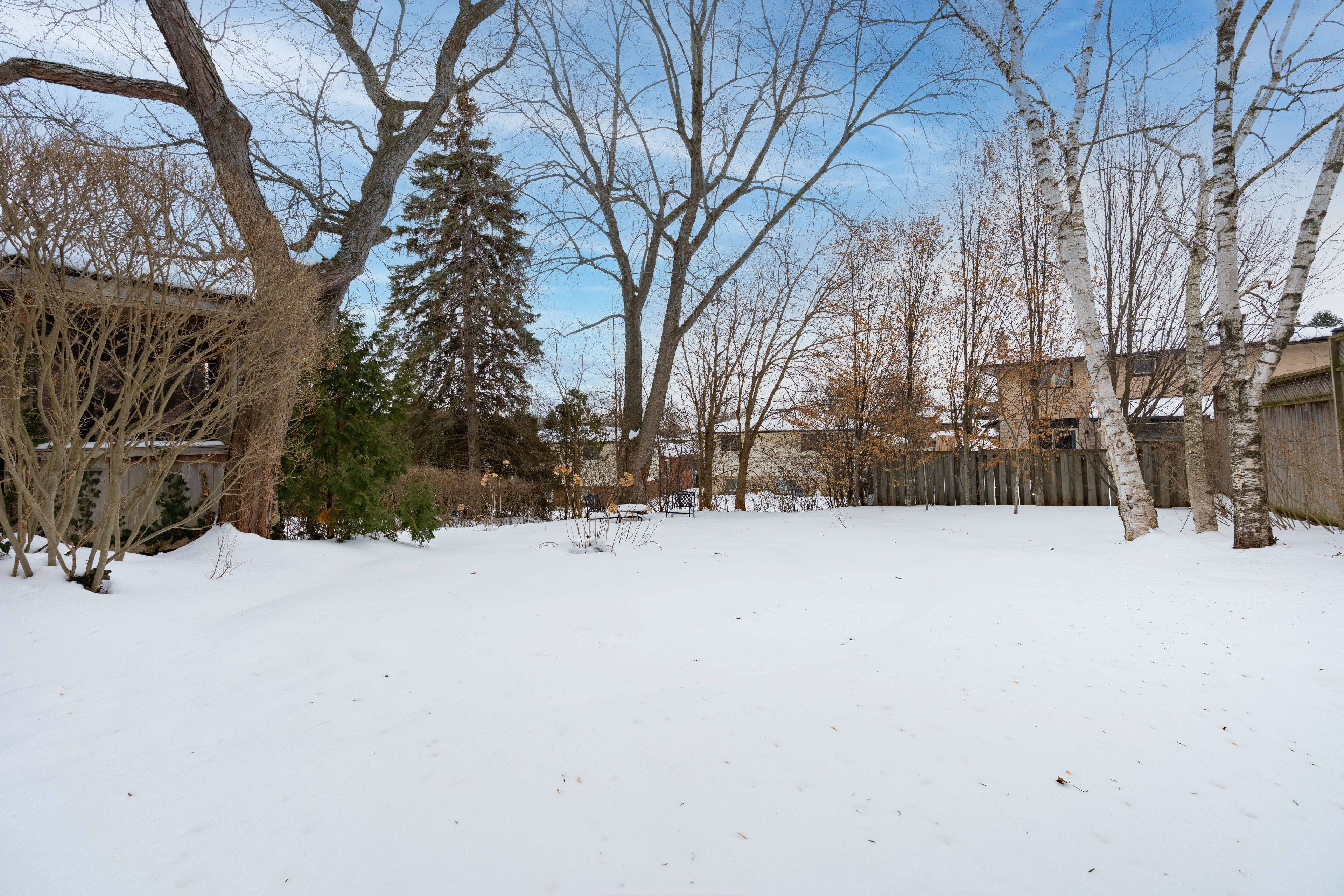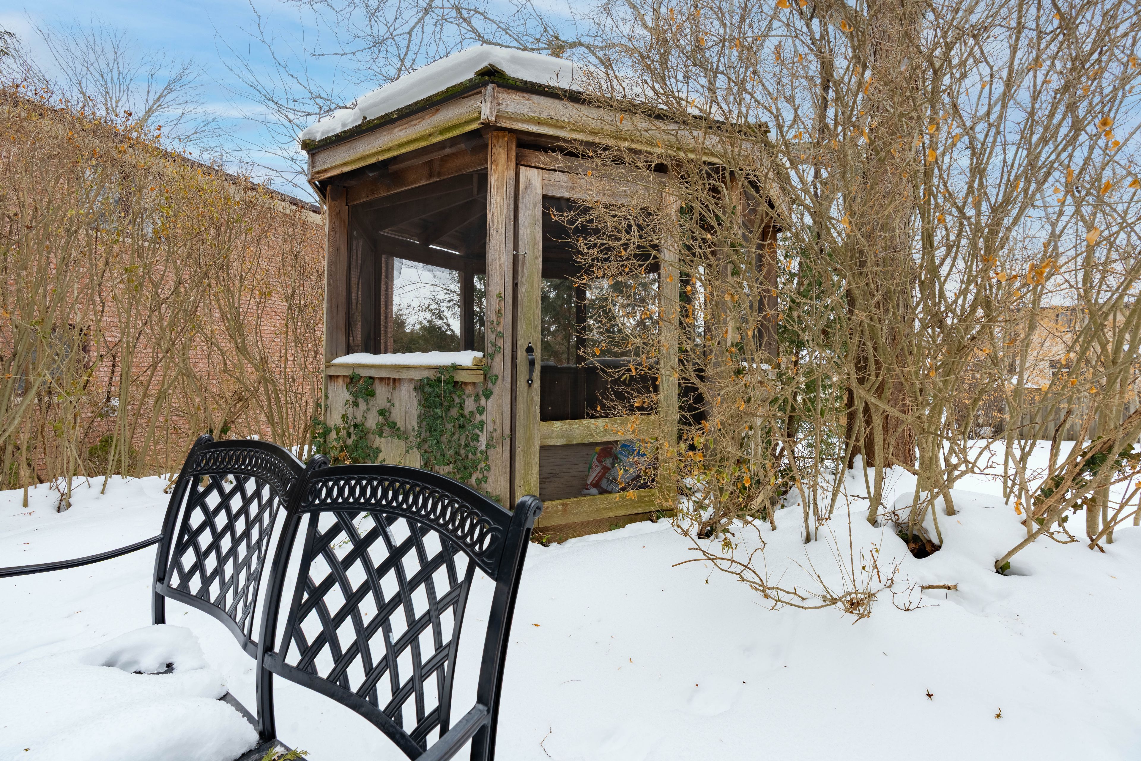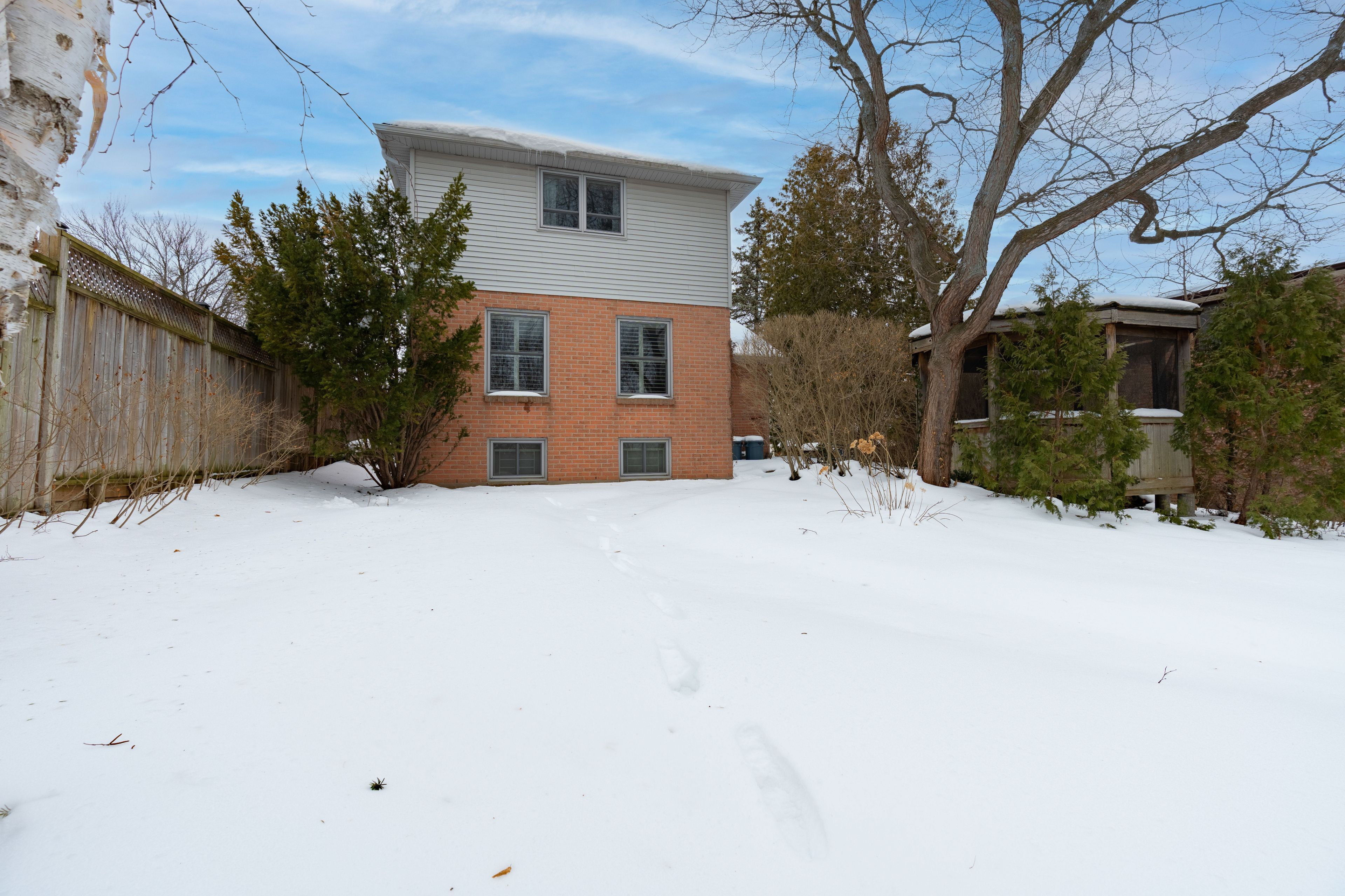 • Large deep lot with mature trees, perennial gardens, and a gazebo.