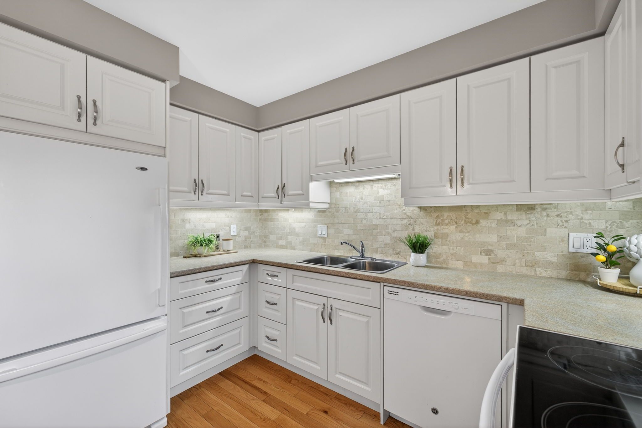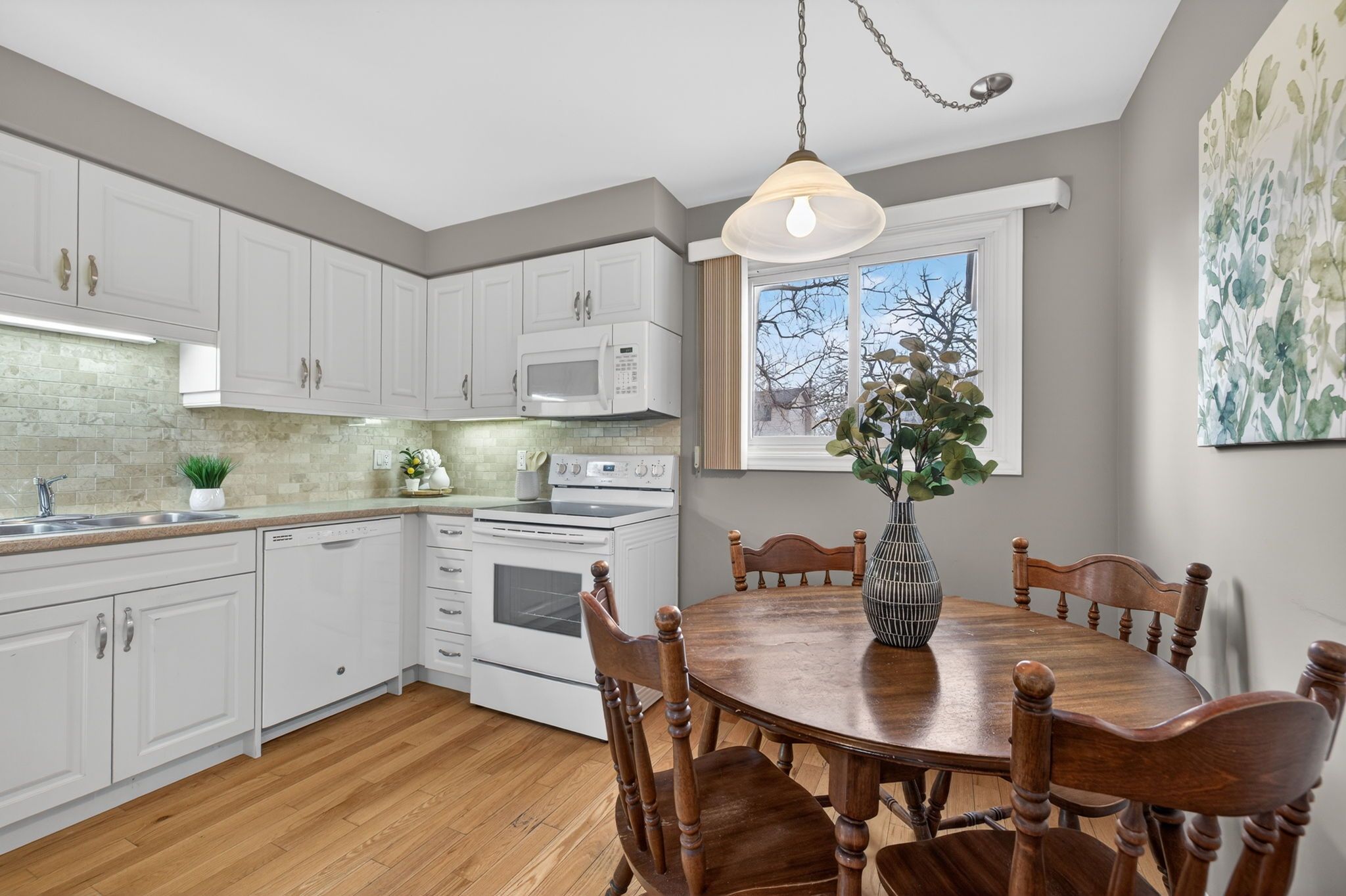 • Updated eat-in kitchen with ample storage and stylish finishes.