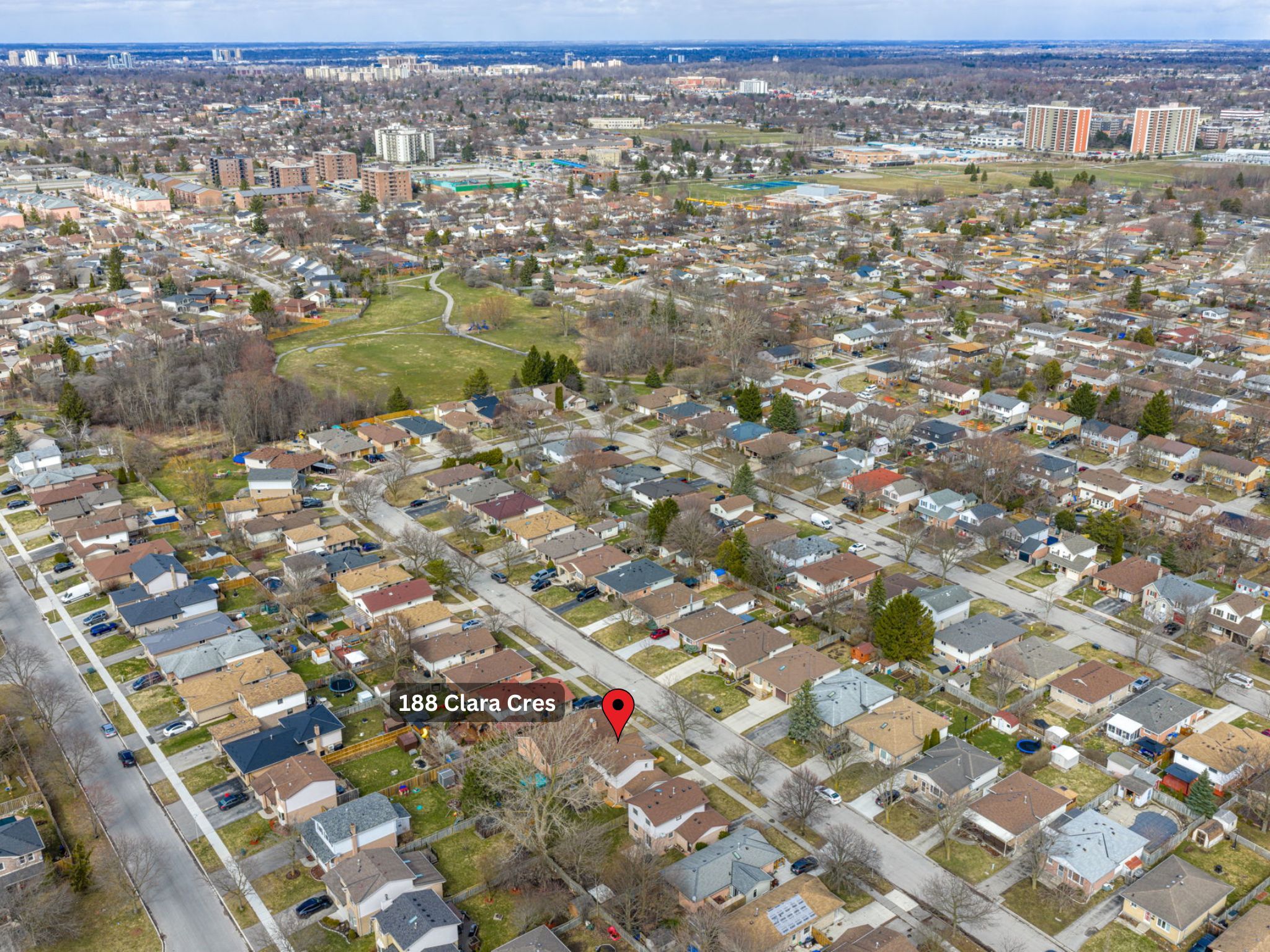 Welcome to 188 clara crescent, a lovingly maintained two storey detached home in london's desirable white oaks neighbourhood. Owned and cared for by the same homeowner for the past 34 years, this property offers a fantastic opportunity to settle into a well established, family friendly area with close proximity to shopping, schools and convenient access to highway 401. The exterior is neat and tidy, featuring a classic brick front façade, a double wide concrete driveway and a single attached garage with inside entry. Step inside to a bright two storey foyer that opens into a spacious main floor. Hardwood flooring runs throughout the formal living room, dining room and kitchen, creating a warm and cohesive feel. At the front of the home, the formal dining room showcases a large bay window that fills the space with natural light, while the rear living room offers direct access to the backyard, perfect for everyday living and entertaining. The fully fenced backyard provides plenty of green space, mature trees and a generous sundeck ideal for summer gatherings. Back inside, the updated eat in kitchen features a functional u shaped layout with white cabinetry, ample storage, updated countertops and a stylish tile backsplash. A convenient two piece powder room completes the main level. Upstairs, you will find three generously sized bedrooms, including one with hardwood flooring, along with a well appointed four piece bathroom. The finished lower level adds valuable living space with a large rec room, while also offering plenty of unfinished space for storage and laundry. As an added bonus, the seller has contracted byron roofing to replace the shingles prior to closing, providing peace of mind and a worry free upgrade for years to come. This is a fantastic opportunity to own a solid, well cared for home in a prime location, ready for its next chapter.