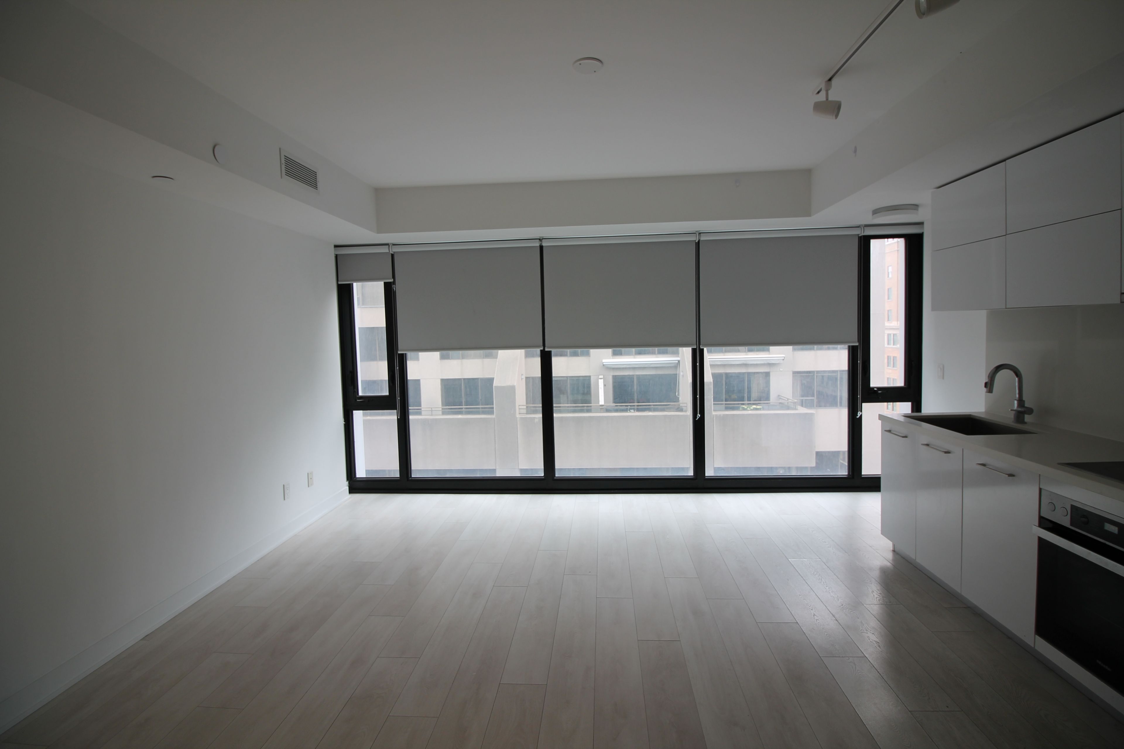 • Bright interior with floor-to-ceiling windows and quality laminate flooring.