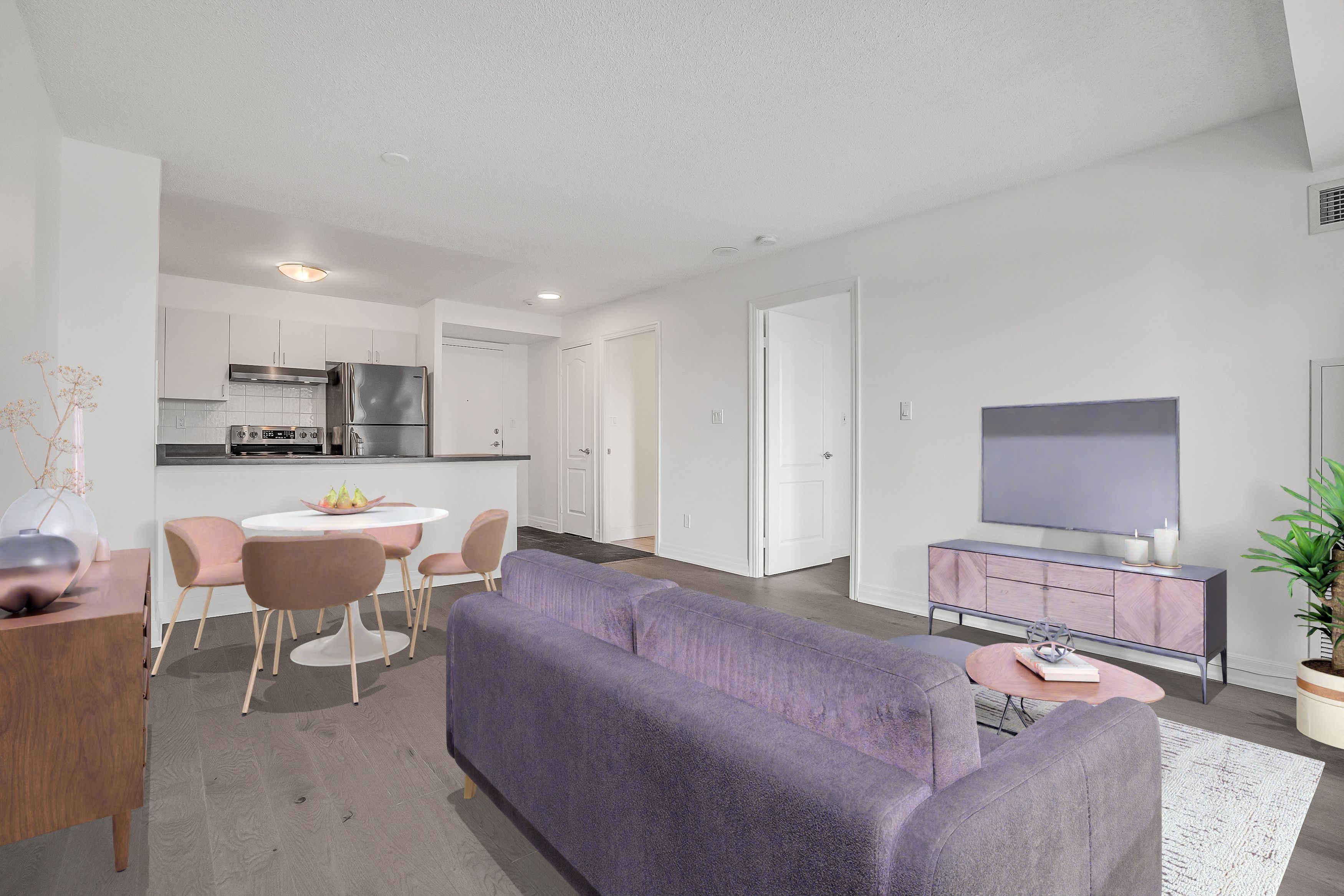 Stylish & spacious 1+1 bedroom condo in prime north york ideal for first-time buyers or investors! Freshly updated in 2025 with new engineered hardwood flooring & freshley painted, this bright & modern condo offers the perfect blend of comfort, functionality, & location. The open-concept living and dining area features west-facing views, while the kitchen is outfitted with stainless steel appliances, a breakfast bar, and ceramic finishes. The enclosed den with double doors & a walk-out to a private balcony offers the flexibility of a second bedroom or a dedicated home office. Enjoy premium amenities such as 24-hour concierge, gym, indoor pool, sauna, guest suites, party room, & visitor parking. With a walk score of 95, you're steps from the ttc, subway, parks, shops, restaurants, arts & community centres, top-rated schools, & major retailers like whole foods & loblaws. Maintenance fees include heat, water, a/c, parking, & building insurance. Also included is underground parking & a locker. Move-in ready & available for immediate possession. This is a smart buy in one of torontos most connected & desirable neighbourhoods.