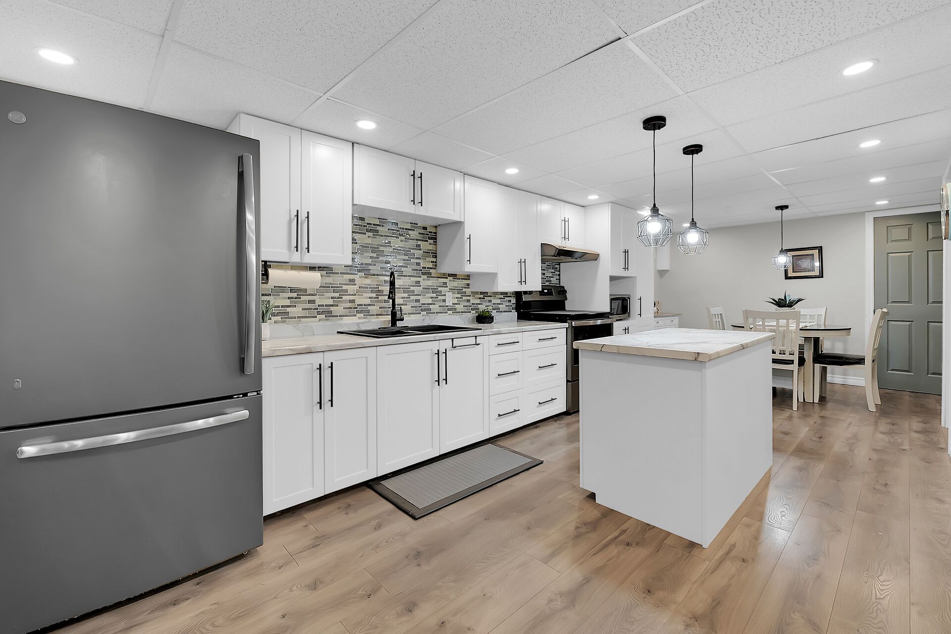 • Finished basement includes a separate suite with two bedrooms and a kitchen.