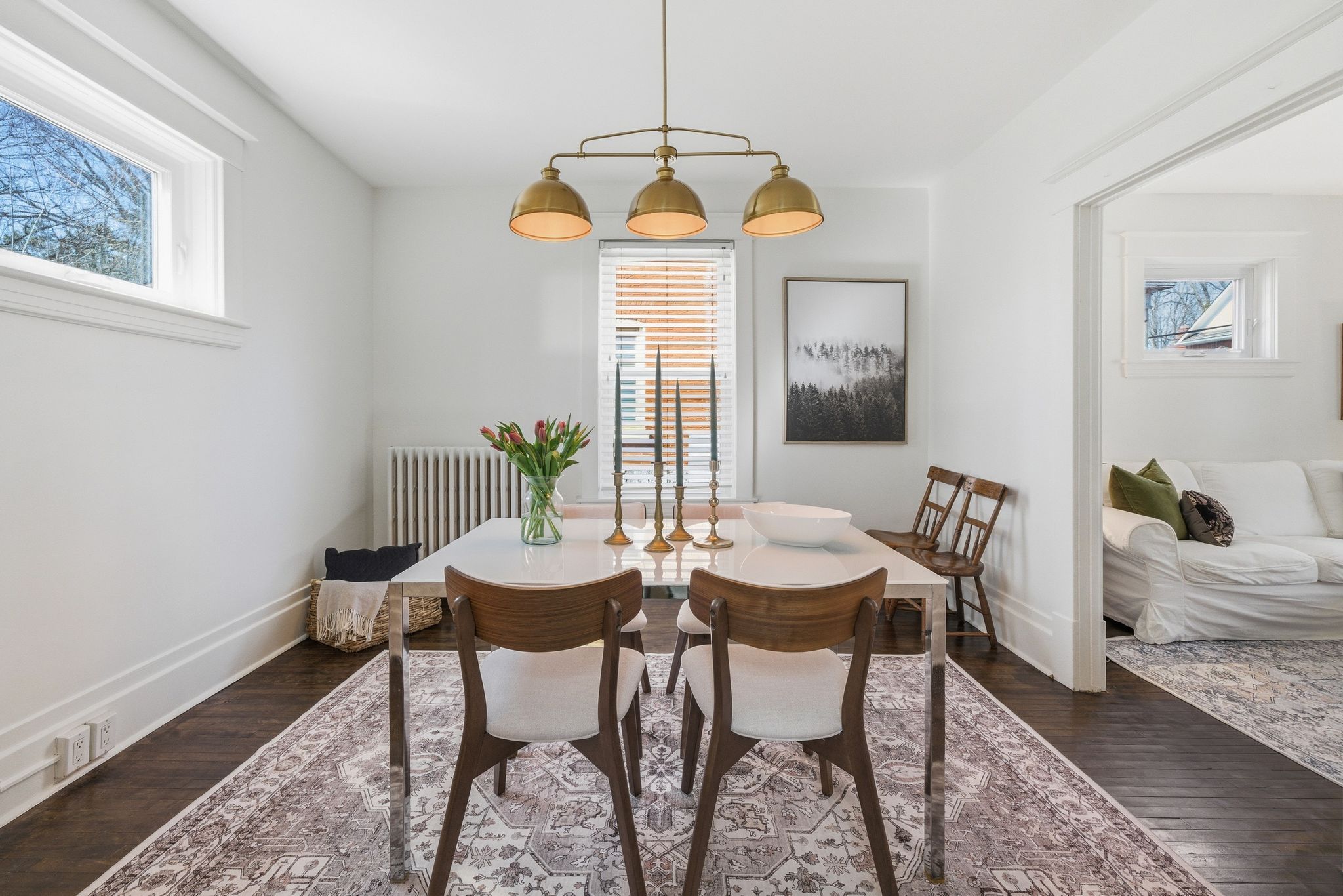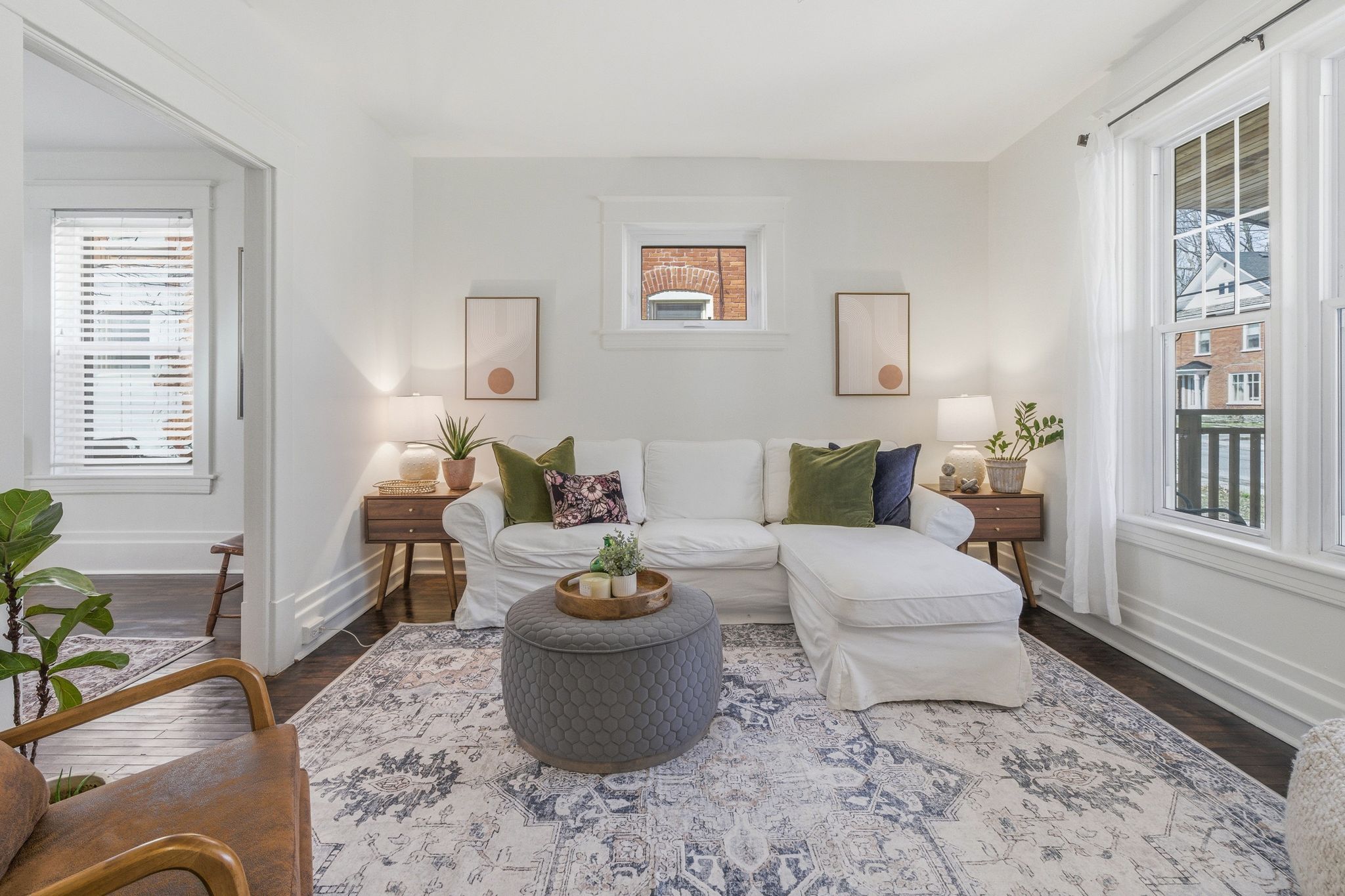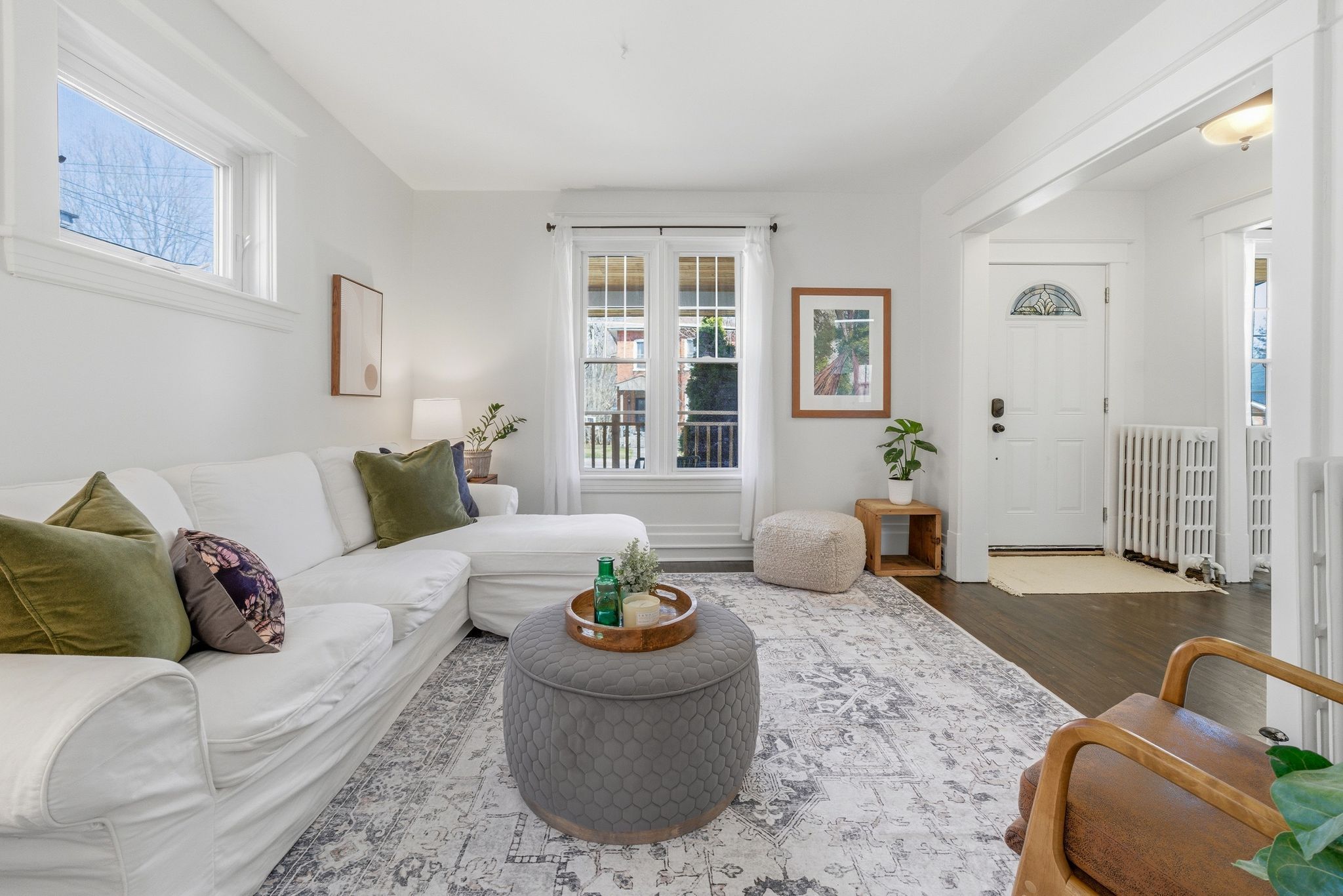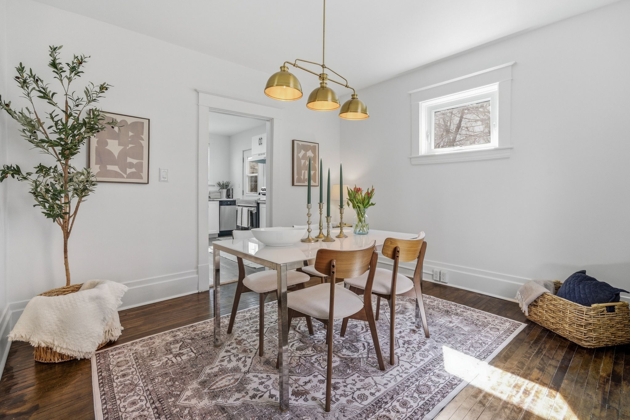 • Bright interior with updated finishes and a modern kitchen.
