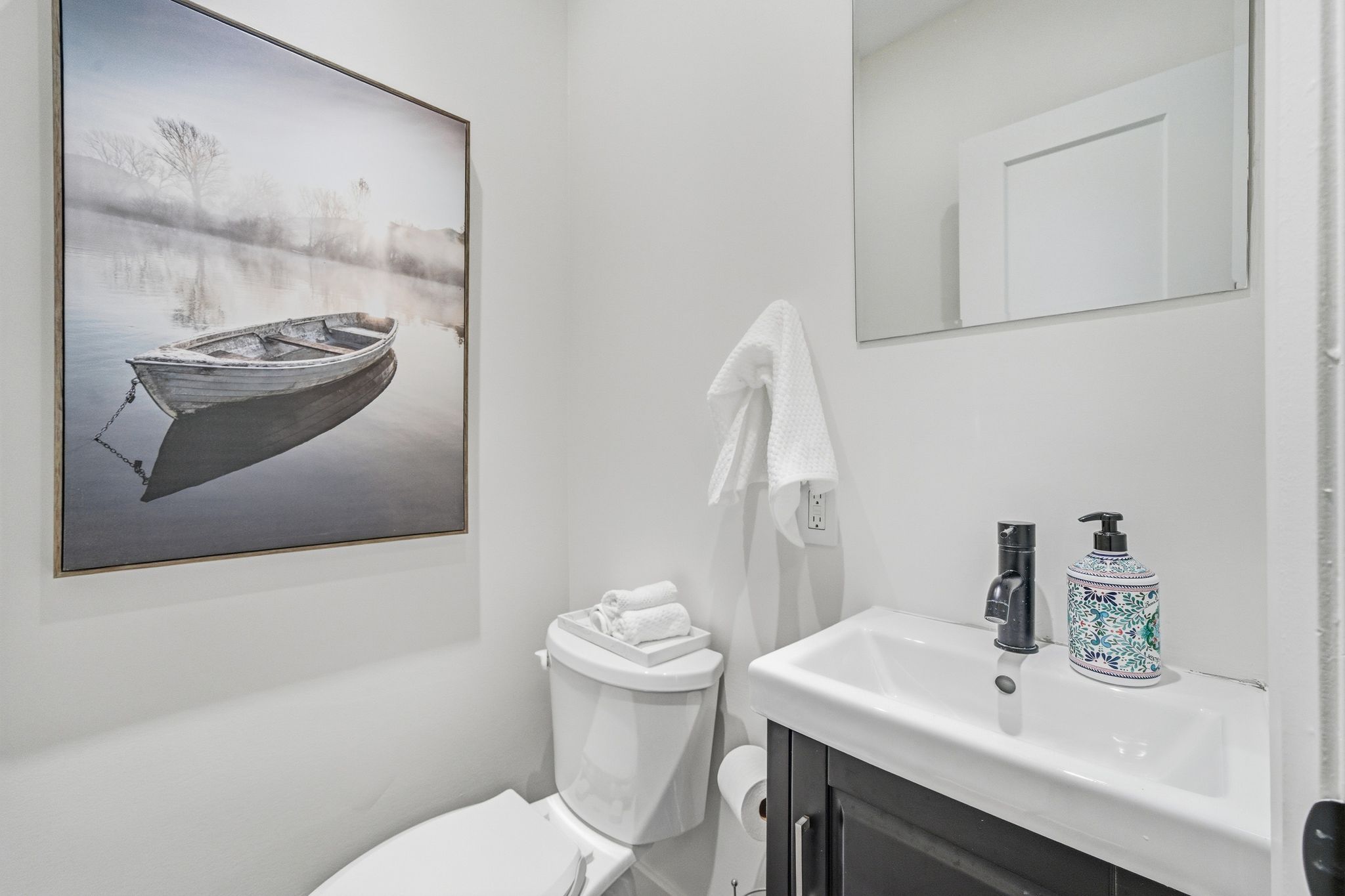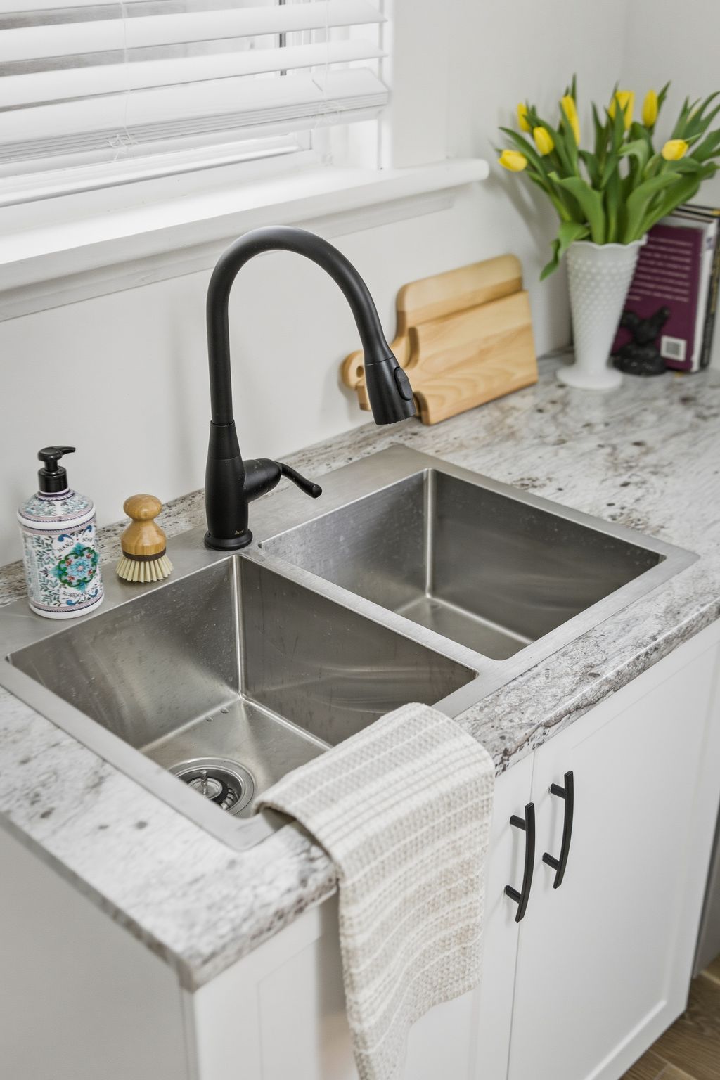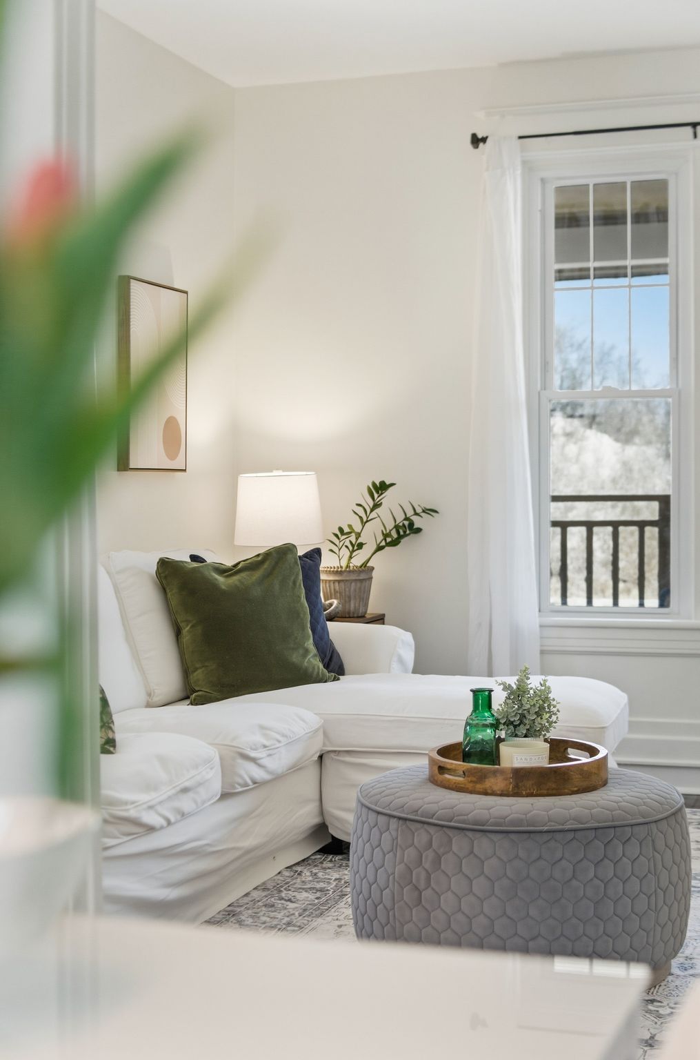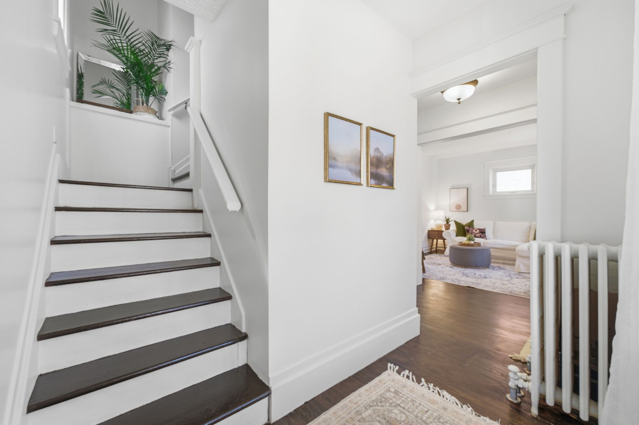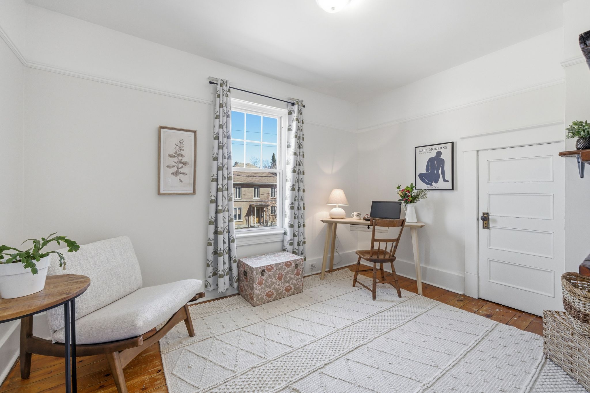• Bright interior with updated finishes and a modern kitchen.
