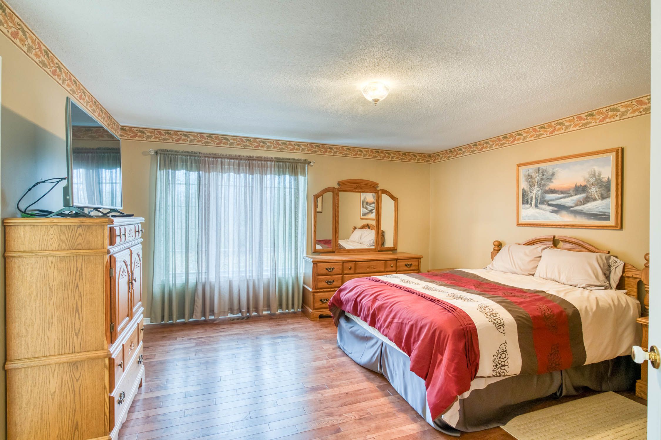 • Lower level includes a family room and extra bedroom.