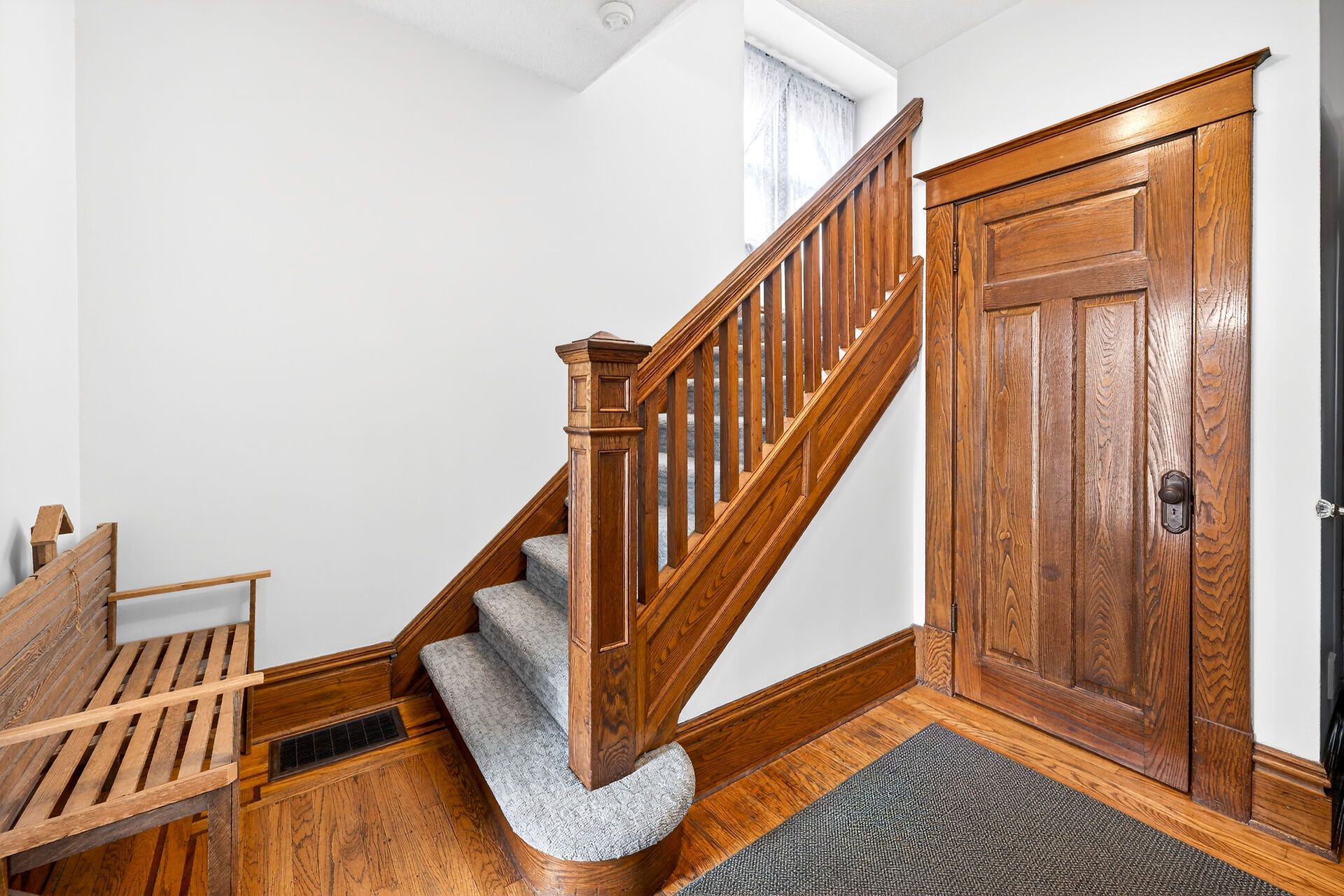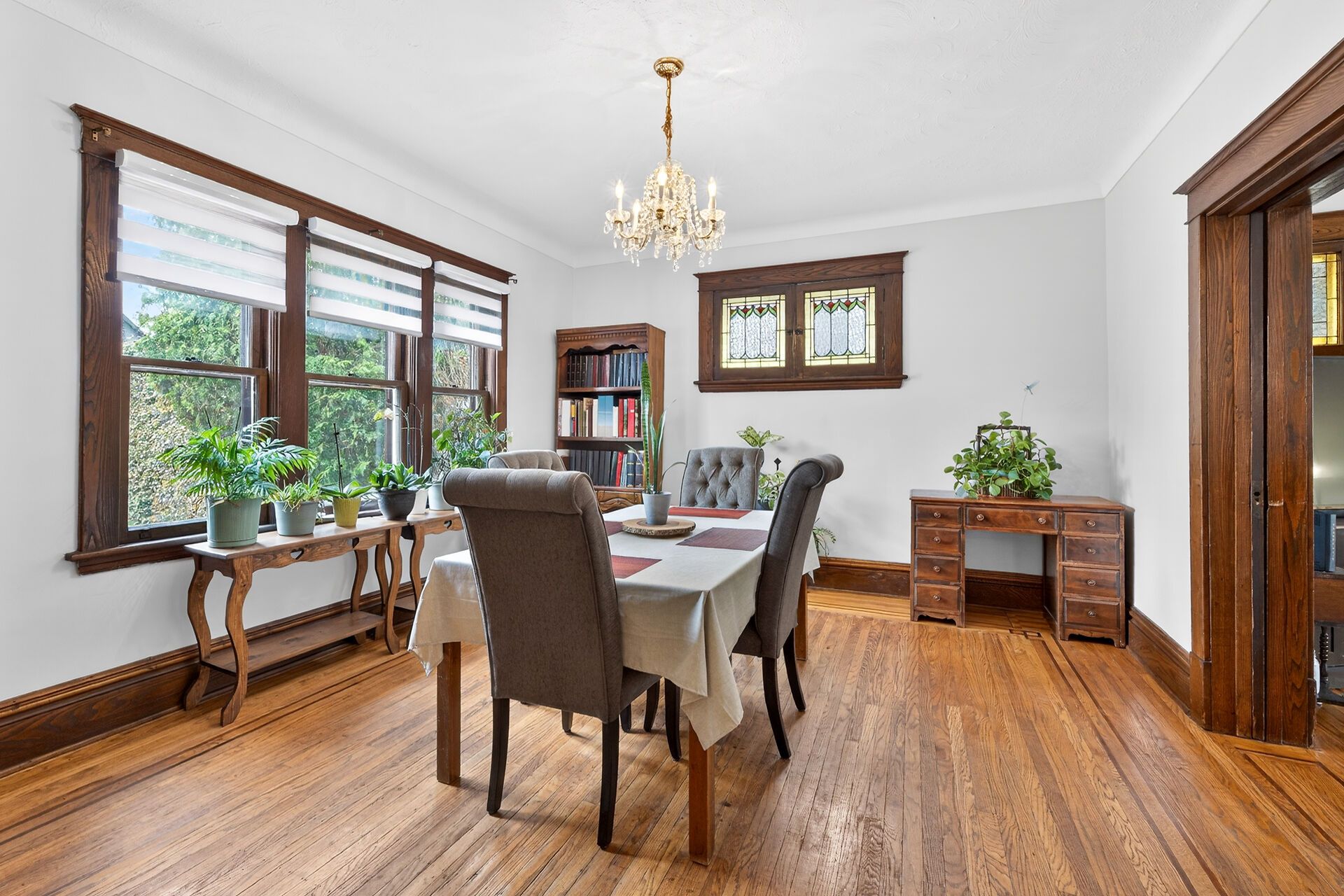 Outstanding home in an attractive neighborhood in south central hamilton close to the escarpment convenient to all amenities and transportation. This home offers full value with all that it has to offer including almost 2000 square feet of above ground living space plus the partially finished basement level features include wonderful original craftsmanship and charm with its wood trim, hardwood floors and even pocket sliding doors! Some of the others to mention are the metal roof, covered front and back porches, stamped concrete driveway which can accommodate 2 to 3 cars plus a detached garage and much more. The home has been freshly painted on the interior, professionally cleaned and prepped for move in ready possession. This beautiful home must be seen to be fully appreciated!