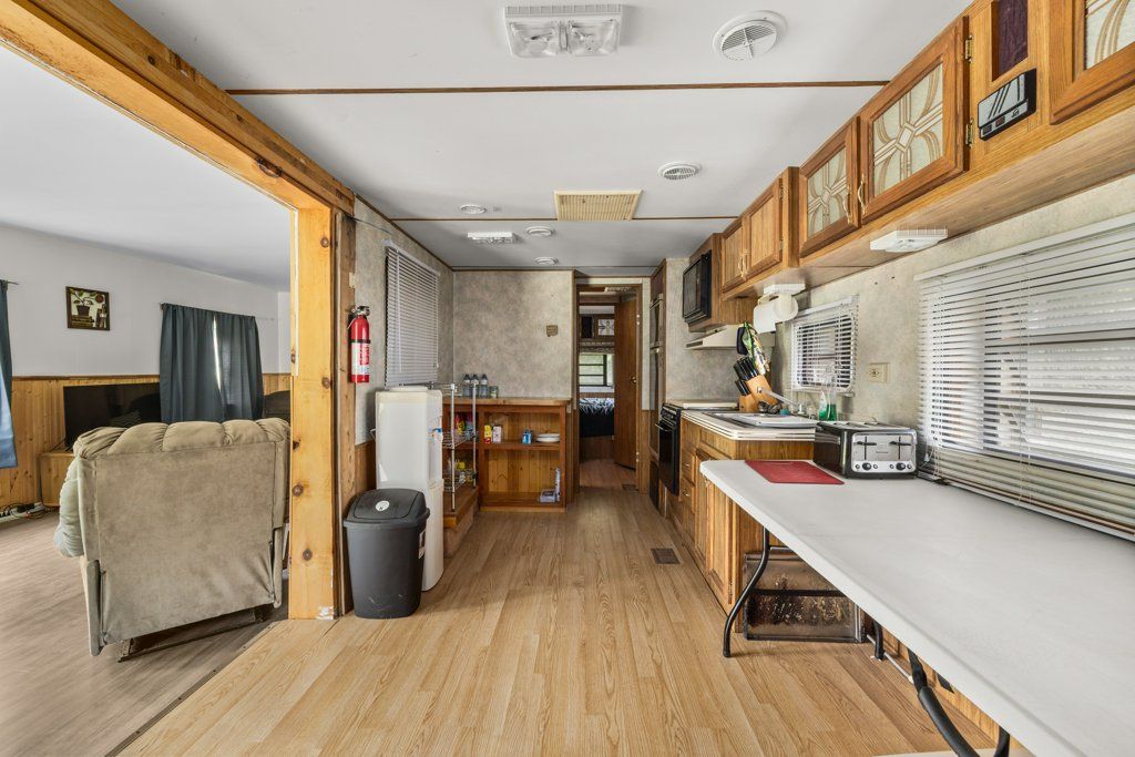 • Well-maintained trailer with 2 bedrooms, kitchen, full bathroom, and living area.