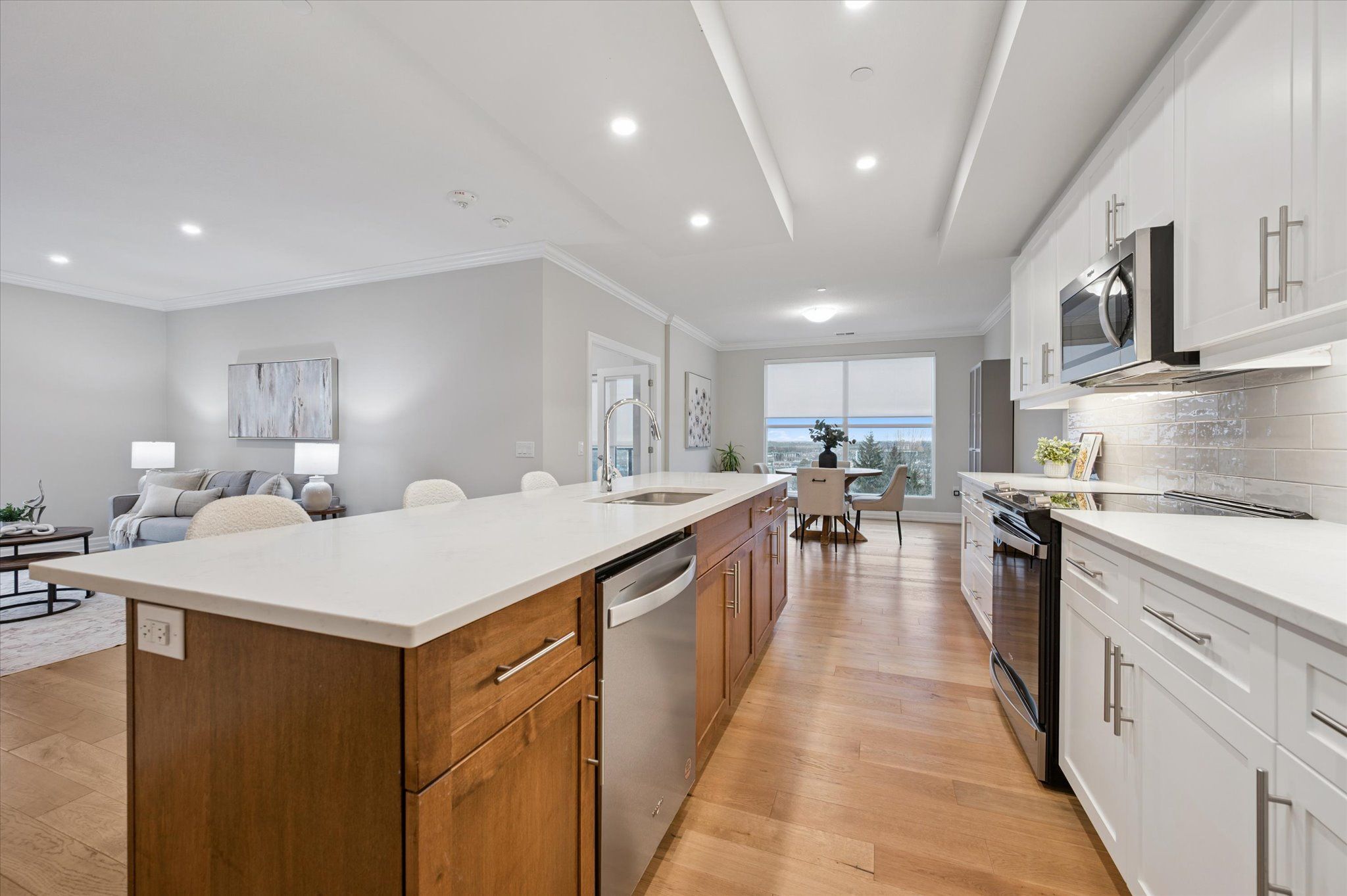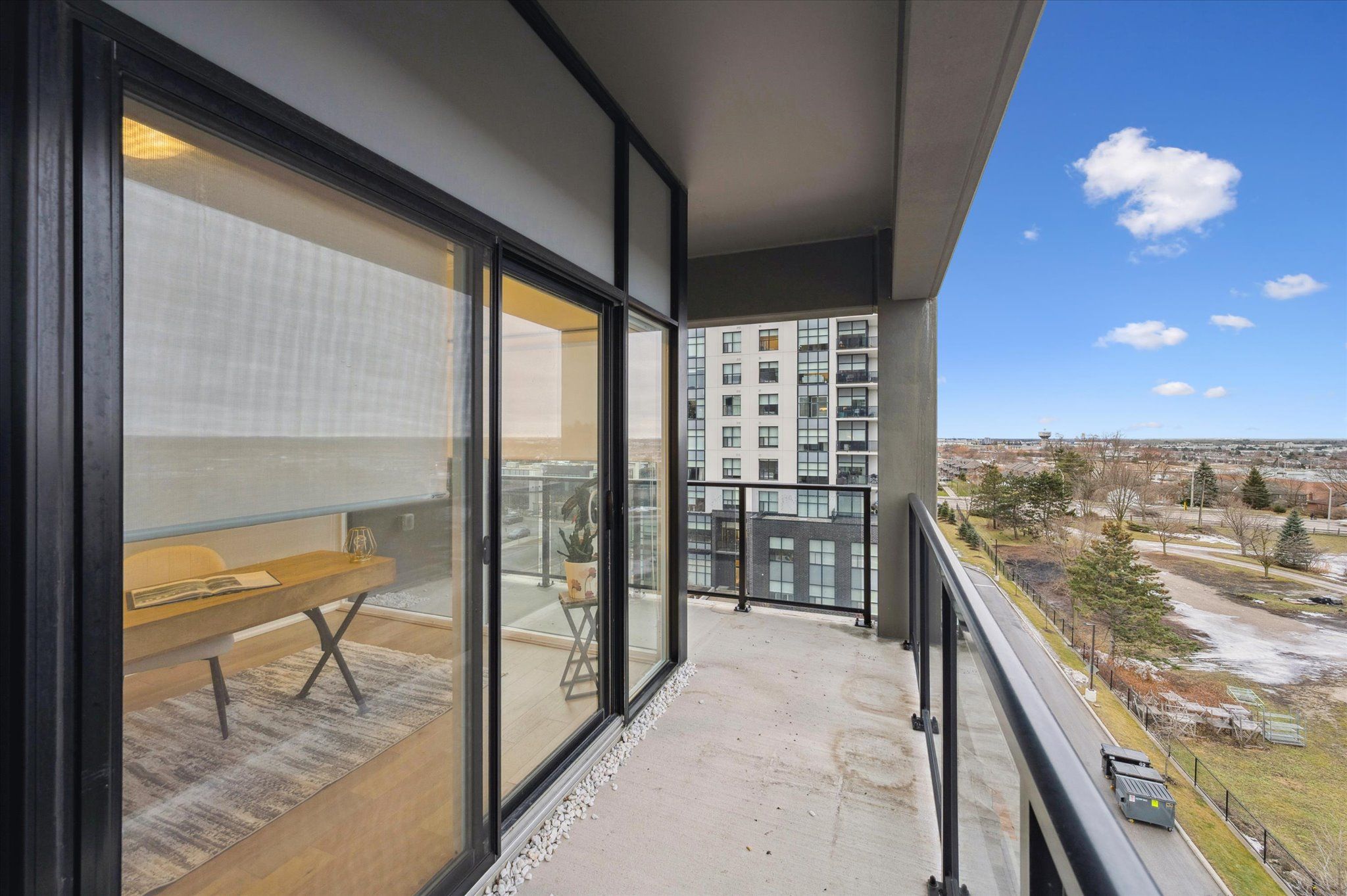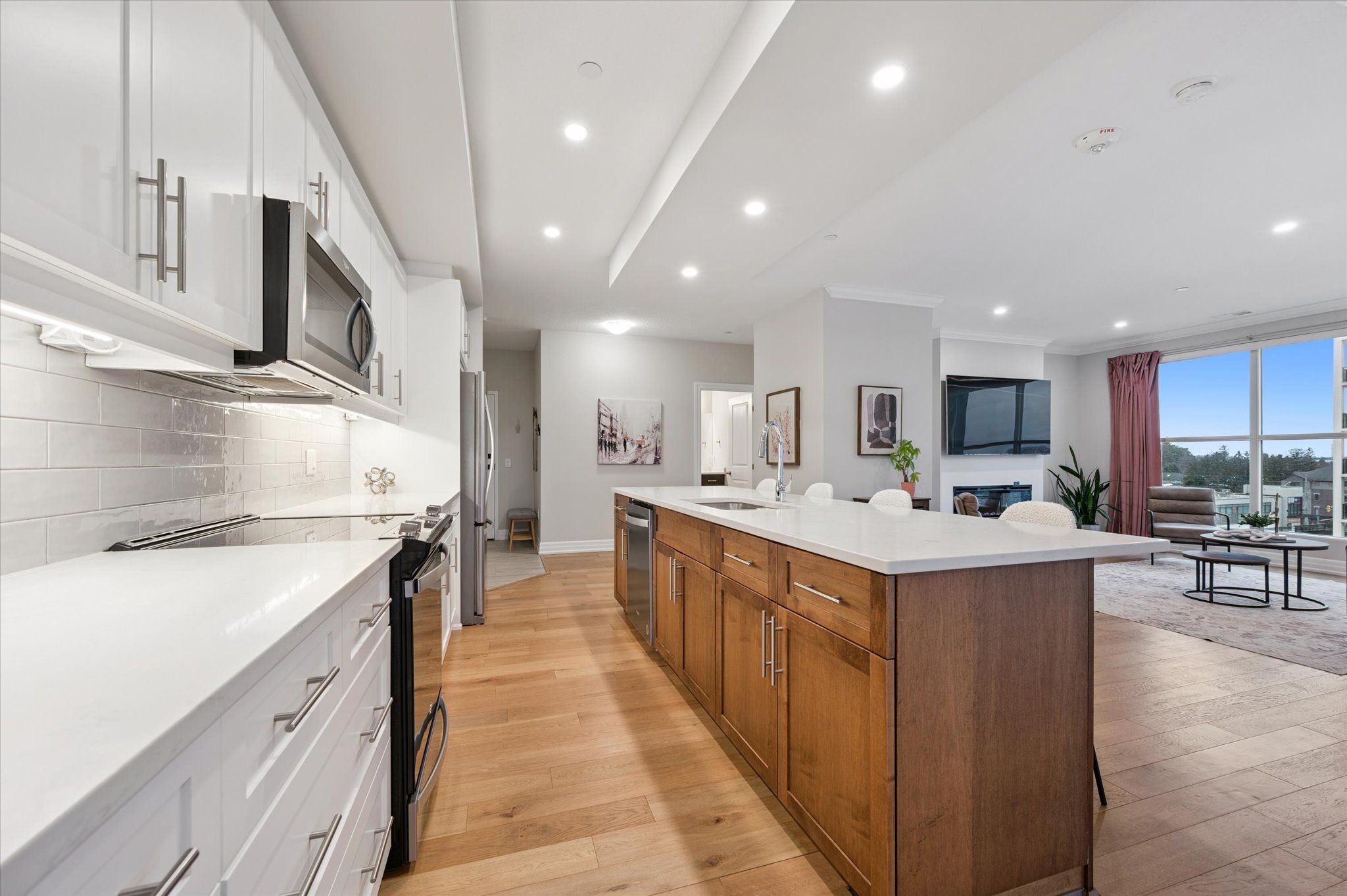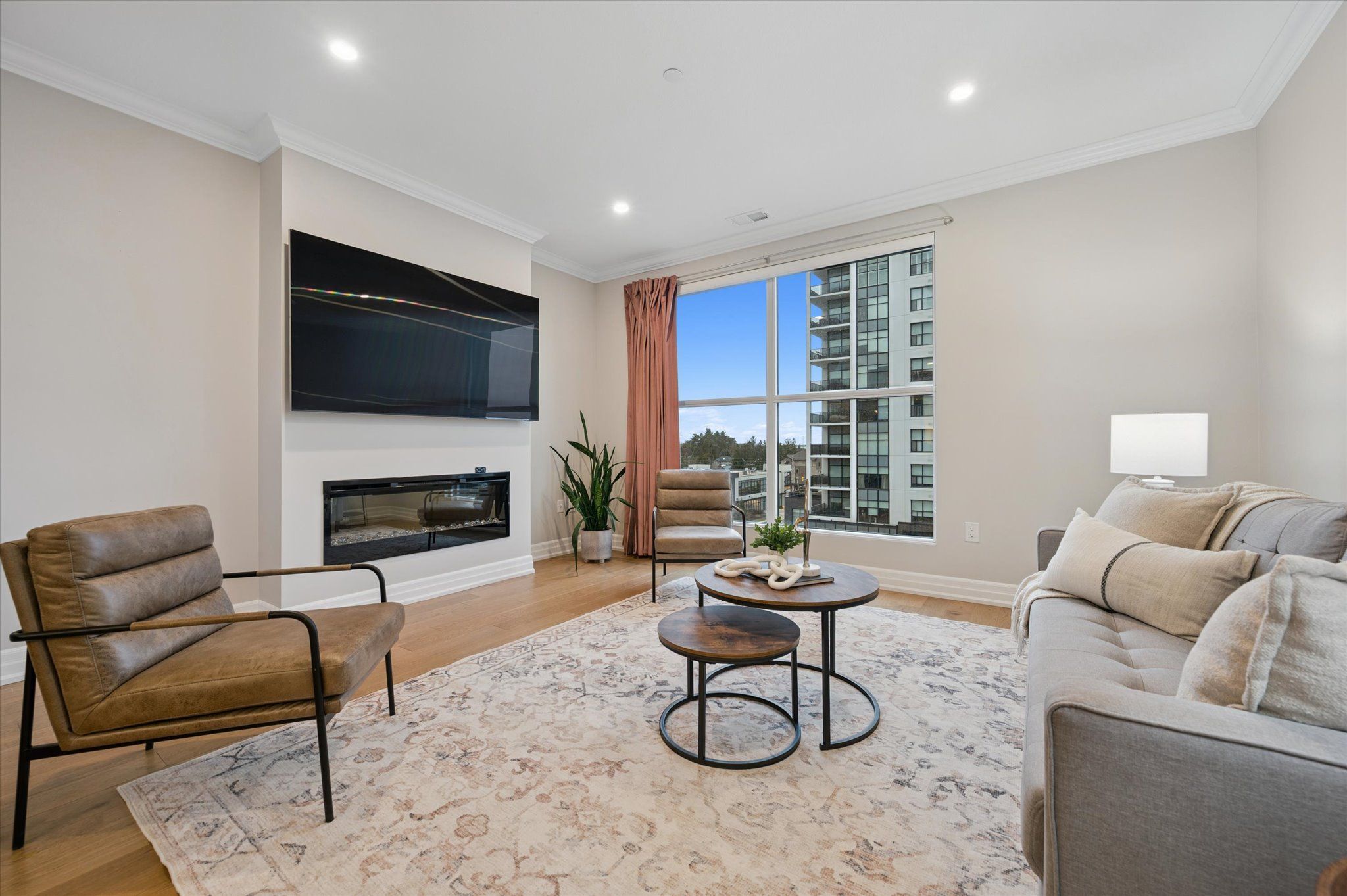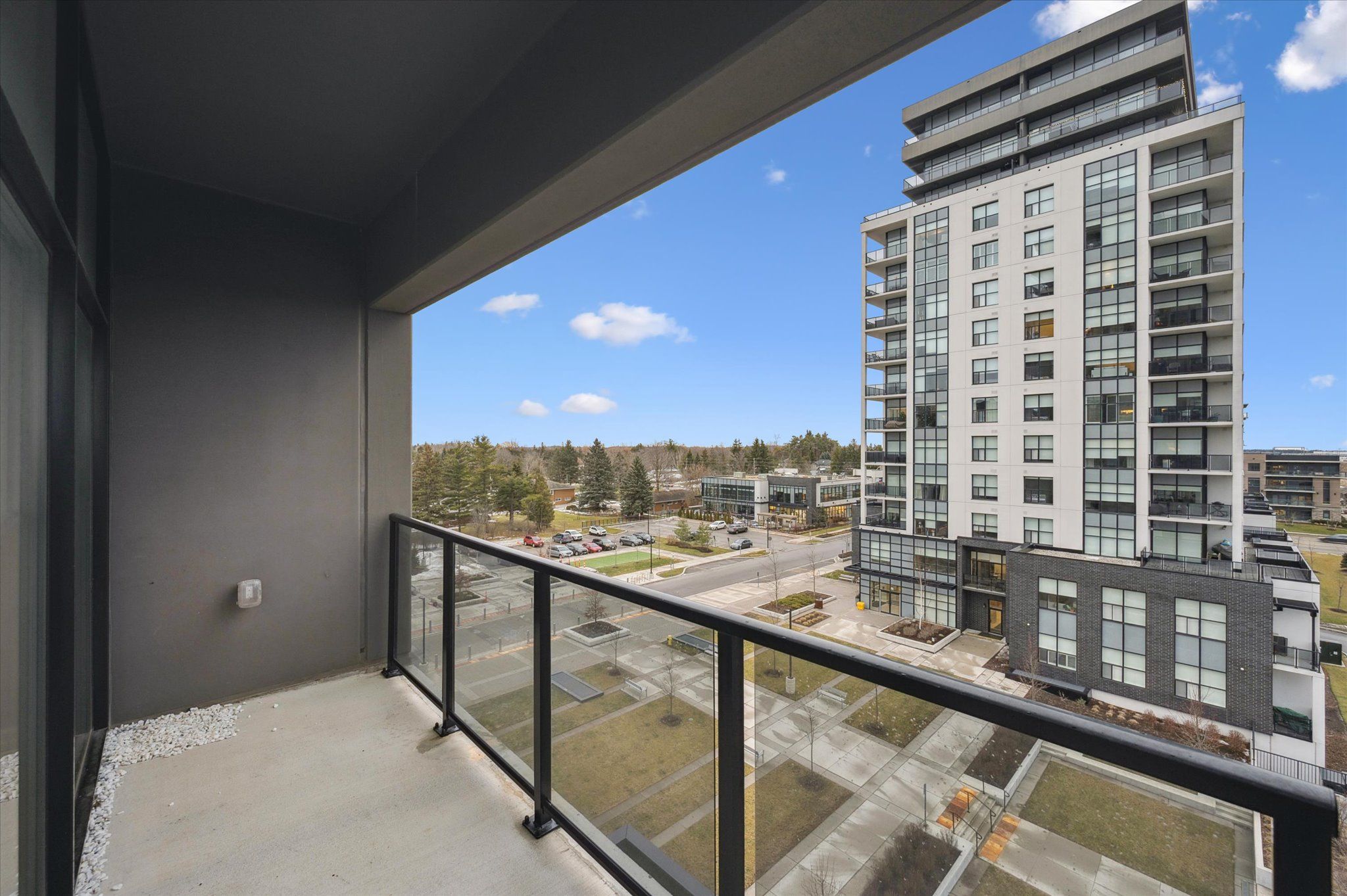 Situated in the prestigious gordon square towers, suite 505 is an exceptional executive 2 bedroom + den corner residence that is a show stopper! Designed for those who value elevated living, this luxurious condominium showcases floor-to-ceiling windows framing breathtaking views from every room, flooding the space with natural light and highlighting the soaring ceilings and rich engineered hardwood . The beautifully appointed kitchen flows effortlessly into the open-concept living area, creating a refined yet comfortable setting ideal for entertaining, working from home, or simply unwinding at the end of the day. The expansive primary suite offers a peaceful retreat with a gorgeous ensuite, while the versatile den provides flexibility as a home office, guest space, or media room. Perfectly suited for professionals, down sizers seeking turnkey luxury, or executive buyers craving low-maintenance living without compromise. Residents of 1800 gordon enjoy an unmatched lifestyle with thoughtfully curated amenities including a fitness centre, golf simulator, and an impressive skylounge with billiards and a wet bar, plus a lovely guest suite, all designed to extend living beyond the suite itself. Set in south guelph's most sought-after, amenity-rich neighbourhood, this remarkable residence offers a rare blend of sophistication, convenience, and community - a truly elevated way of life.