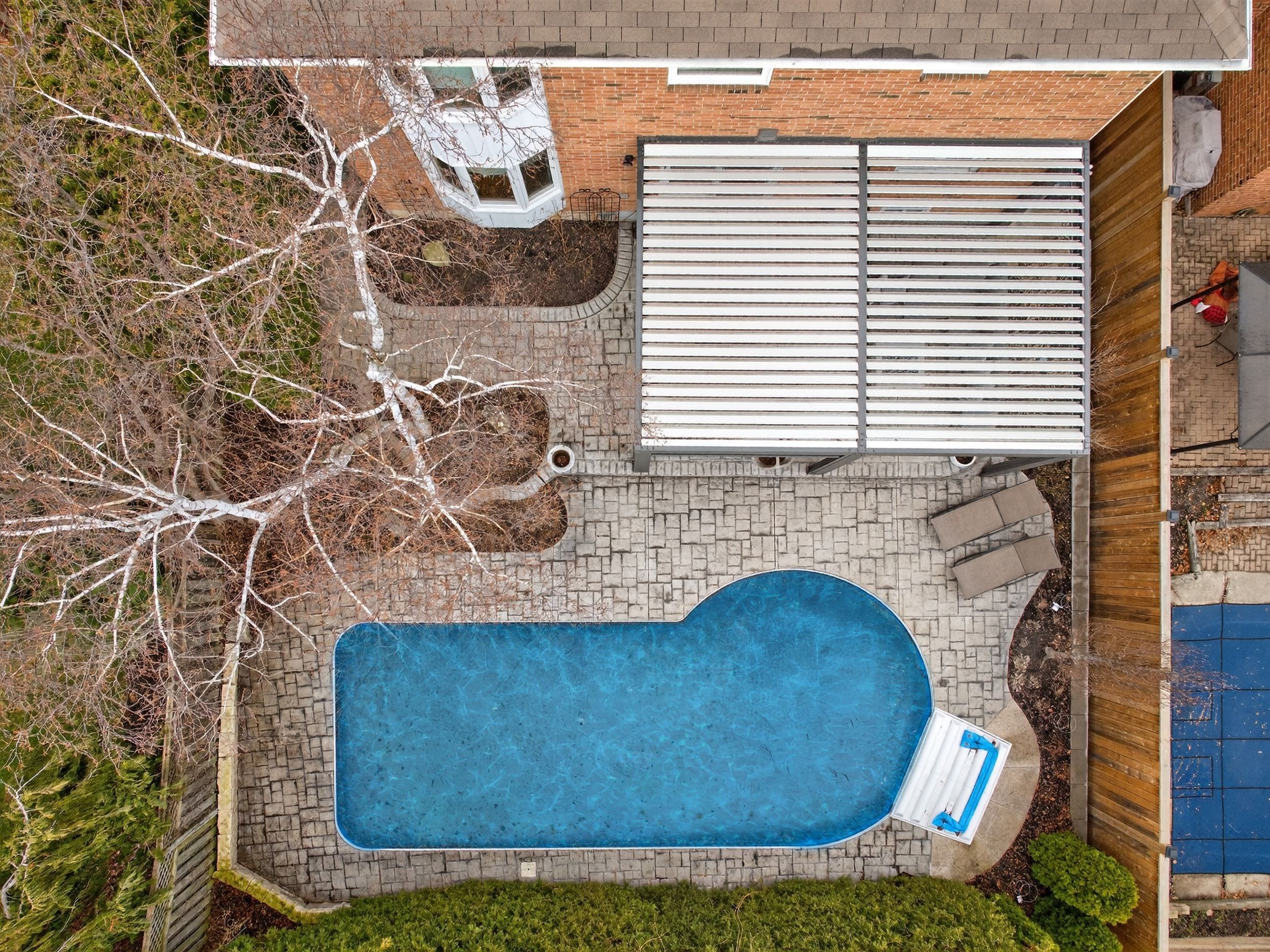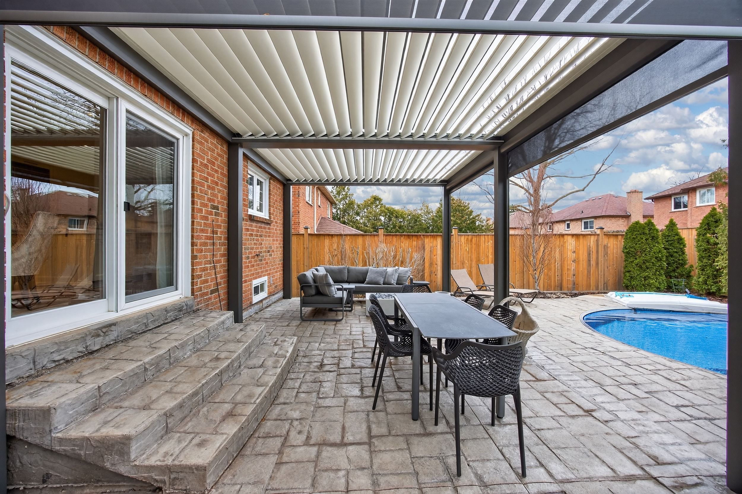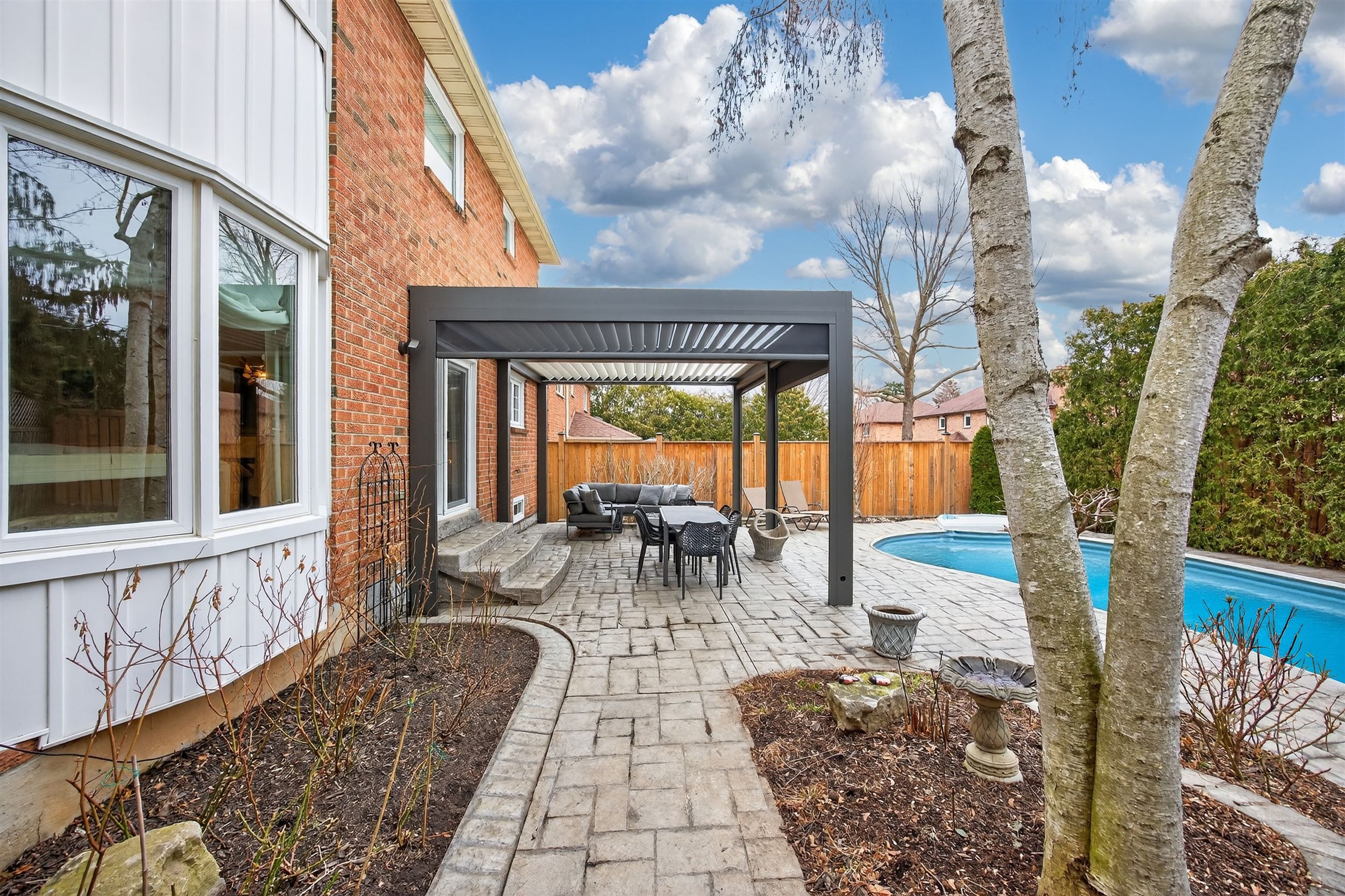 • Private, fenced backyard with a terrace and in-ground pool.