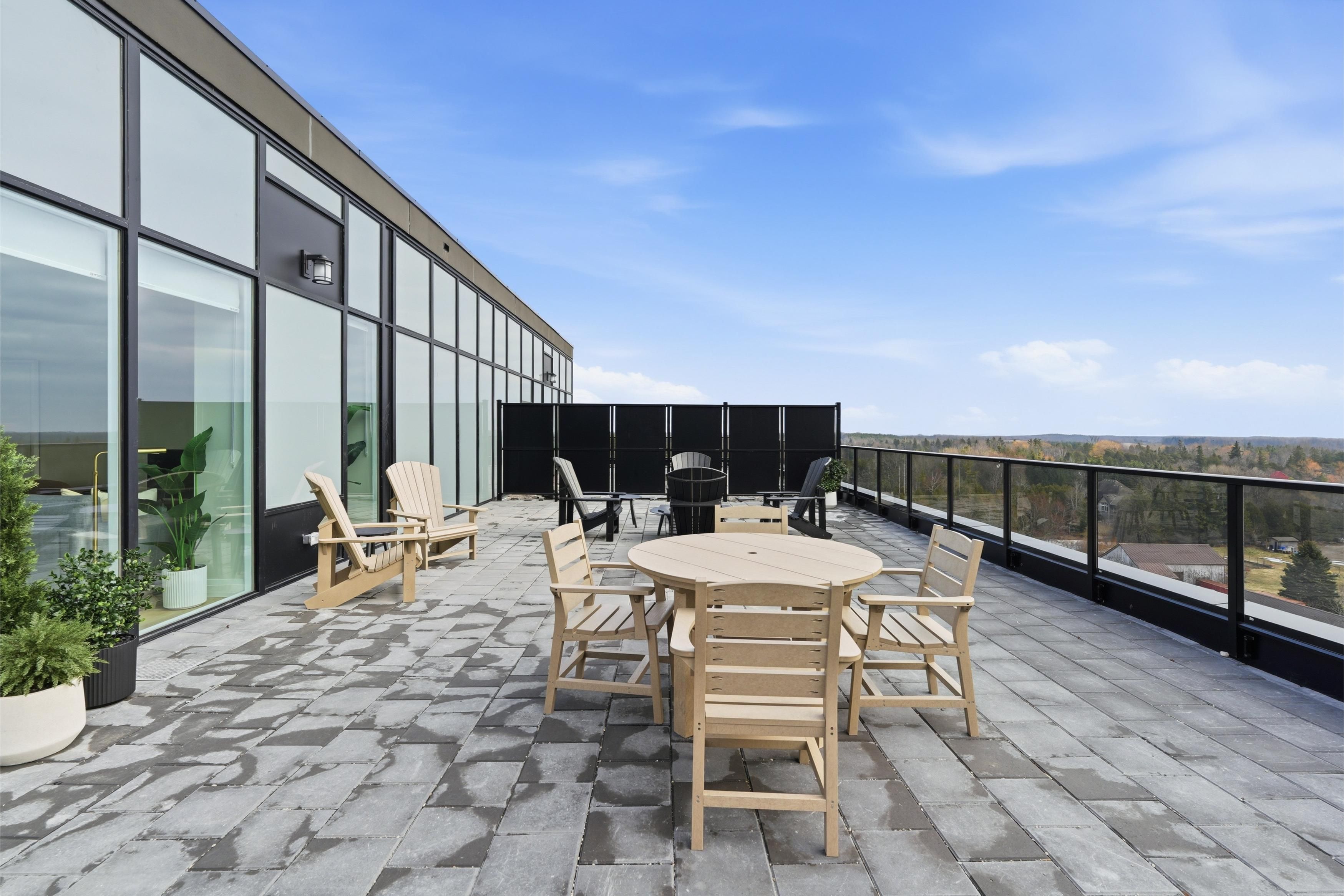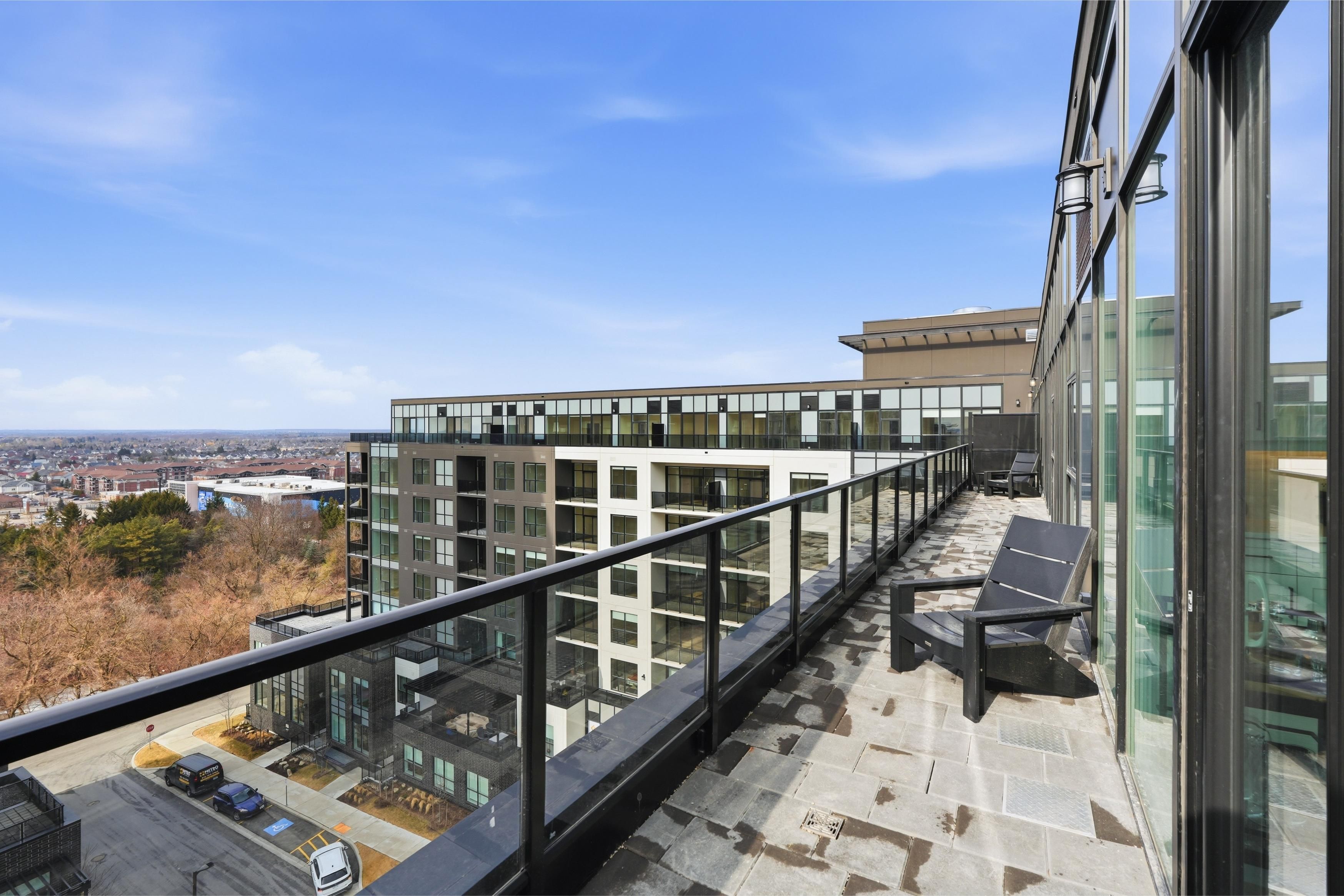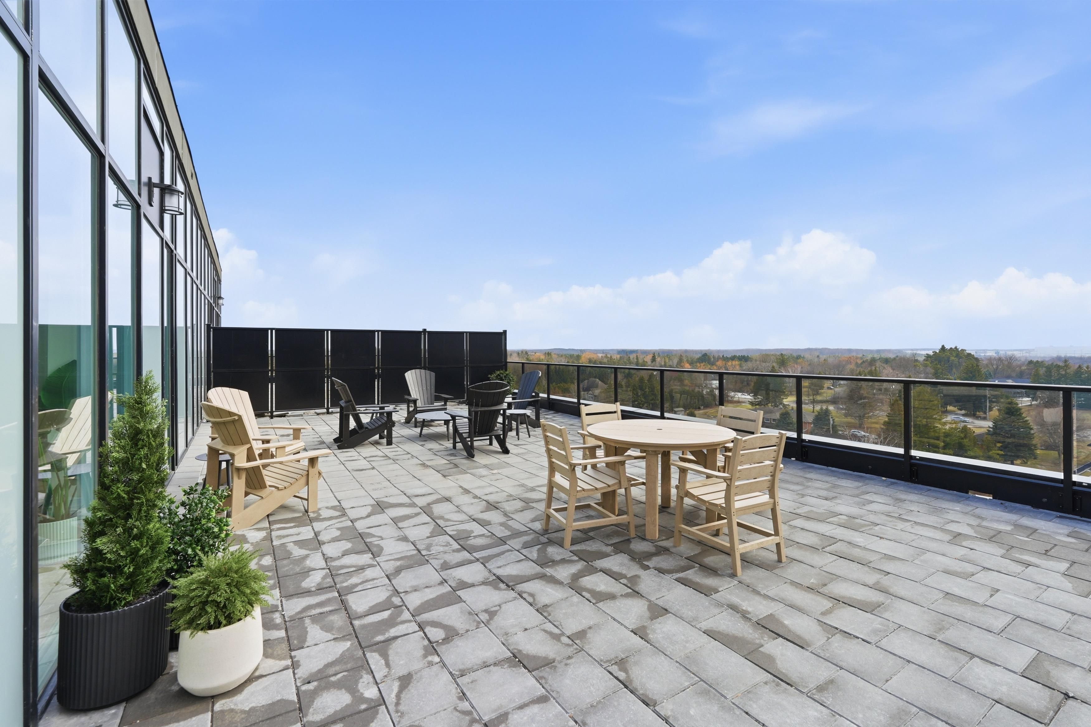 Welcome to gordon square iii. This thoughtfully designed 2-bedroom plus den suite offers spacious, functional living in a modern condominium setting. The open-concept design features a bright living and dining area that flows seamlessly to the expansive private terrace, creating an ideal space for both everyday living and entertaining. Offering approximately 1,155 sq. Ft. Of outdoor space, the terrace is a rare extension of the home, perfect for enjoying the warmer months with plenty of room for dining, lounging, and hosting, all while taking in the northwest-facing views. The kitchen is well-appointed with ample storage and pantry, opening directly into the main living area for a connected, practical layout. The primary bedroom offers a comfortable retreat with generous proportions, while the second bedroom and versatile den provide flexibility for guests, a home office, or additional living space. This suite features a barrier-free layout designed to support ease of movement and everyday comfort. Residents of gordon square iii enjoy access to a full range of amenities, including a party room and meeting room ideal for hosting larger gatherings or events, a fully equipped gym for your daily routine, guest suites for visiting friends and family, and a golf simulator so you can practice your swing year-round. Located in guelph's desirable south end, you are just steps from restaurants, coffee shops, grocery stores, and everyday amenities. An excellent opportunity for those seeking low-maintenance living in a vibrant and growing community.