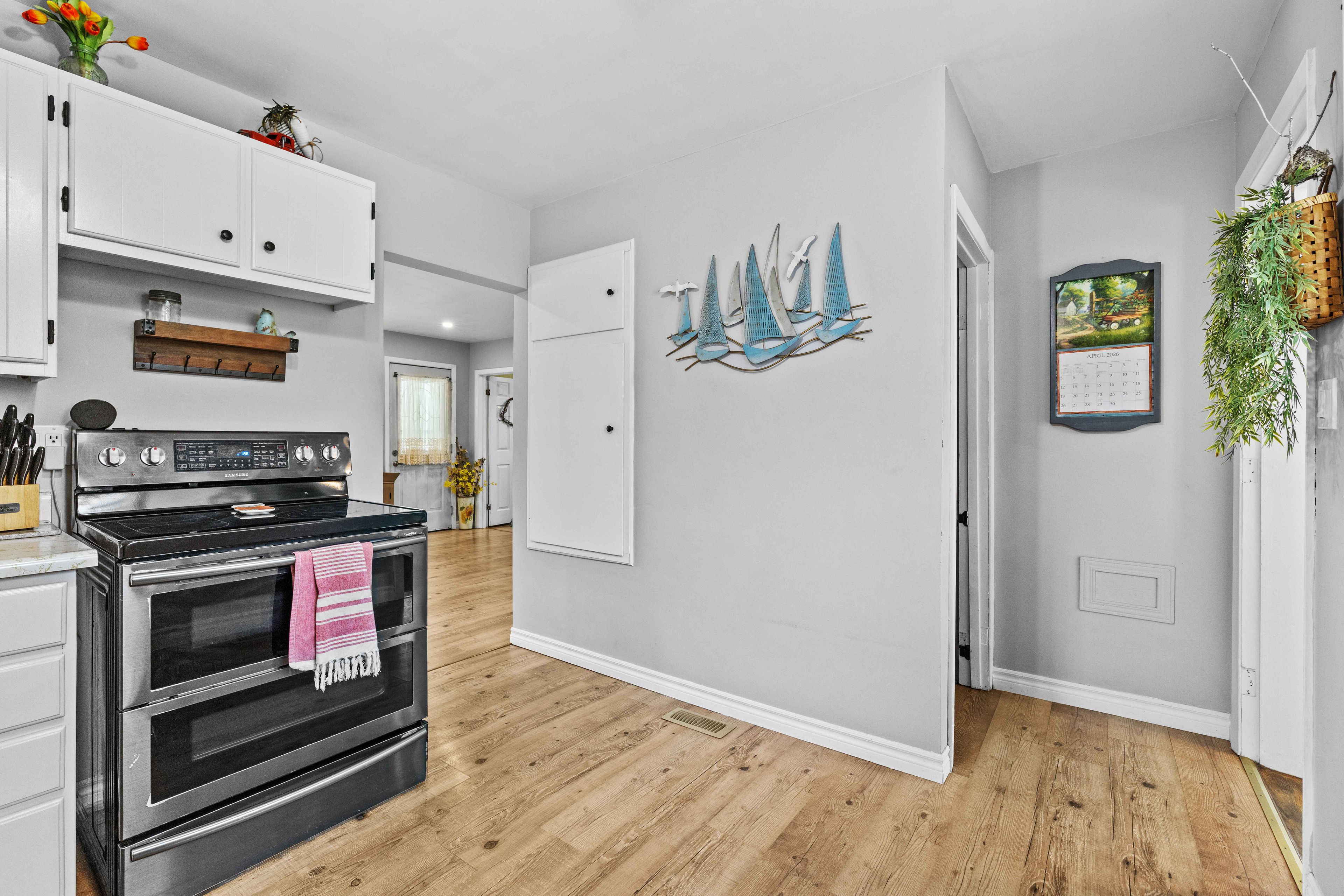 Welcome to this charming and move-in-ready 2-bedroom, 1-bath bungalow-an ideal opportunity for first-time buyers looking to step into homeownership with confidence. This well-maintained home offers easy, low-maintenance living with updated décor throughout, giving it a fresh, modern feel without the need for immediate upgrades. The bright and functional layout makes everyday living comfortable and efficient, while the four-season sunroom/ dining room provides the perfect bonus space to relax and unwind, all while enjoying peaceful views of surrounding farm fields. The full unfinished basement offers plenty of extra storage and laundry room. Outside, the property is designed for both convenience and enjoyment. A detached single garage and double-wide driveway provide ample parking, while the recently landscaped yard features a private patio and raised garden beds-perfect for outdoor gatherings or starting your own garden. If you're looking for an affordable, turnkey home in a quiet country setting with room to personalize over time, this property checks all the boxes.