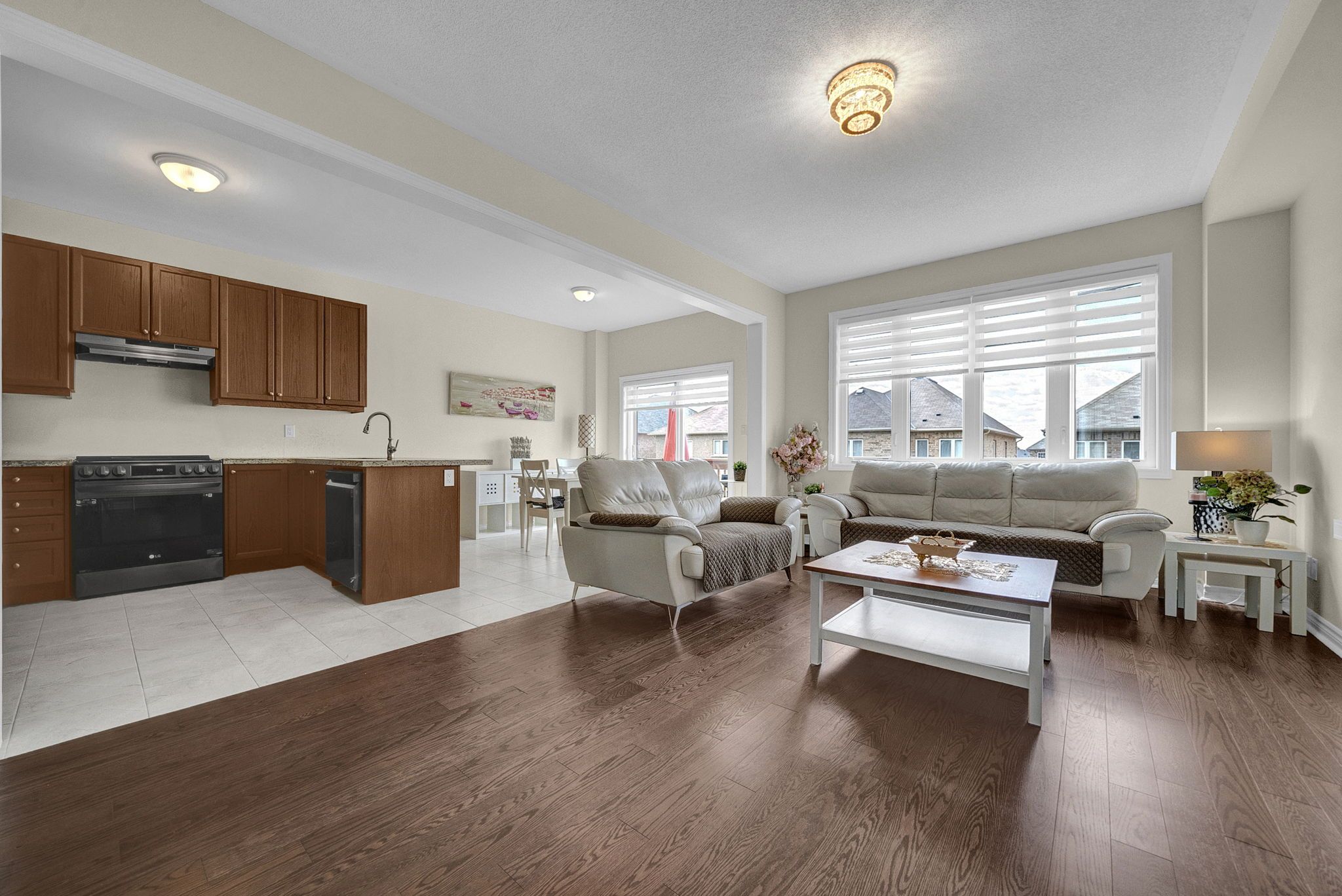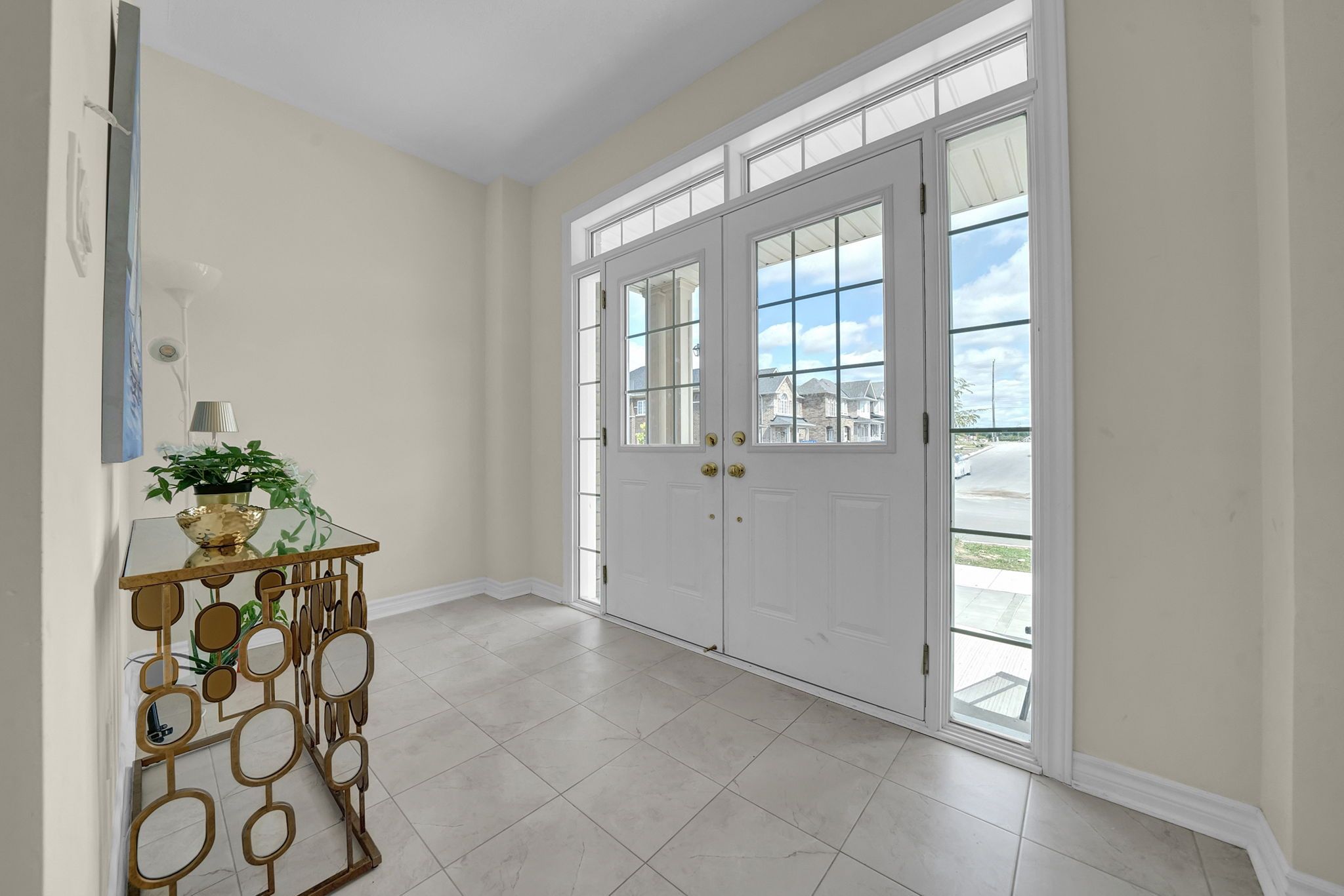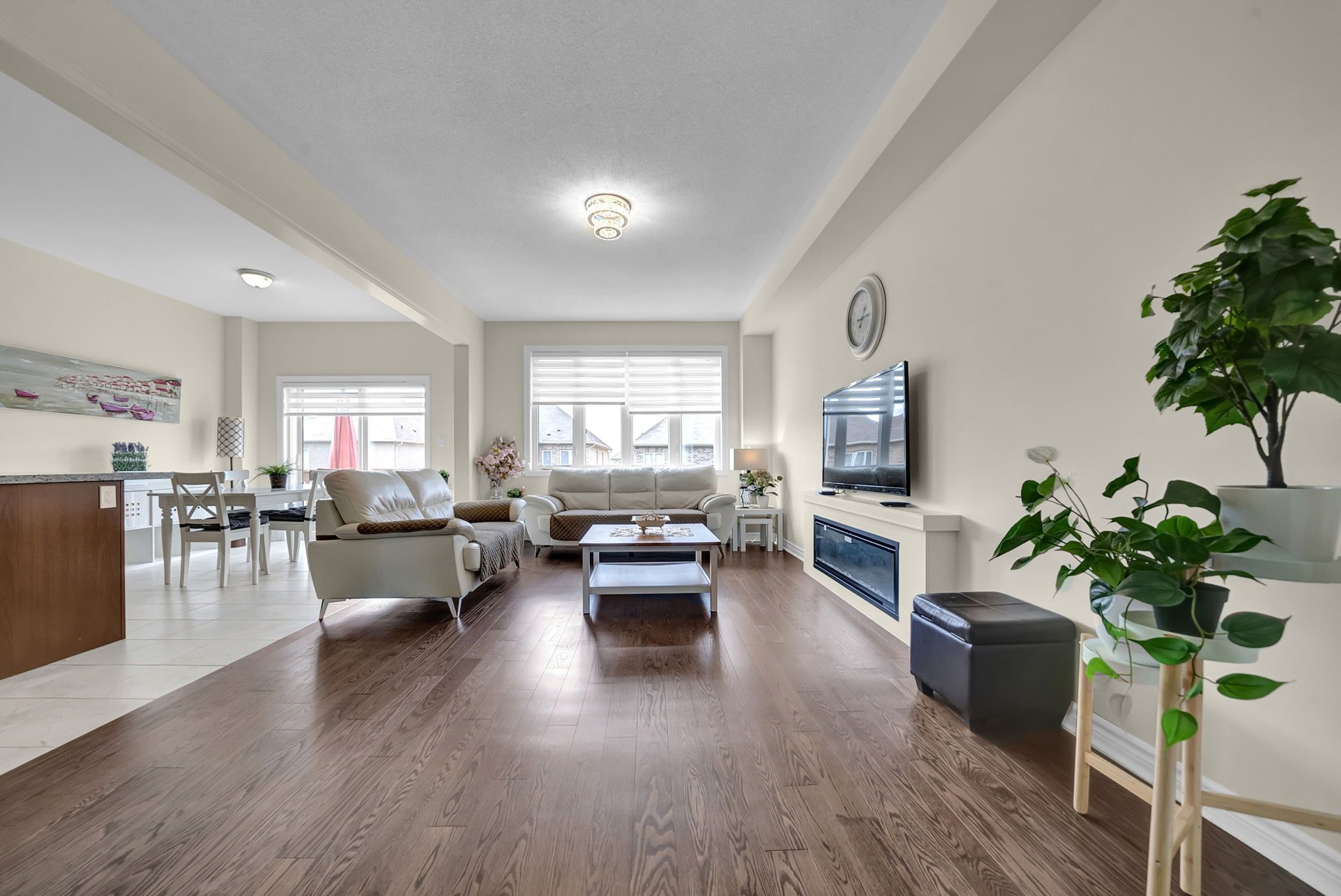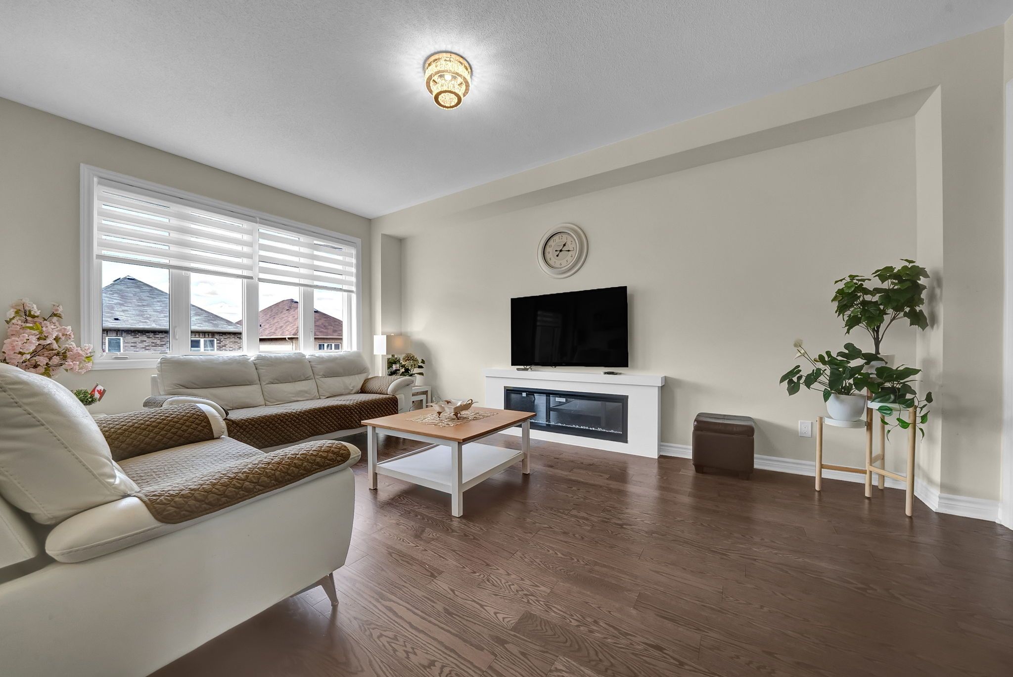Welcome to 1884 fosterbrook street in oshawa's sought after fields of harmony. This impressive two storey hillside elevation b was purchased as one of the largest floor plans and offers over 2,300 square feet of upgraded living with a mainly brick exterior for timeless curb appeal. The fully finished walkout basement was completed with permits and adds two bedrooms, a full bath, a wet bar, and enlarged egress windows that are perfect for extended family or guests. It also includes a dedicated second laundry room with hookups. The main floor features an open concept design anchored by preverco 5/8" red oak hardwood komodo through the great room and family and dining areas, complemented by a custom 50" linear electric fireplace with a 75" mantel shelf. The kitchen showcases moonlight granite counters with an under-mount sink and an upgraded faucet, siena oak cabinetry in a warm medium brown finish, a waterline to the fridge, a stainless hood fan, and a valance lighting rough in with junction. A builder added interior garage access door provides everyday convenience. Upstairs, every bathroom is finished with upgraded moonlight granite counters over white crystal vanities, while the oak staircase is stained to match with upgraded pickets. Builder installed hard wired security wiring is active, the front yard interlock enhances curb appeal, and additional touches include a tv outlet above the fireplace and an extra light box in the family and dining room. Original owners, pet free, never rented, and meticulously cared for, the home is approximately two years new with the balance of the tarion new home warranty and a central vacuum rough in. Ideally located minutes to highway 401 and highway 407, schools, parks, shopping, and places of worship, with university and college about six minutes away, this home blends size, style, and function with a premium walkout lower level in one of oshawa's most desirable new neighbourhoods.