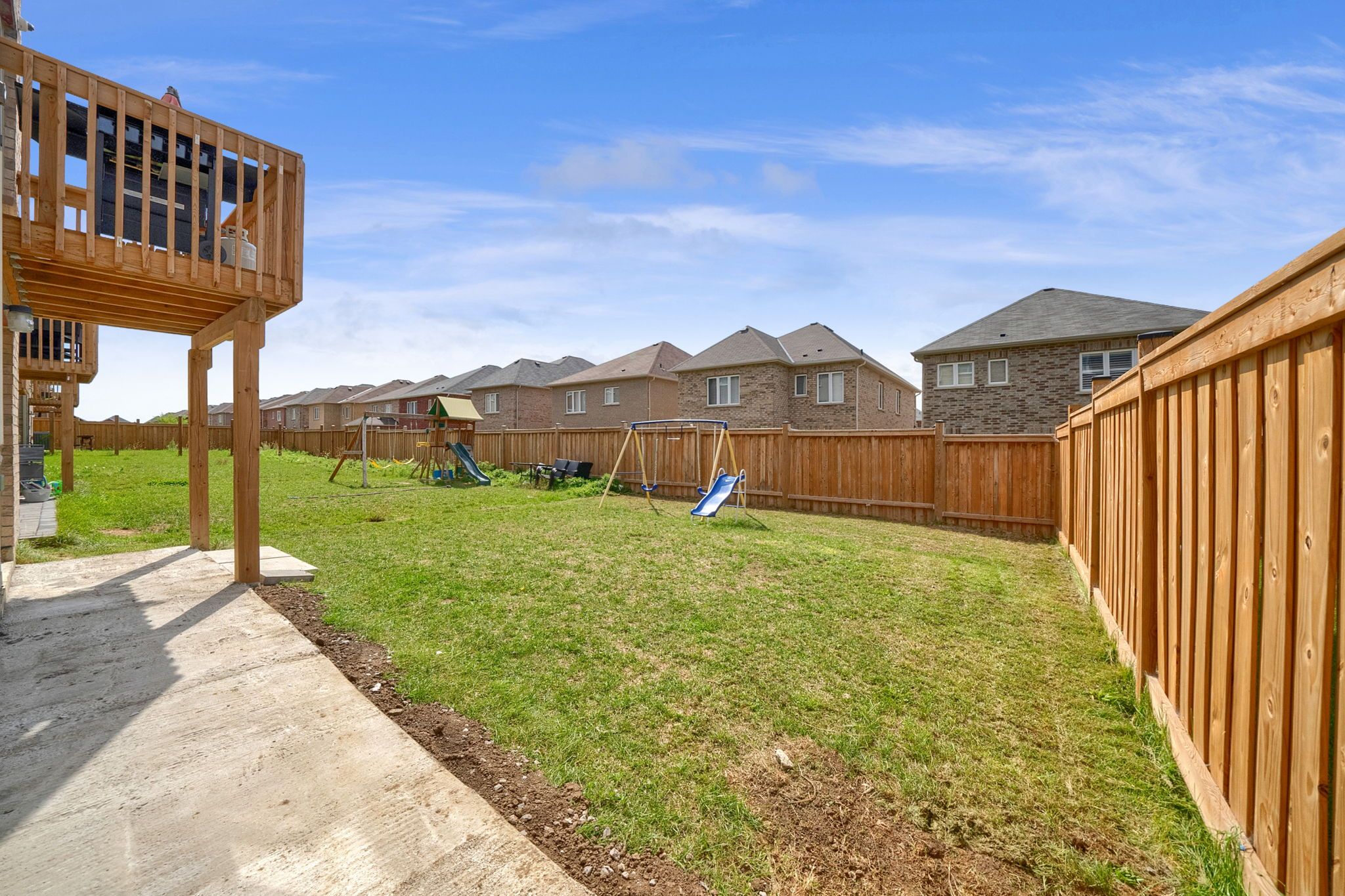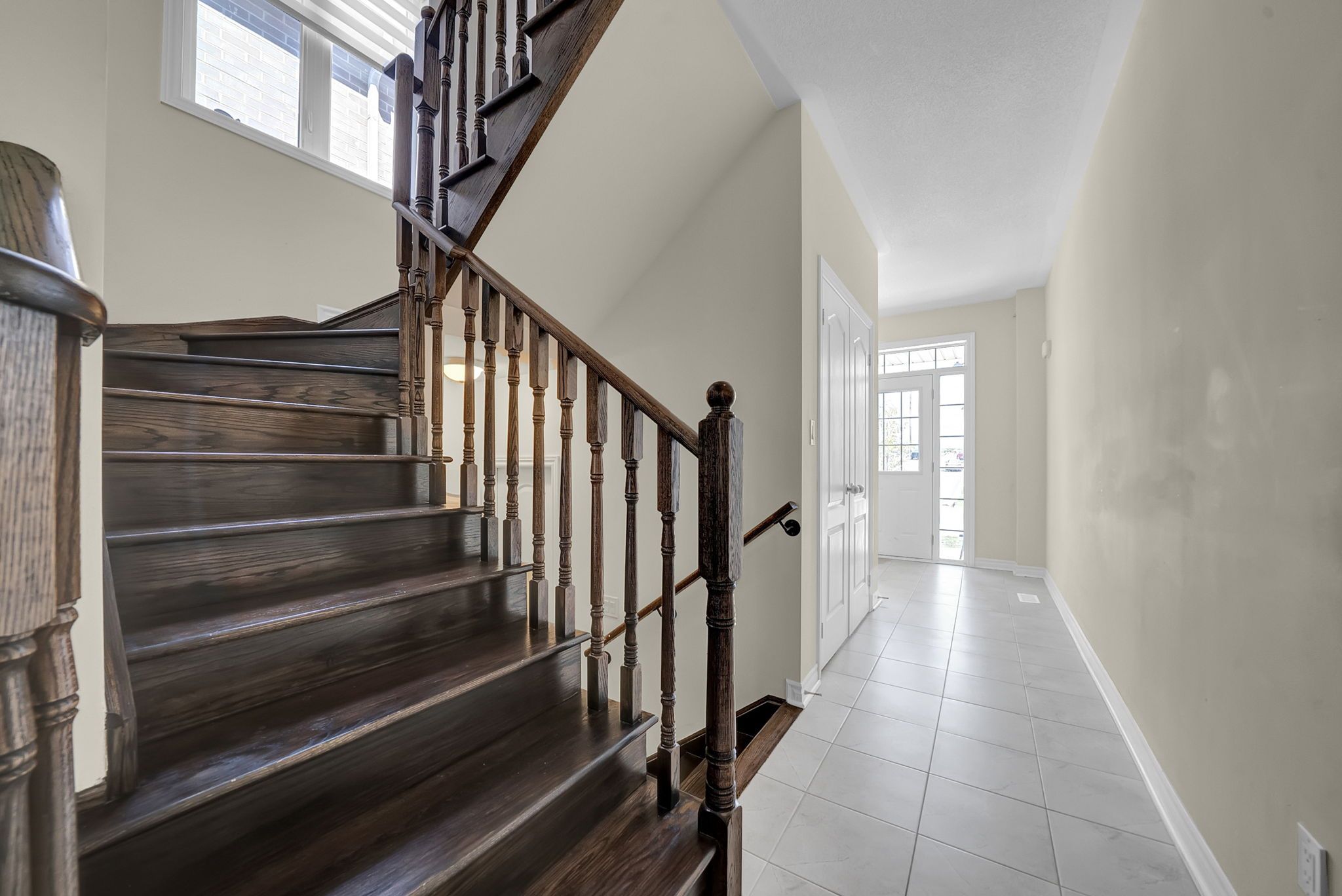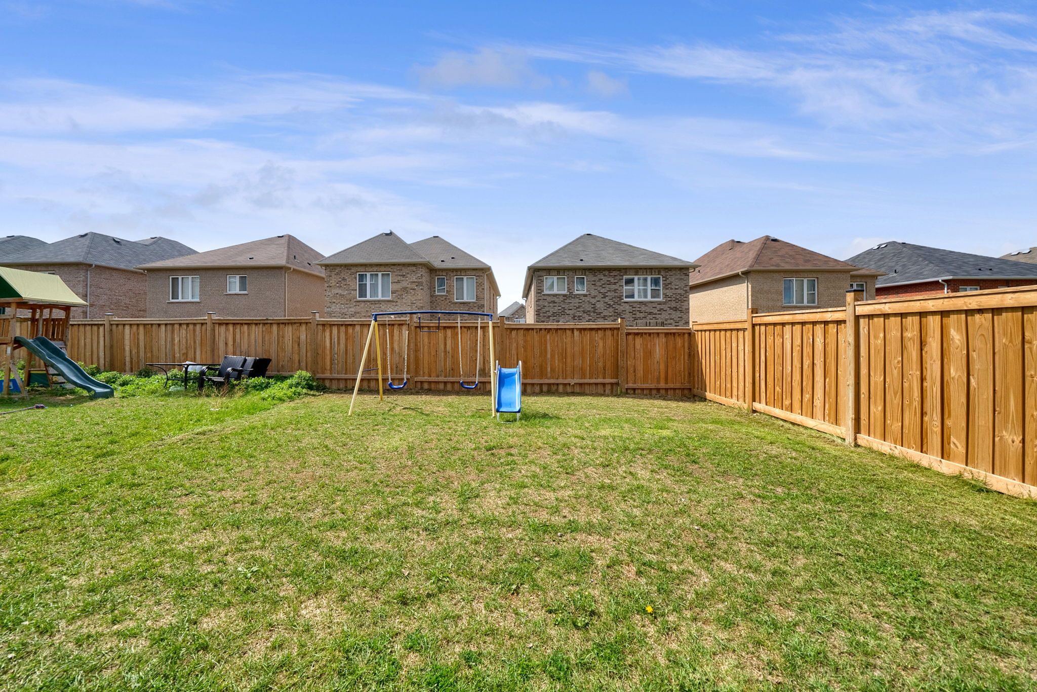 Welcome to 1884 fosterbrook street in oshawa's sought after fields of harmony. This impressive two storey hillside elevation b was purchased as one of the largest floor plans and offers over 2,300 square feet of upgraded living with a mainly brick exterior for timeless curb appeal. The fully finished walkout basement was completed with permits and adds two bedrooms, a full bath, a wet bar, and enlarged egress windows that are perfect for extended family or guests. It also includes a dedicated second laundry room with hookups. The main floor features an open concept design anchored by preverco 5/8" red oak hardwood komodo through the great room and family and dining areas, complemented by a custom 50" linear electric fireplace with a 75" mantel shelf. The kitchen showcases moonlight granite counters with an under-mount sink and an upgraded faucet, siena oak cabinetry in a warm medium brown finish, a waterline to the fridge, a stainless hood fan, and a valance lighting rough in with junction. A builder added interior garage access door provides everyday convenience. Upstairs, every bathroom is finished with upgraded moonlight granite counters over white crystal vanities, while the oak staircase is stained to match with upgraded pickets. Builder installed hard wired security wiring is active, the front yard interlock enhances curb appeal, and additional touches include a tv outlet above the fireplace and an extra light box in the family and dining room. Original owners, pet free, never rented, and meticulously cared for, the home is approximately two years new with the balance of the tarion new home warranty and a central vacuum rough in. Ideally located minutes to highway 401 and highway 407, schools, parks, shopping, and places of worship, with university and college about six minutes away, this home blends size, style, and function with a premium walkout lower level in one of oshawa's most desirable new neighbourhoods.