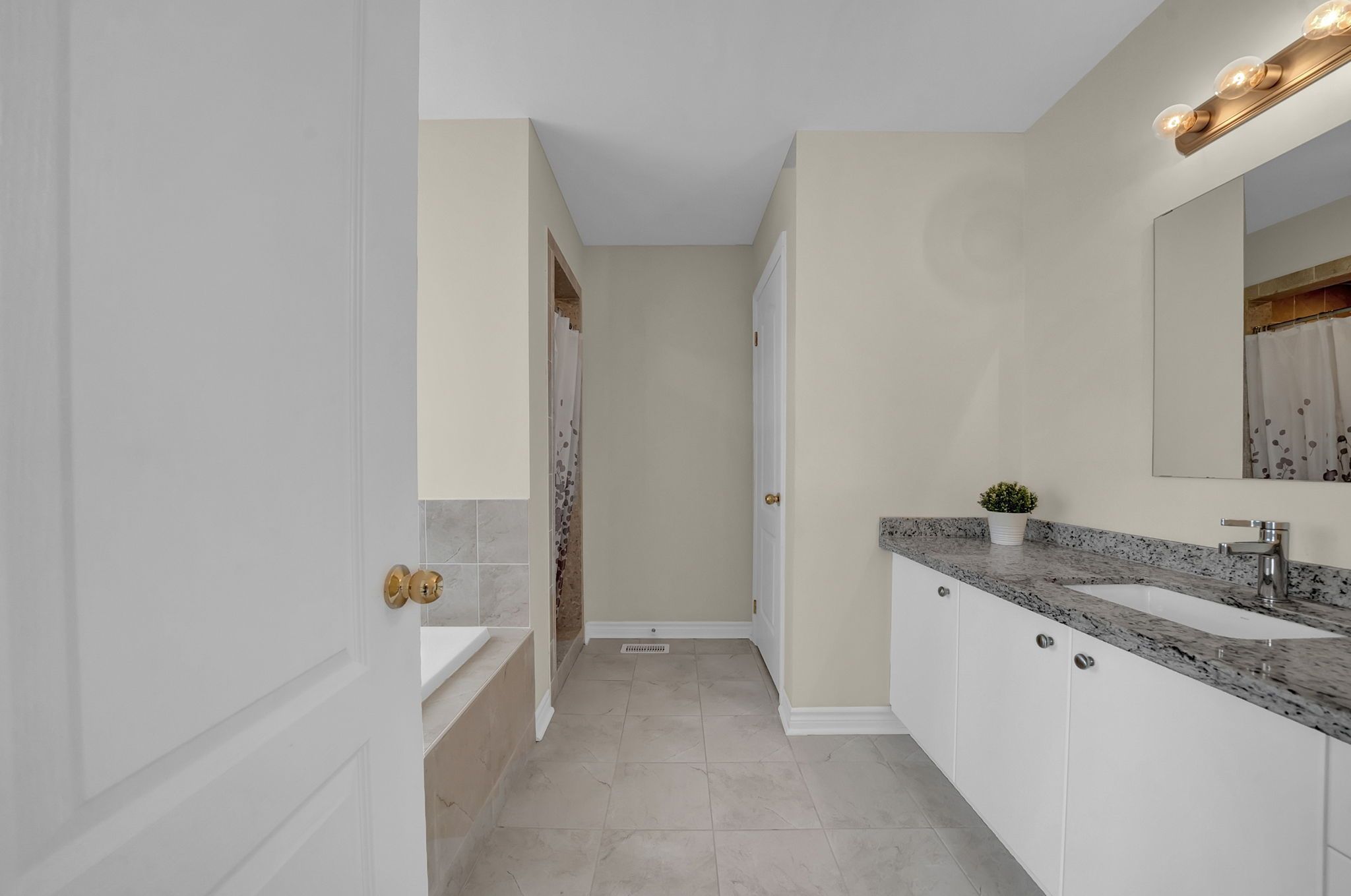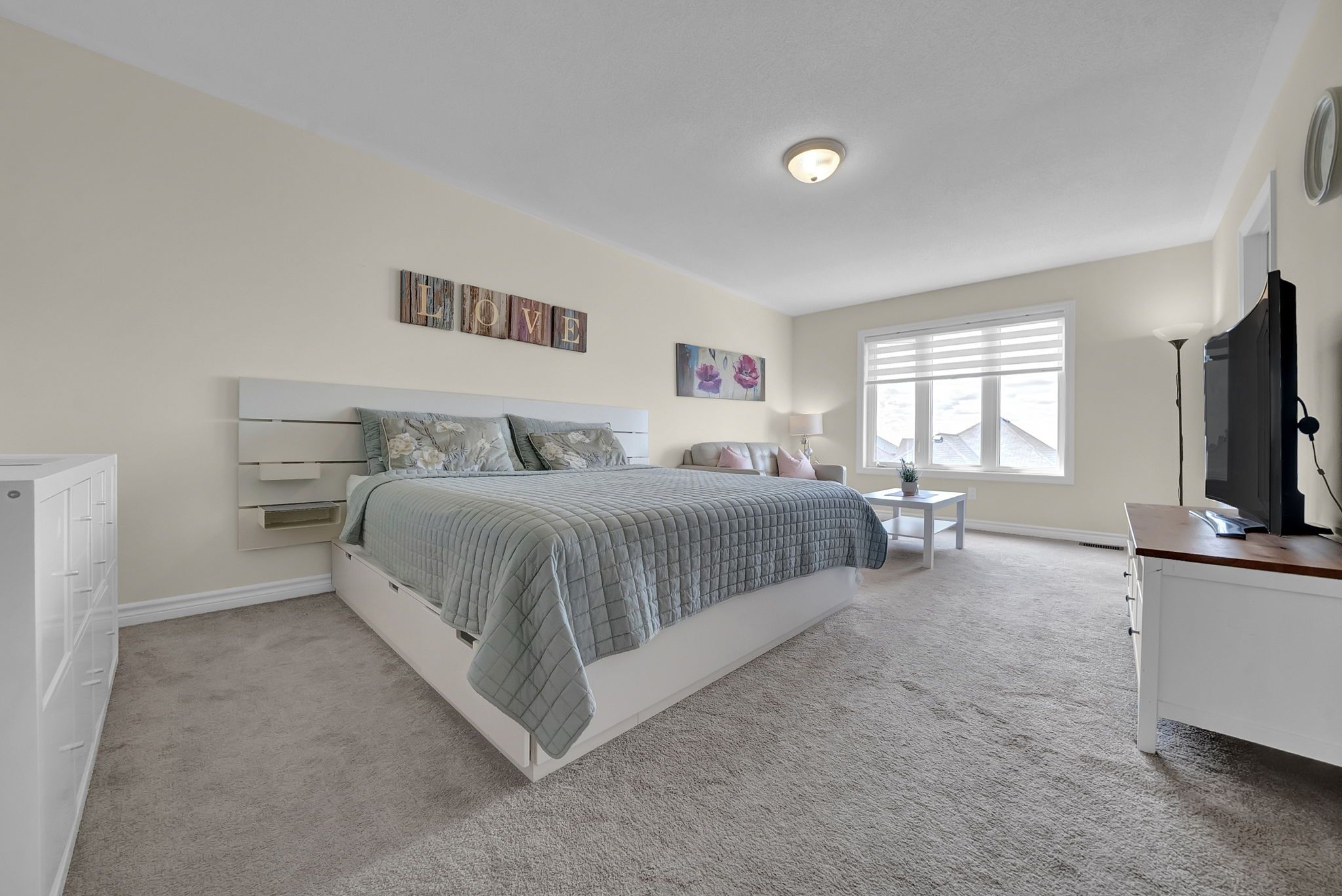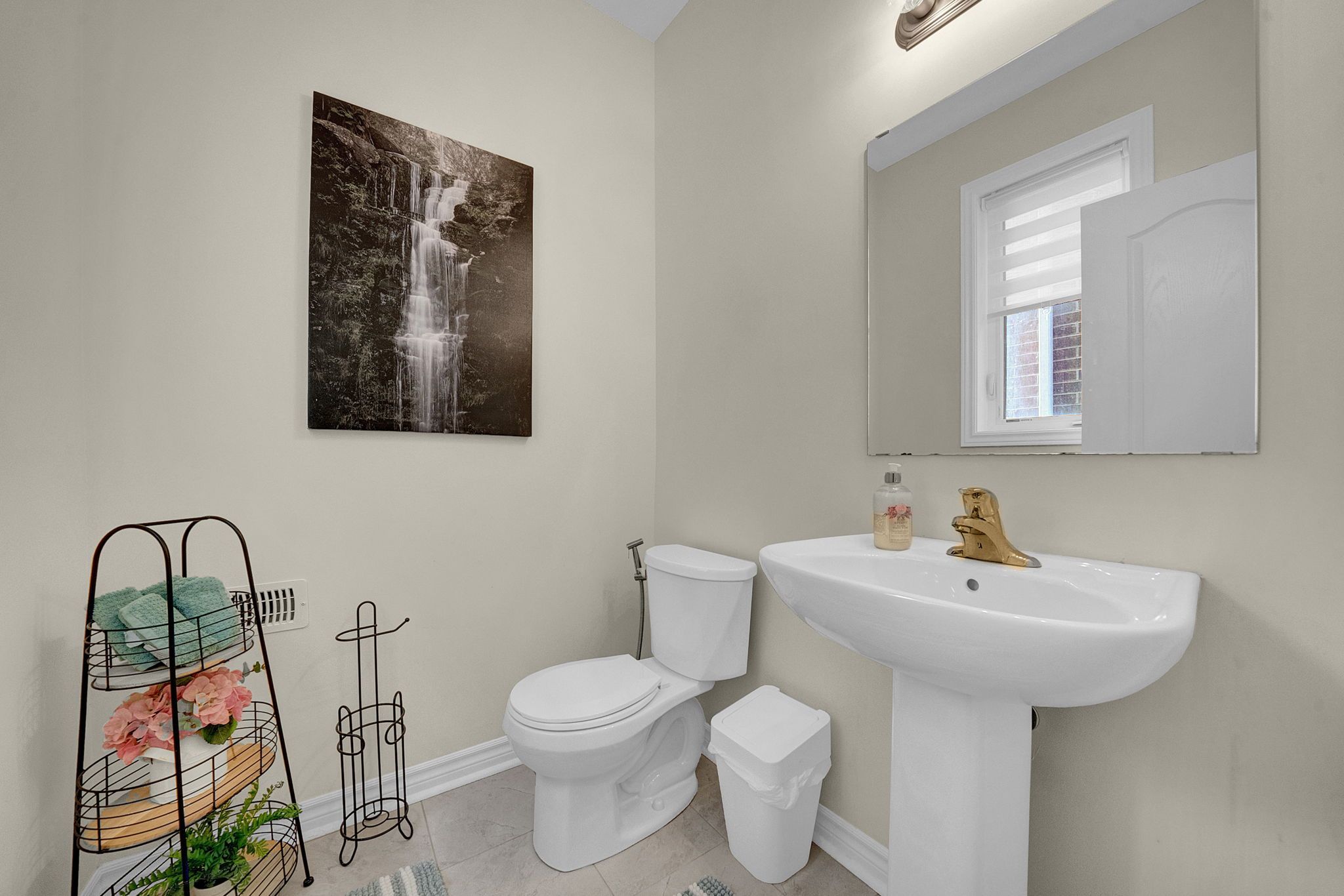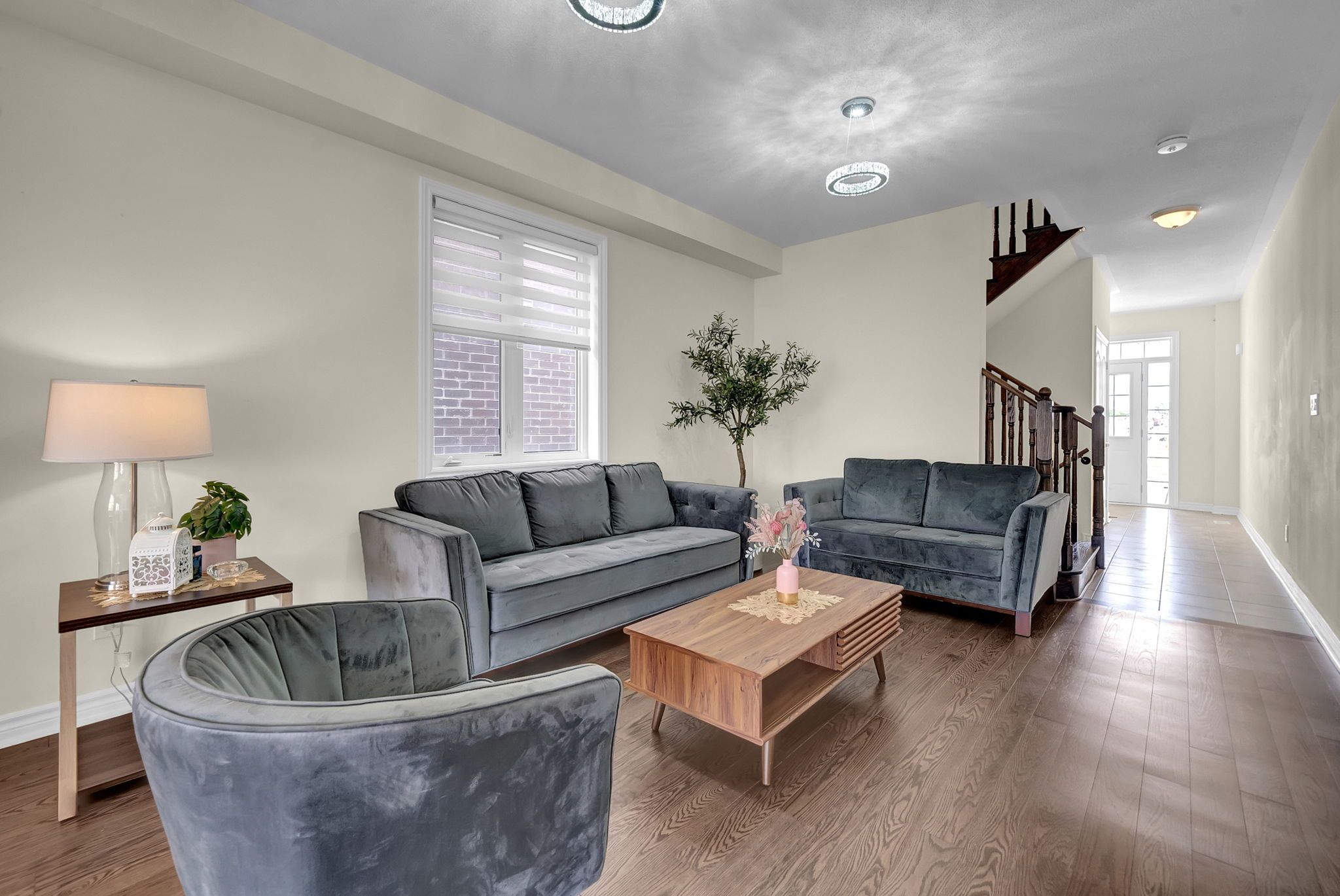 Welcome to 1884 fosterbrook street in oshawa's sought after fields of harmony. This impressive two storey hillside elevation b was purchased as one of the largest floor plans and offers over 2,300 square feet of upgraded living with a mainly brick exterior for timeless curb appeal. The fully finished walkout basement was completed with permits and adds two bedrooms, a full bath, a wet bar, and enlarged egress windows that are perfect for extended family or guests. It also includes a dedicated second laundry room with hookups. The main floor features an open concept design anchored by preverco 5/8" red oak hardwood komodo through the great room and family and dining areas, complemented by a custom 50" linear electric fireplace with a 75" mantel shelf. The kitchen showcases moonlight granite counters with an under-mount sink and an upgraded faucet, siena oak cabinetry in a warm medium brown finish, a waterline to the fridge, a stainless hood fan, and a valance lighting rough in with junction. A builder added interior garage access door provides everyday convenience. Upstairs, every bathroom is finished with upgraded moonlight granite counters over white crystal vanities, while the oak staircase is stained to match with upgraded pickets. Builder installed hard wired security wiring is active, the front yard interlock enhances curb appeal, and additional touches include a tv outlet above the fireplace and an extra light box in the family and dining room. Original owners, pet free, never rented, and meticulously cared for, the home is approximately two years new with the balance of the tarion new home warranty and a central vacuum rough in. Ideally located minutes to highway 401 and highway 407, schools, parks, shopping, and places of worship, with university and college about six minutes away, this home blends size, style, and function with a premium walkout lower level in one of oshawa's most desirable new neighbourhoods.