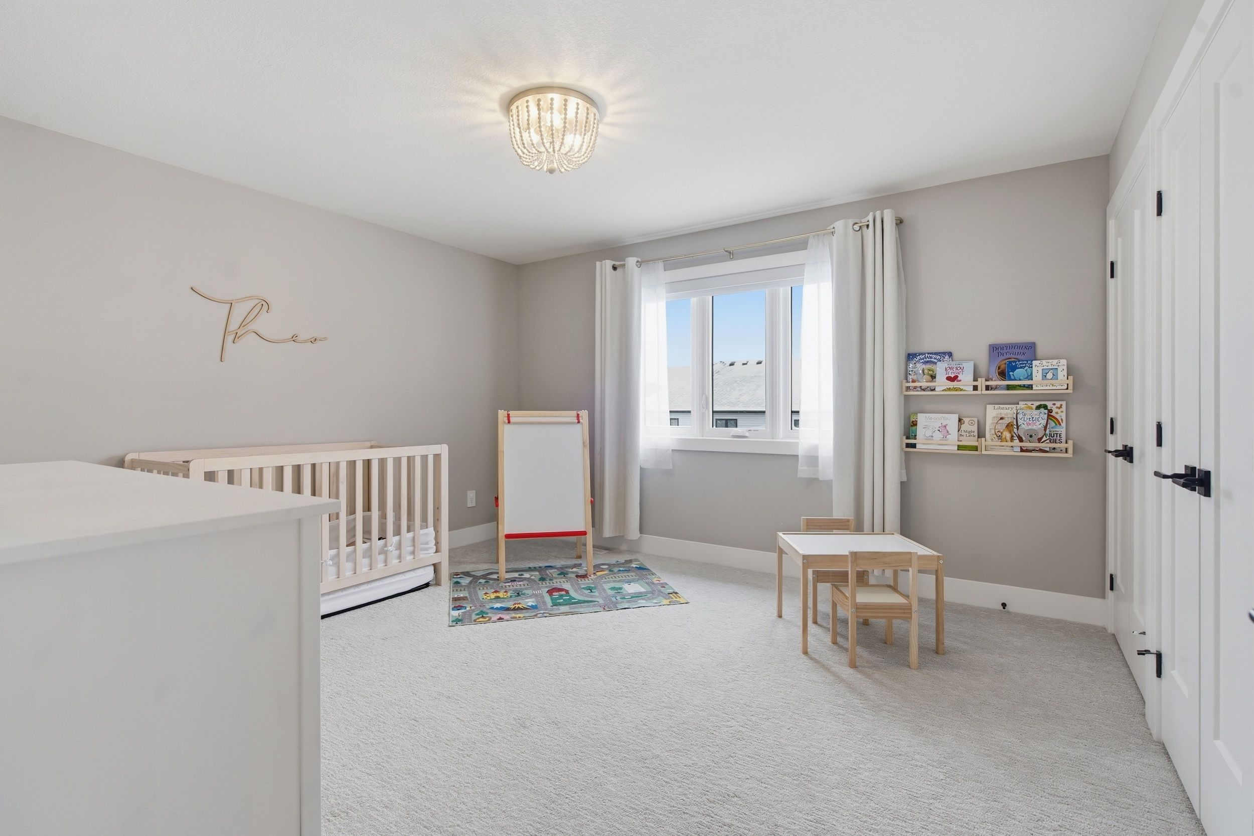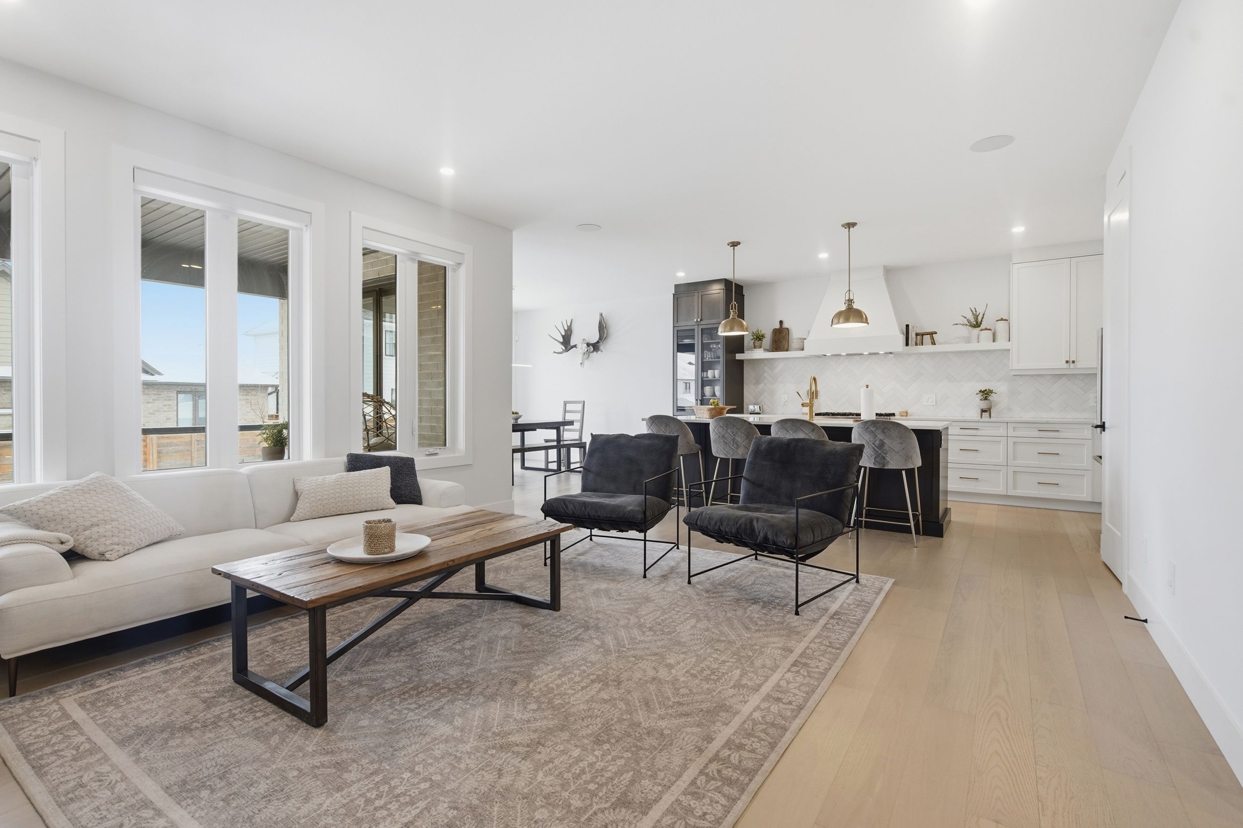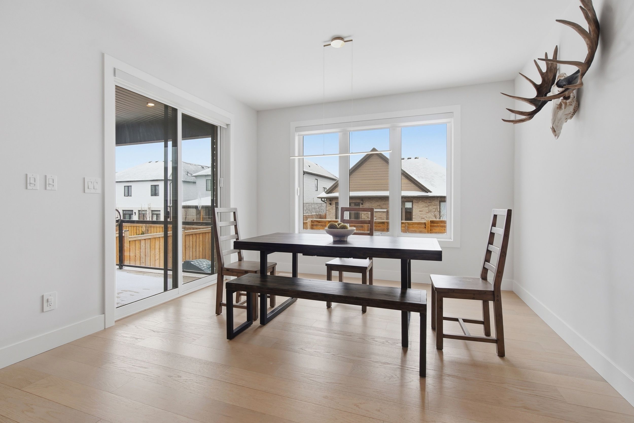 Thoughtful design with everyday comfort, this two-storey custom home offers 2,561 sq. Ft. Of finished living space (plus an additional 854 sq. Ft. In the finished basement), with 4+1 bedrooms and 3. 5 baths - perfect for growing families, busy professionals, or anyone who appreciates a little extra room. Only three years young, this home showcases modern, tasteful finishes and a long list of upgrades that make daily living feel just a bit more elevated. The exterior makes a strong first impression with its blend of brick, stone, and hardie board, complemented by a clean concrete driveway. Inside, the layout is both functional and inviting, featuring an airy open-concept design with 9' ceilings, 8' doors, large windows, engineered hardwood, and a linear gas fireplace flanked by custom built-ins. The kitchen is equally impressive with quartz countertops, custom cabinetry, a tasteful backsplash, a generous island with seating, a walk-in pantry, and stainless steel appliances. Step outside to the covered patio within a fully fenced yard - perfect for relaxing or entertaining. Upstairs you'll find 4 spacious bedrooms, 2 full bathrooms, and a convenient flex area. The primary bedroom serves as a peaceful escape, complete with a beautiful ensuite and a custom walk-in closet designed to keep life organized. The finished basement adds valuable flexibility - ideal for a kids' play zone, cozy rec room, home gym, or private guest suite with its own bedroom and bath. Located in the highly desirable warbler woods neighbourhood, just minutes from top-rated schools, shopping, dining, parks and trails. Come see how easily this home fits your lifestyle.