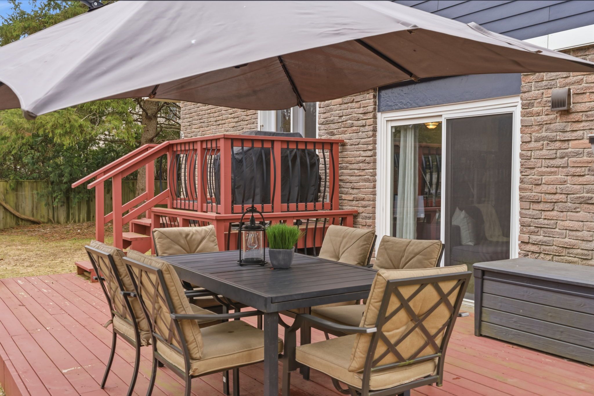 • Large pie-shaped lot with a heated above-ground pool and tiered deck.