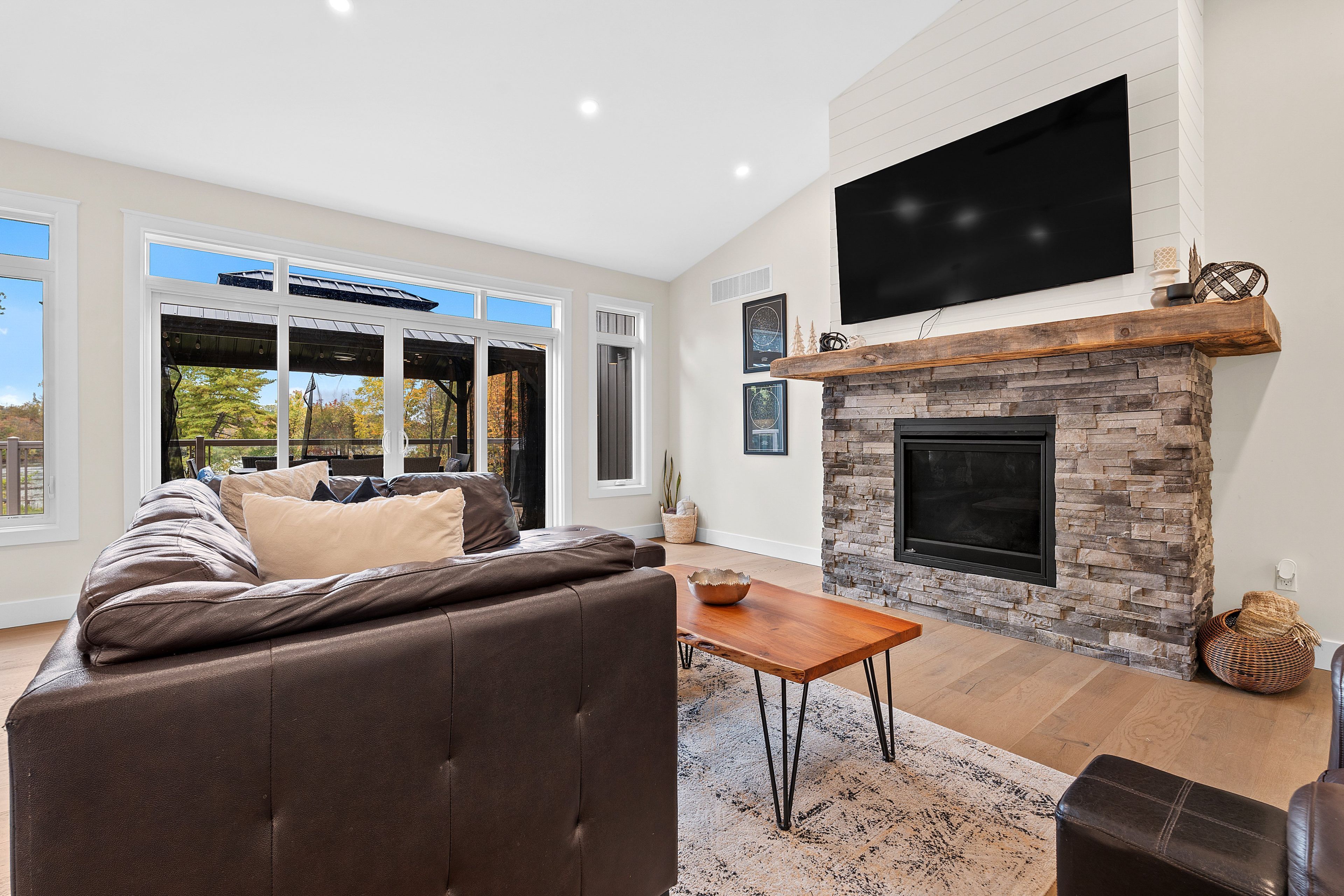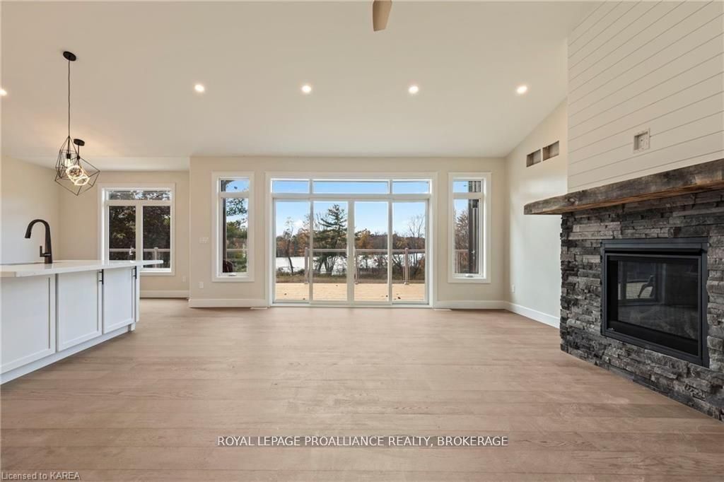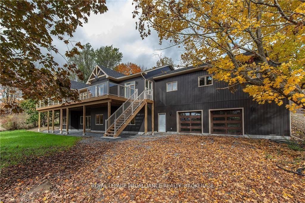 Discover lakeside living at its best with this stunning custom-built bungalow, offering over 2,000 sq. Ft. Of main floor living space and nearly 60' of shoreline on dog lake. Crafted with both quality and comfort in mind, this home features an icf foundation, soaring 10' ceilings, a vast partially finished walk-out lower level, and engineered hardwood & tile flooring throughout. The open concept impresses, with the bright kitchen featuring quartz countertops, premium cabinetry and large separate dining area open to the spacious living room - highlighted by a gas fireplace and 12-foot patio doors leading to a 650 sq. Ft. Deck with glass and aluminum railings providing breathtaking panoramic views of the area. The primary suite is tucked away at one end of the home offering privacy, and finished with cove ceilings and a spa inspired 5-piece ensuite with glass-enclosed shower and soaker tub. Two other bedrooms and a full bath are also here on the main level. The walk-out lower level provides extra flex space and finds in-floor heating roughed-in, and the attached six-car garage with epoxy flooring is incredible. This one is a beauty - with wonderful curb appeal from the stamped concrete front porch all the way around the yard space right to the waterfront with a new floating dock. Packed with upgrades and with high end finishes throughout, this one should not be missed. Survey, floor plans and supporting documents are available upon request.
