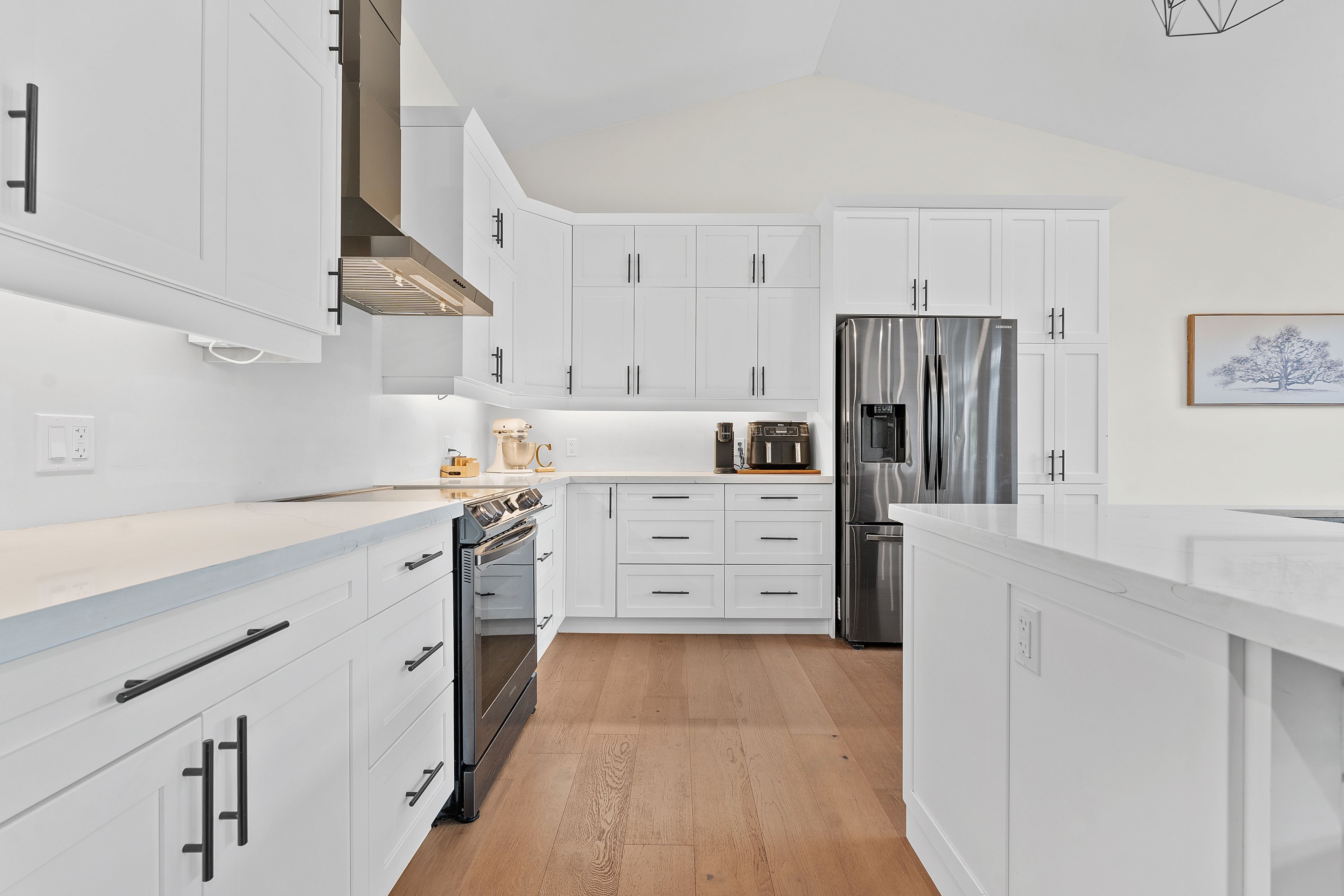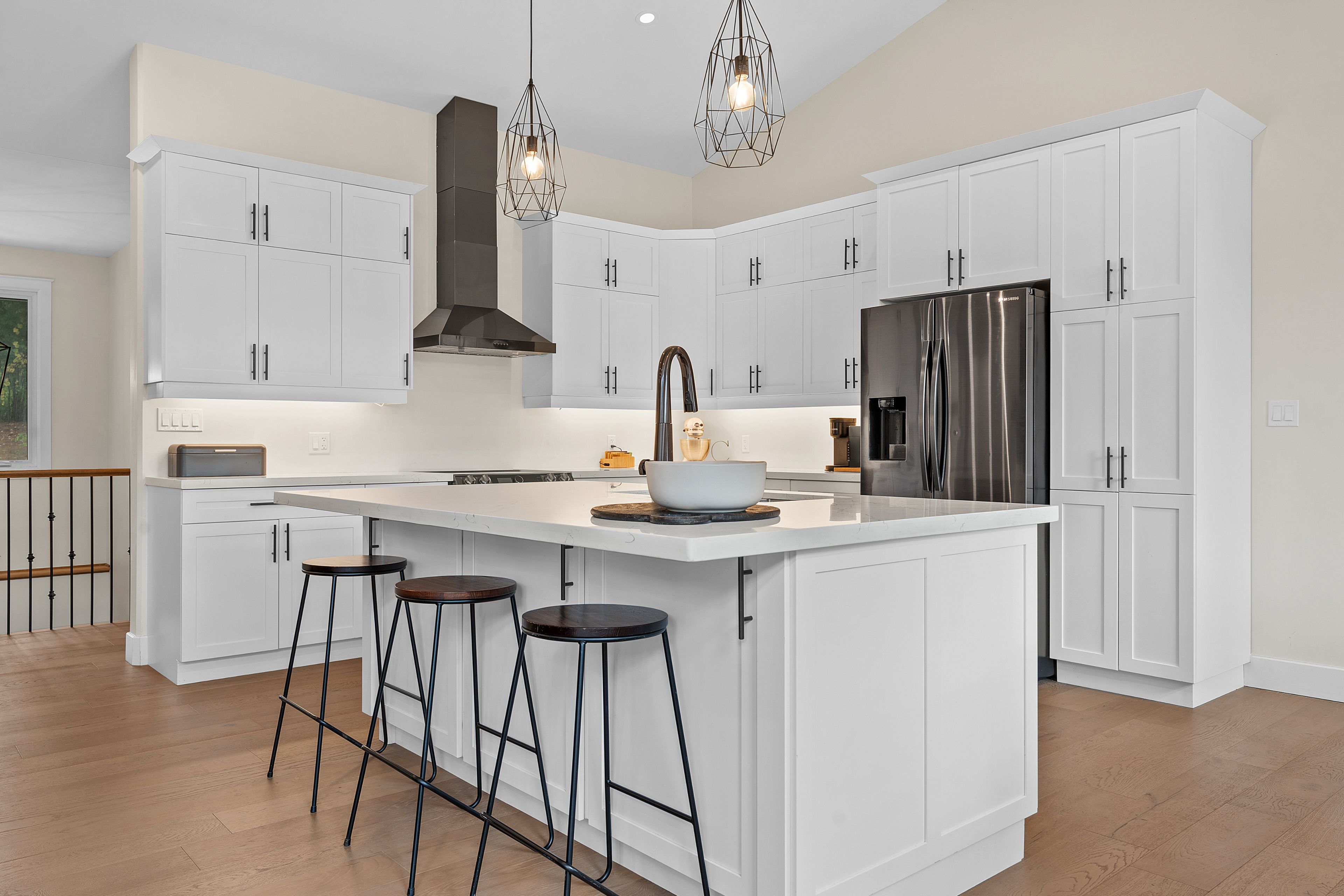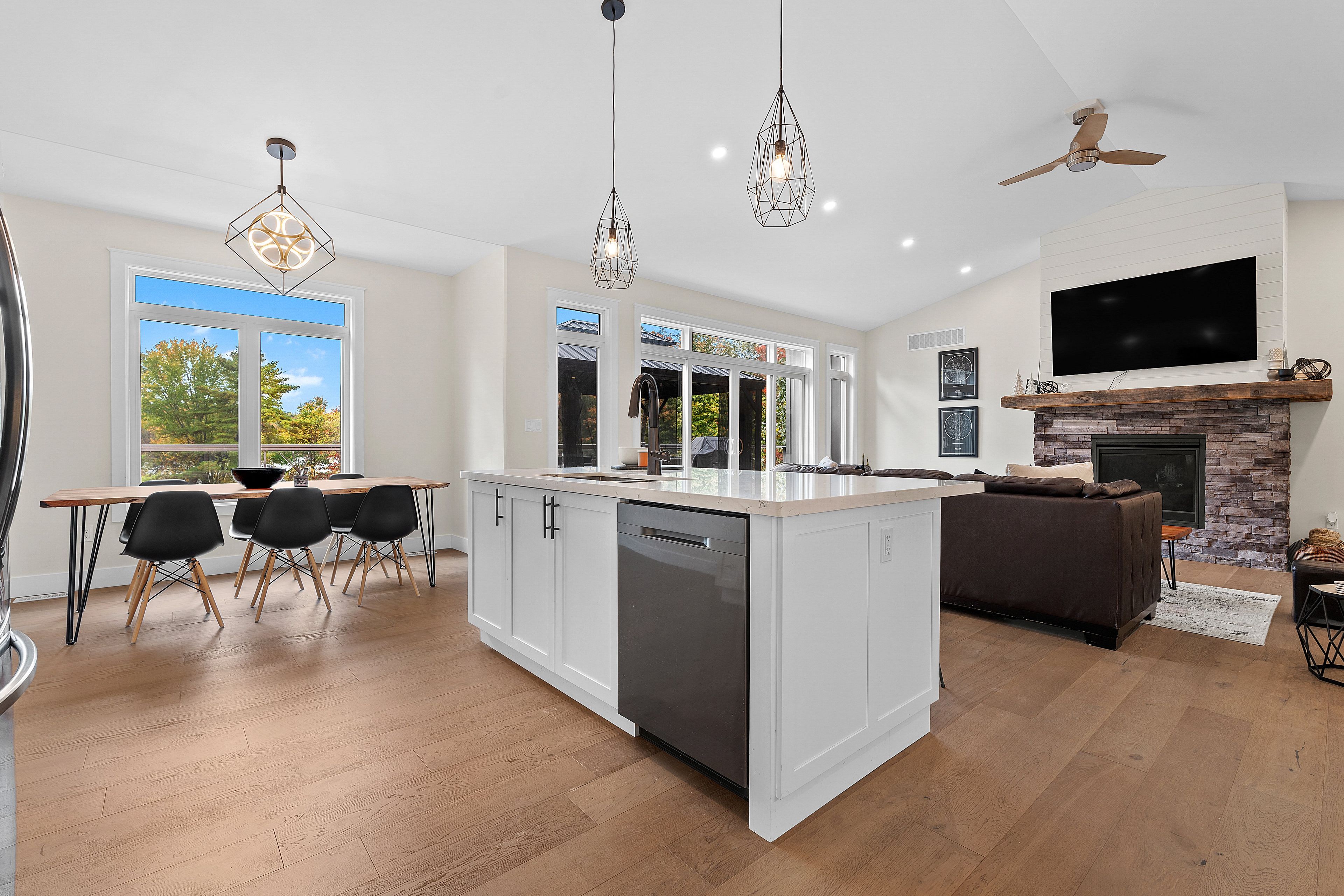 • Open concept living with a bright kitchen and gas fireplace.