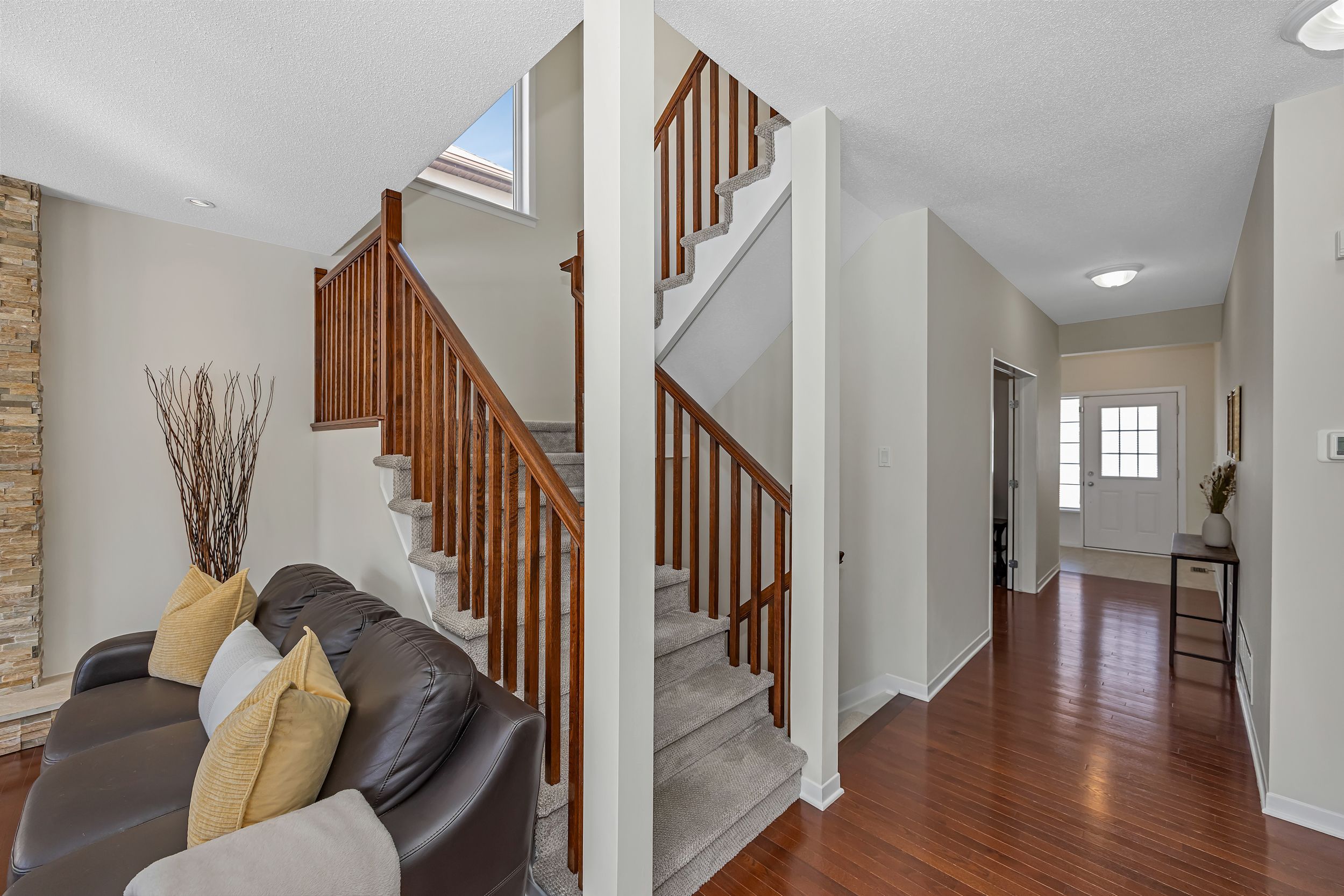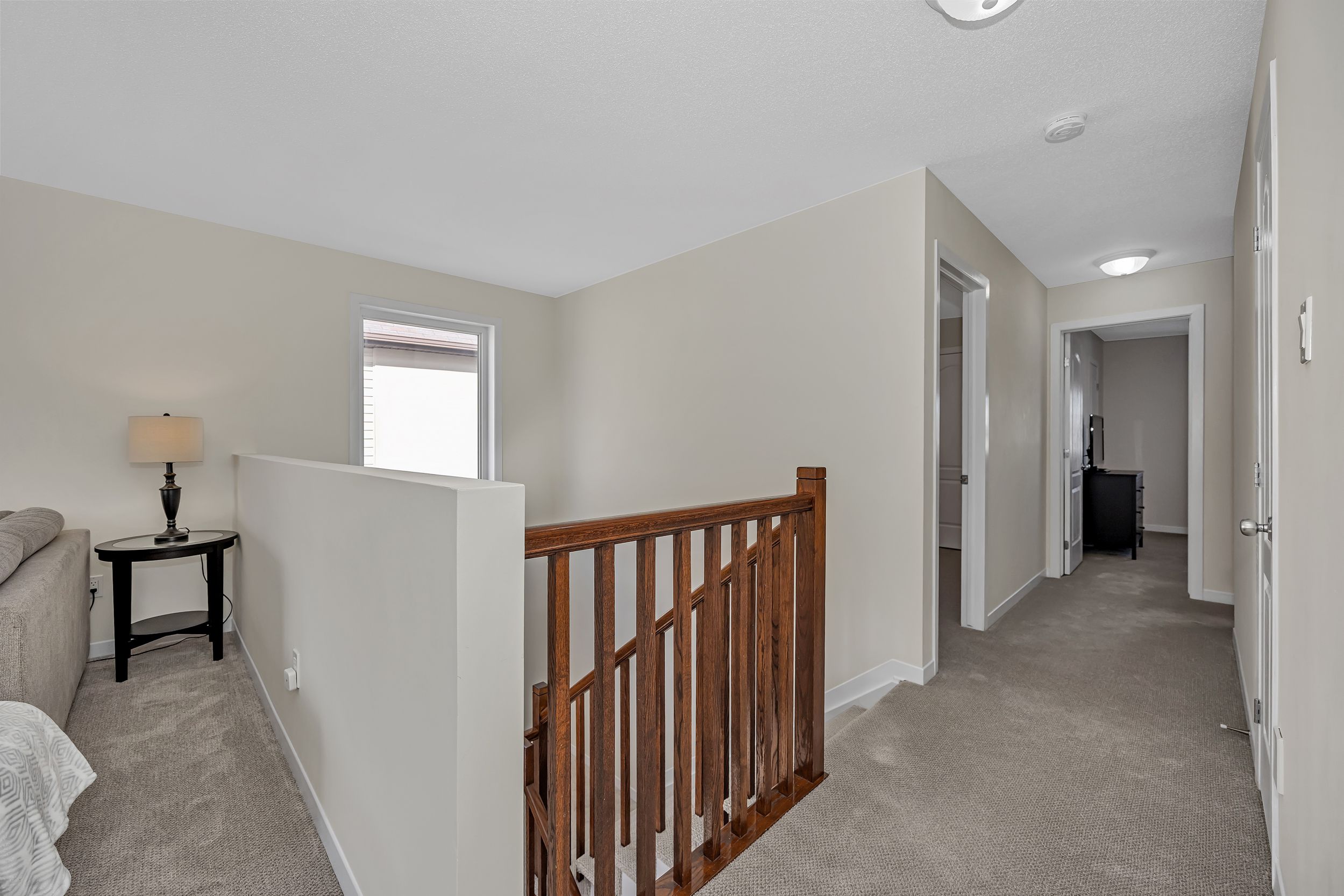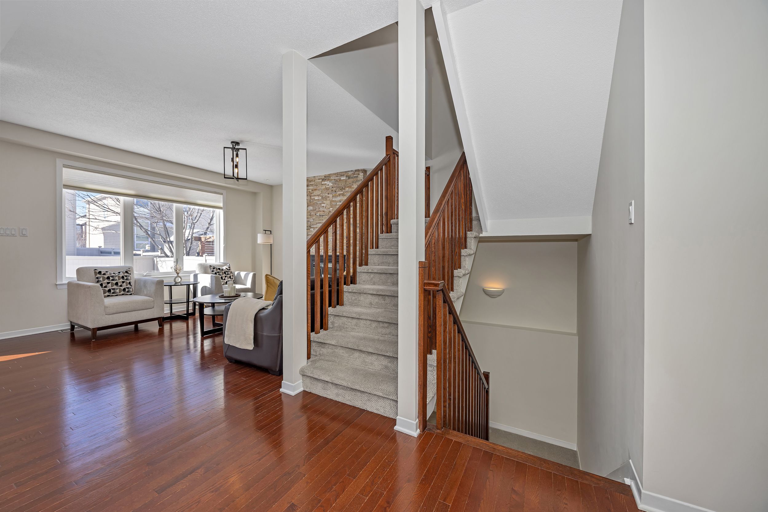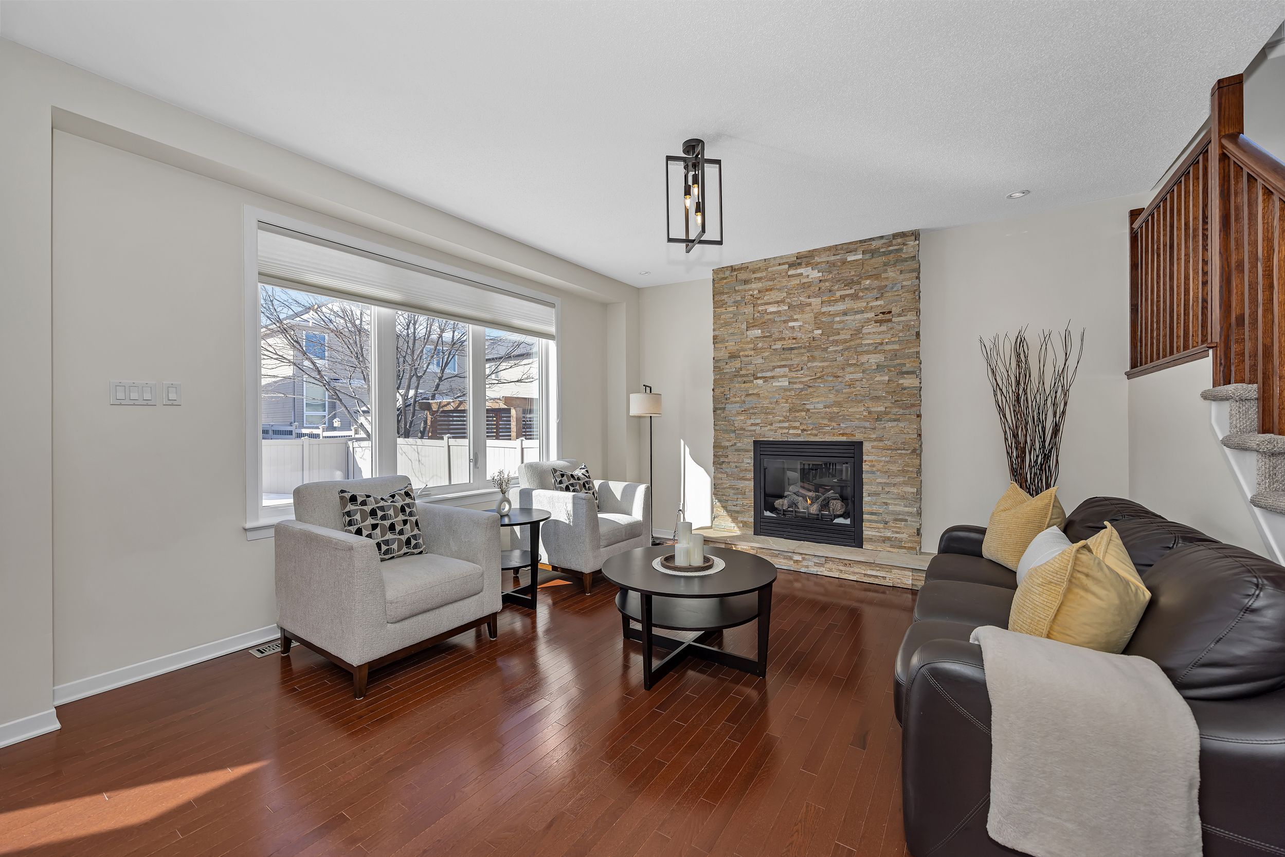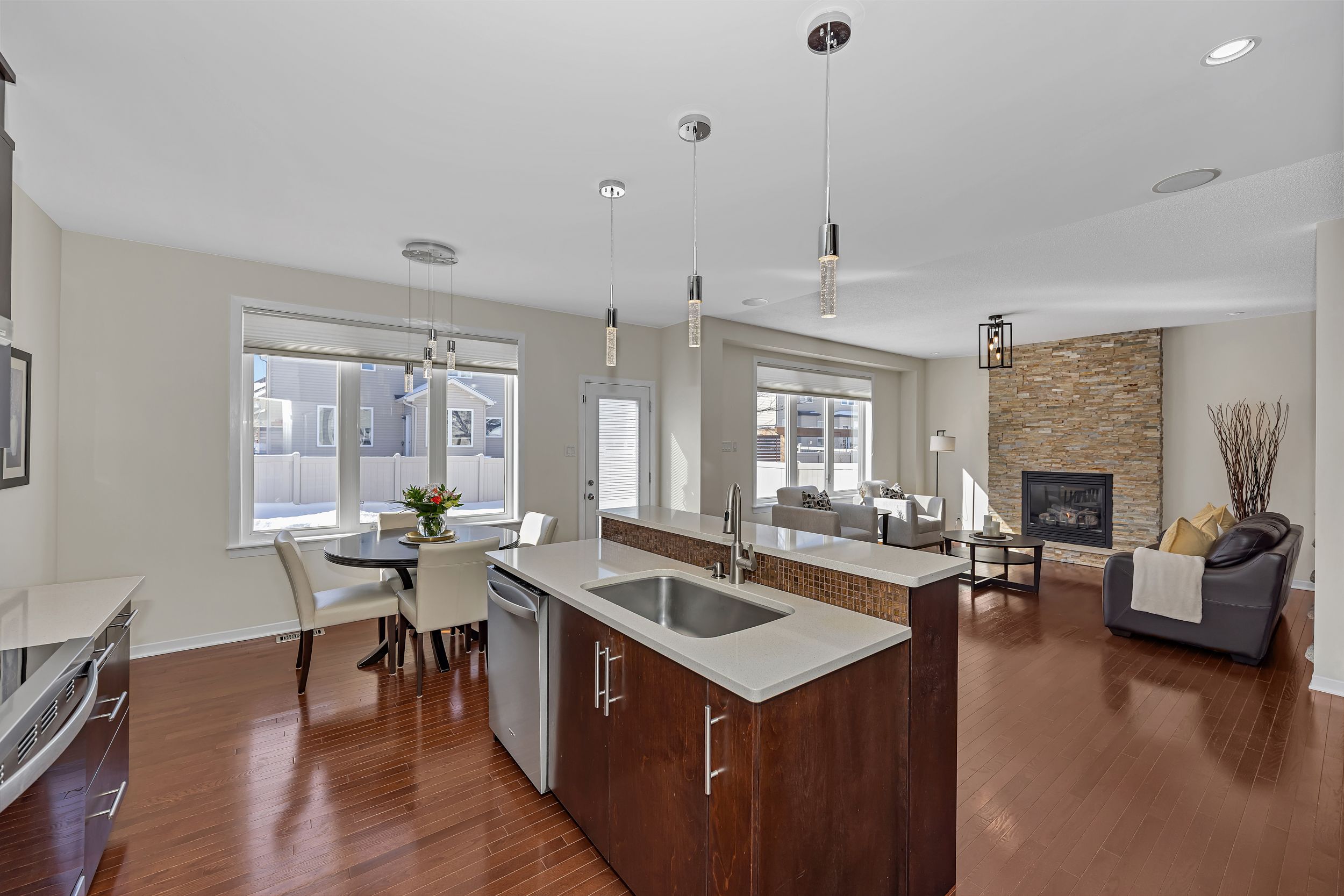 Welcome to this stunning 4-bedroom home located in the highly sought-after notting hill neighbourhood, just steps from a large park, recreation centre, top-rated schools, shopping, and convenient oc transpo access. The open-concept main level showcases beautiful hardwood floors and a custom-built deslaurier kitchen featuring quartz countertops, a breakfast bar, abundant cabinetry, a walk-in pantry, and a bright eating area. The inviting family room is highlighted by a striking stone gas fireplace and offers direct access to the backyard - perfect for entertaining or relaxing evenings at home. A versatile flex room with double doors on the main floor makes an ideal home office or den. The laundry/mudroom provides convenient access to the garage. Upstairs, you'll find a spacious loft/bonus area that can easily be converted into a 5th bedroom. The generous primary bedroom features a walk-in closet and a luxurious 5-piece ensuite complete with double sinks, a soaker tub, and a walk-in shower. The unfinished basement includes a 3-piece rough-in and awaits your personal vision. This exceptional home offers space, style, and an unbeatable location - a perfect place to call home. Furnace 2023, ac 2022