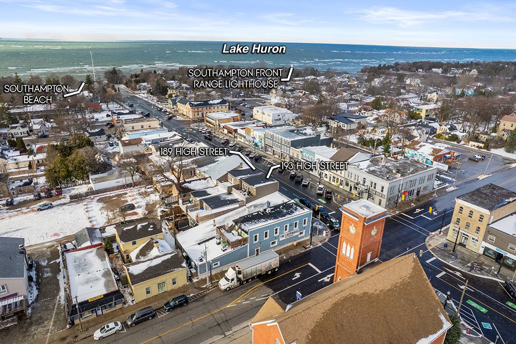 Exceptional 6% cap mixed-use investment opportunity at 189-193 high street in the heart of southampton. Offered together as one package, these two extensively rebuilt and renovated buildings feature high-end finishes and a desirable mix of commercial and residential units, all fully leased with quality tenants in place, delivering immediate income and long-term investment stability. Located just steps from southampton beach and approximately 20 minutes from bruce power, the property benefits from strong demand in one of ontario's most sought-after lakeside communities. At 189 high street, the main level offers a well-positioned commercial space with two updated residential apartments above. 193 high street includes a prominent commercial unit, a main-floor residential suite, and two additional residential units on the upper level. The residential mix offers versatile layouts including two-bedroom units, one-bedroom suites, and a one-bedroom plus den, appealing to a wide range of professional and long-term tenants. Each unit has been thoughtfully modernized with premium finishes, creating attractive, turn-key spaces that continue to draw stable, high-quality tenants. Dedicated parking for tenants further enhances convenience and long-term tenant retention. With excellent main street visibility, strong tenant demand, and proximity to beaches, restaurants, and shops, this property represents a rare opportunity to acquire a fully stabilized, like-new income-producing asset delivering a 6% return in a premier waterfront community. Rent roll, financials, and additional photos are available upon request. Additional opportunity: 174 high street is also available for purchase, creating the potential to assemble a *larger portfolio of prime mixed-use real estate along southampton's main commercial strip.