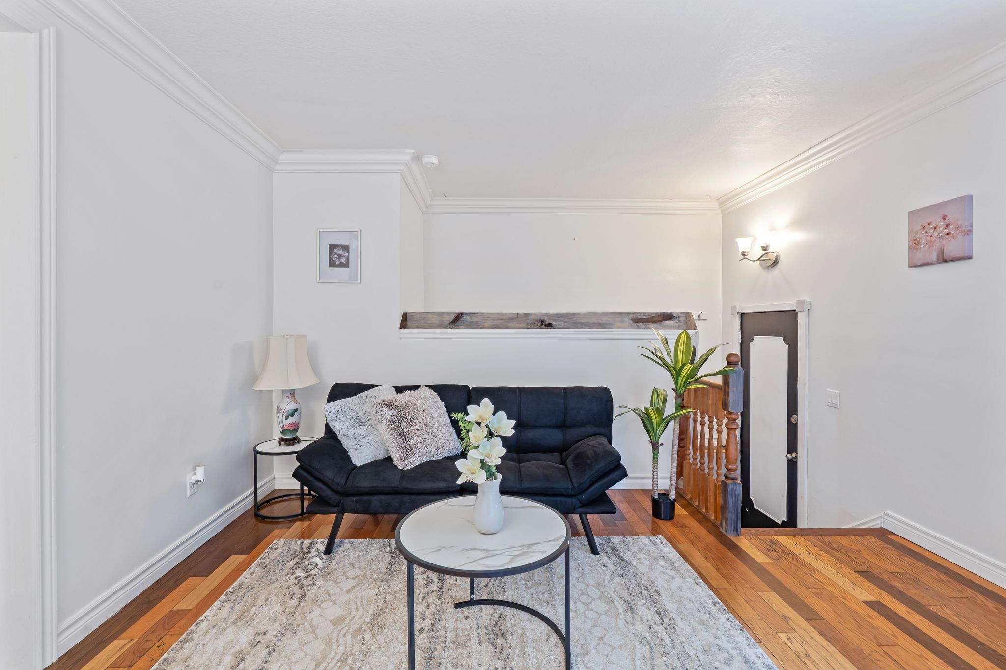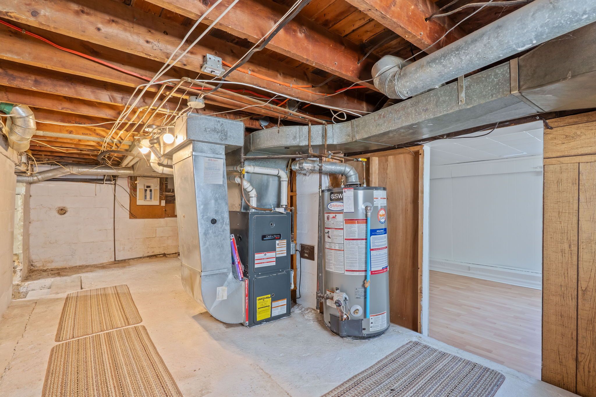 • Versatile living areas and partially finished basement for various uses.