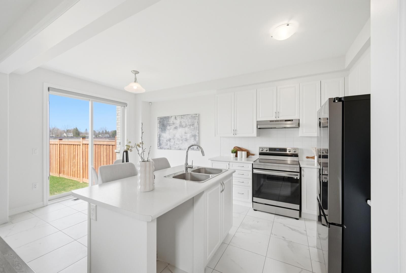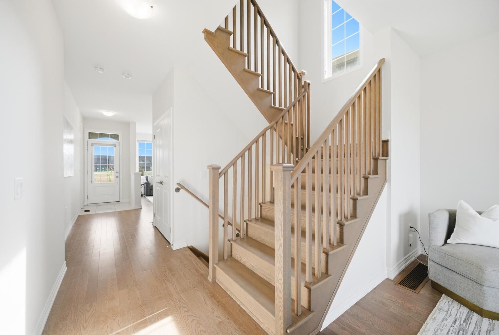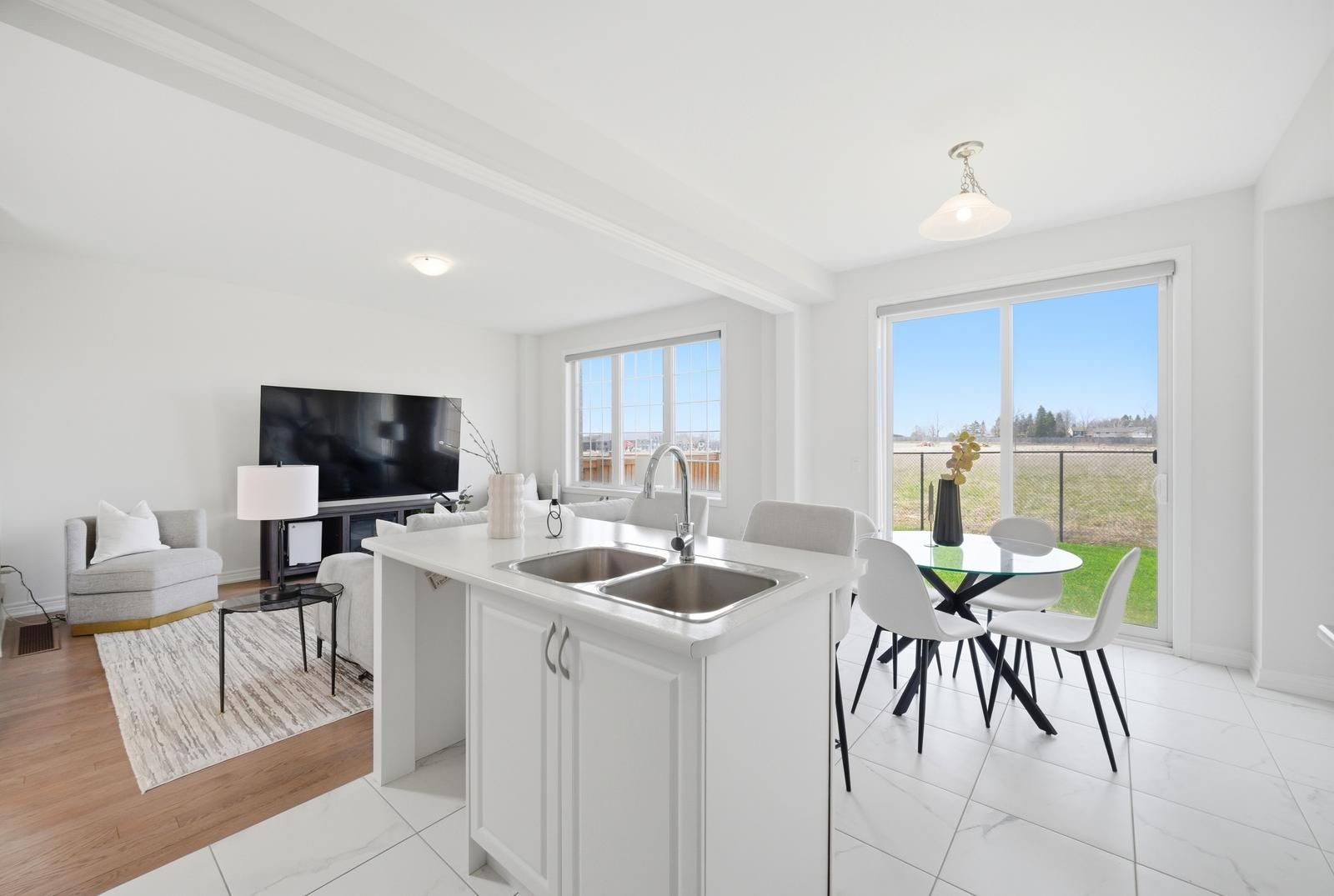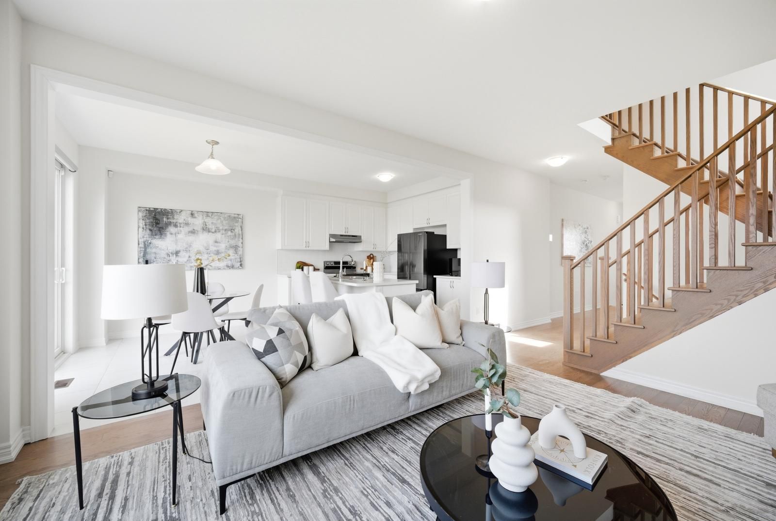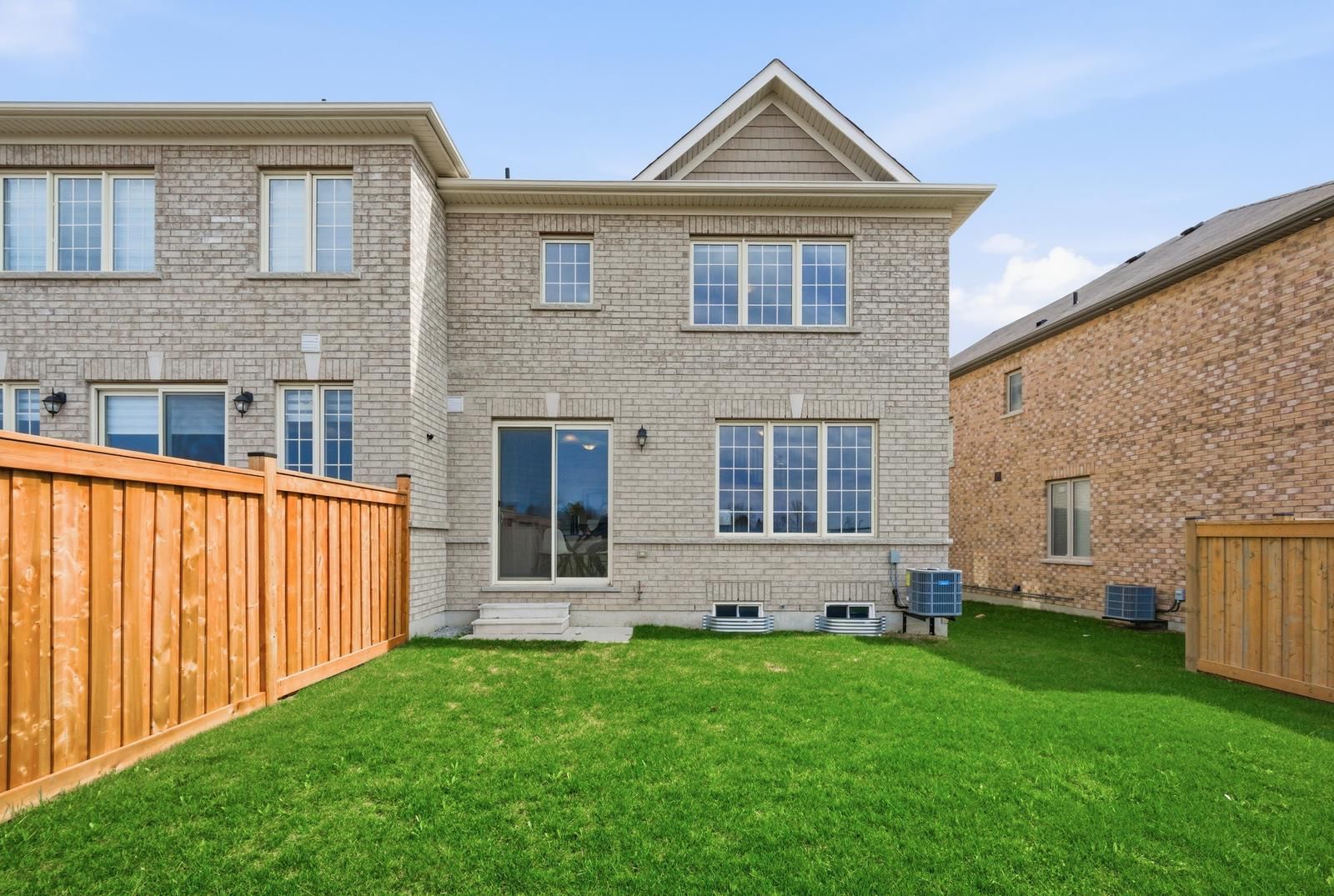Rarely offered modern and elegant end unit freehold townhouse with a stunning stone and brick façade, offering nearly 2,000 sq ft of above grade living space with a spacious and functional layout including living, dining, and family rooms, three large bedrooms, and convenient upper level laundry. This bright home features 9 ft smooth ceilings on the main floor, a beautiful white kitchen, and no carpet throughout. The large primary bedroom includes a walk in closet and a spacious ensuite with a glass shower. Enjoy an interlocked driveway extension with extra parking, a generous 35 ft wide rear, and a large private backyard with no rear neighbours, perfect for relaxing and entertaining. The unspoiled basement offers endless potential. Ideally located close to parks, schools, shopping, the go station, hwy 404, and just steps to the brand new state of the art community health and active living plaza, adding exceptional convenience and long term value to the neighbourhood. A must see!