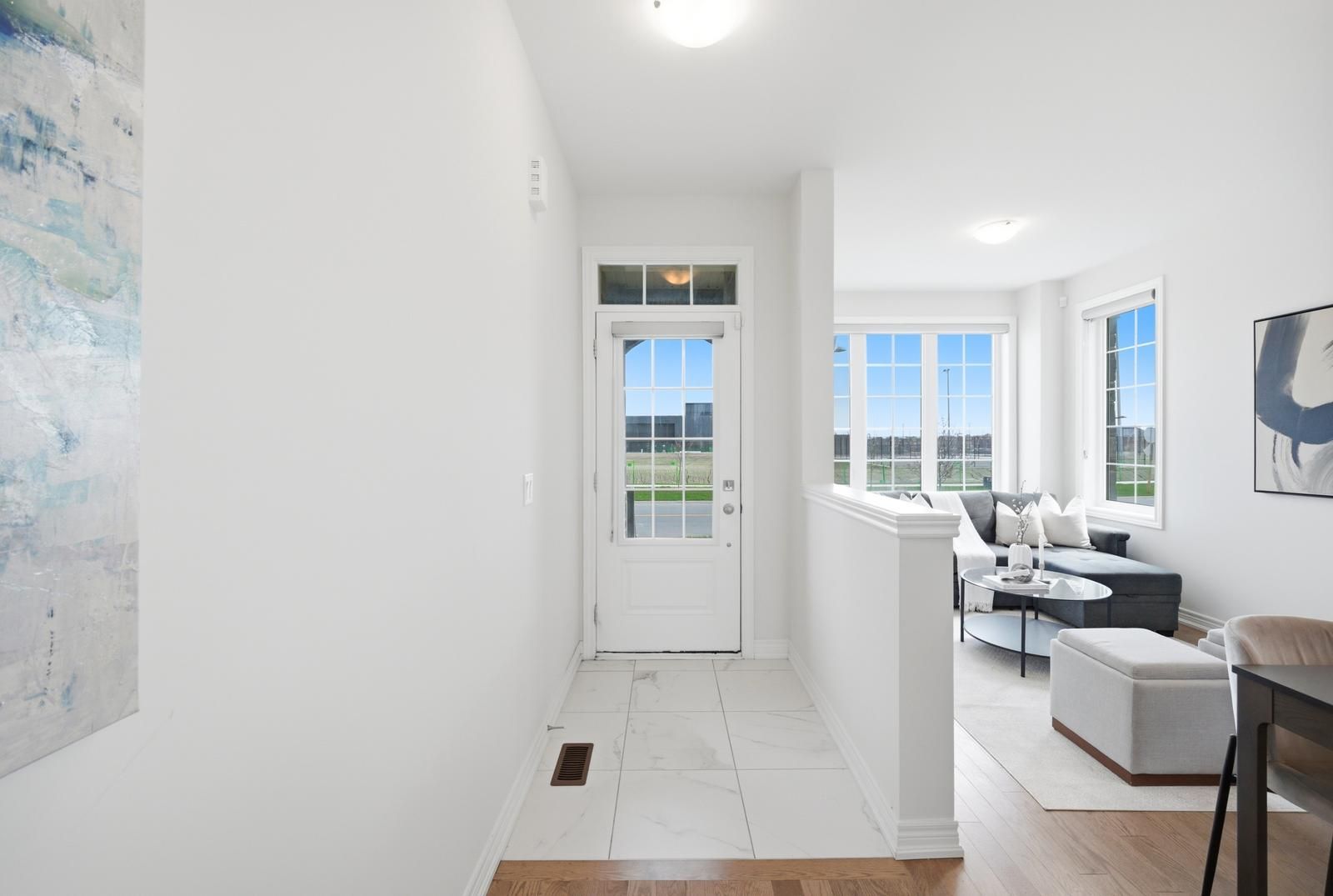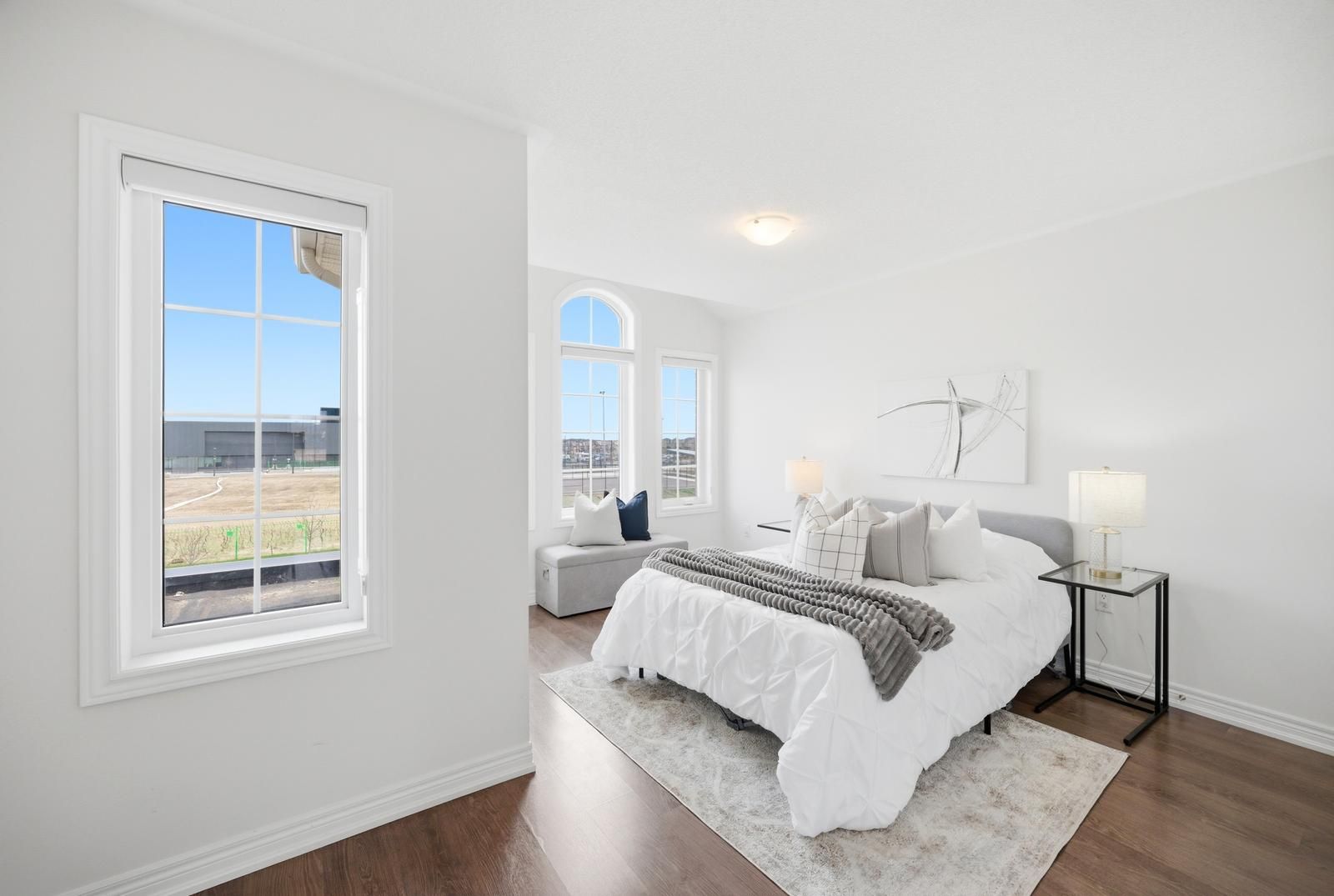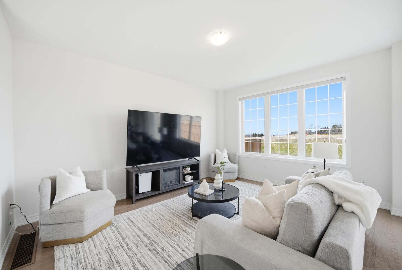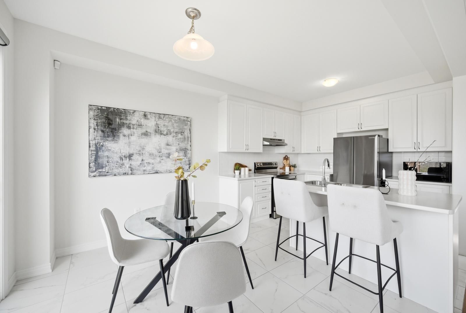 Rarely offered modern and elegant end unit freehold townhouse with a stunning stone and brick façade, offering nearly 2,000 sq ft of above grade living space with a spacious and functional layout including living, dining, and family rooms, three large bedrooms, and convenient upper level laundry. This bright home features 9 ft smooth ceilings on the main floor, a beautiful white kitchen, and no carpet throughout. The large primary bedroom includes a walk in closet and a spacious ensuite with a glass shower. Enjoy an interlocked driveway extension with extra parking, a generous 35 ft wide rear, and a large private backyard with no rear neighbours, perfect for relaxing and entertaining. The unspoiled basement offers endless potential. Ideally located close to parks, schools, shopping, the go station, hwy 404, and just steps to the brand new state of the art community health and active living plaza, adding exceptional convenience and long term value to the neighbourhood. A must see!