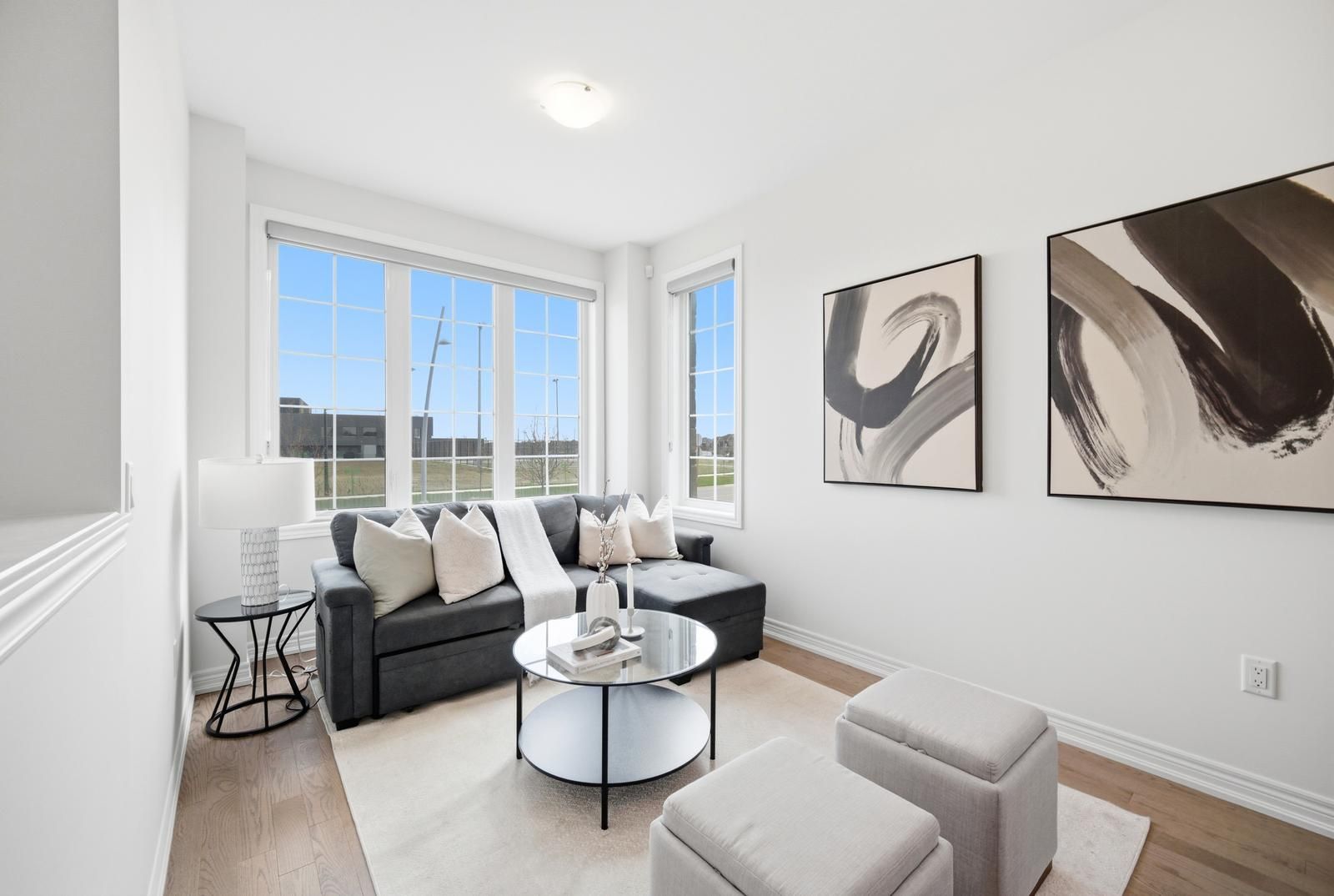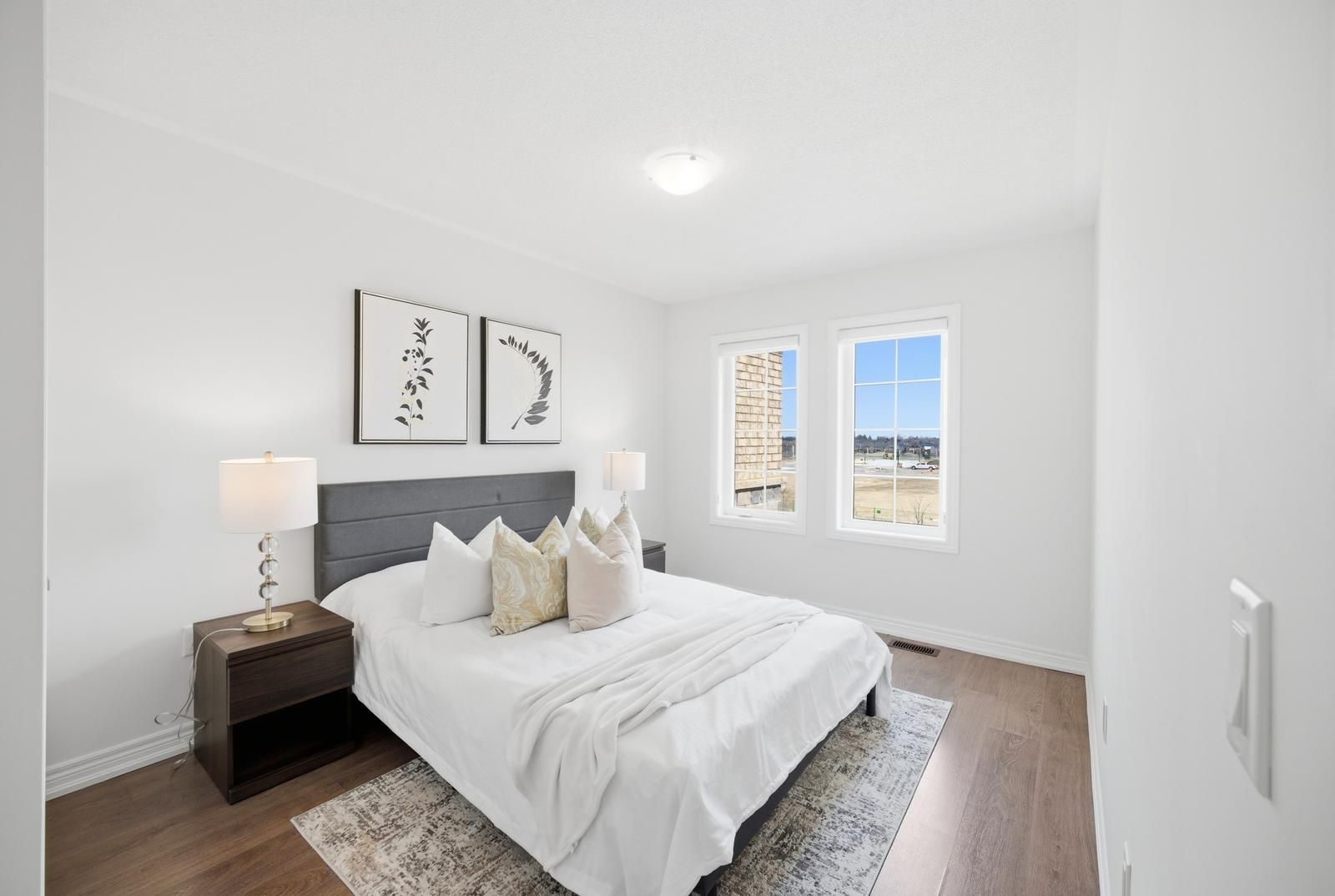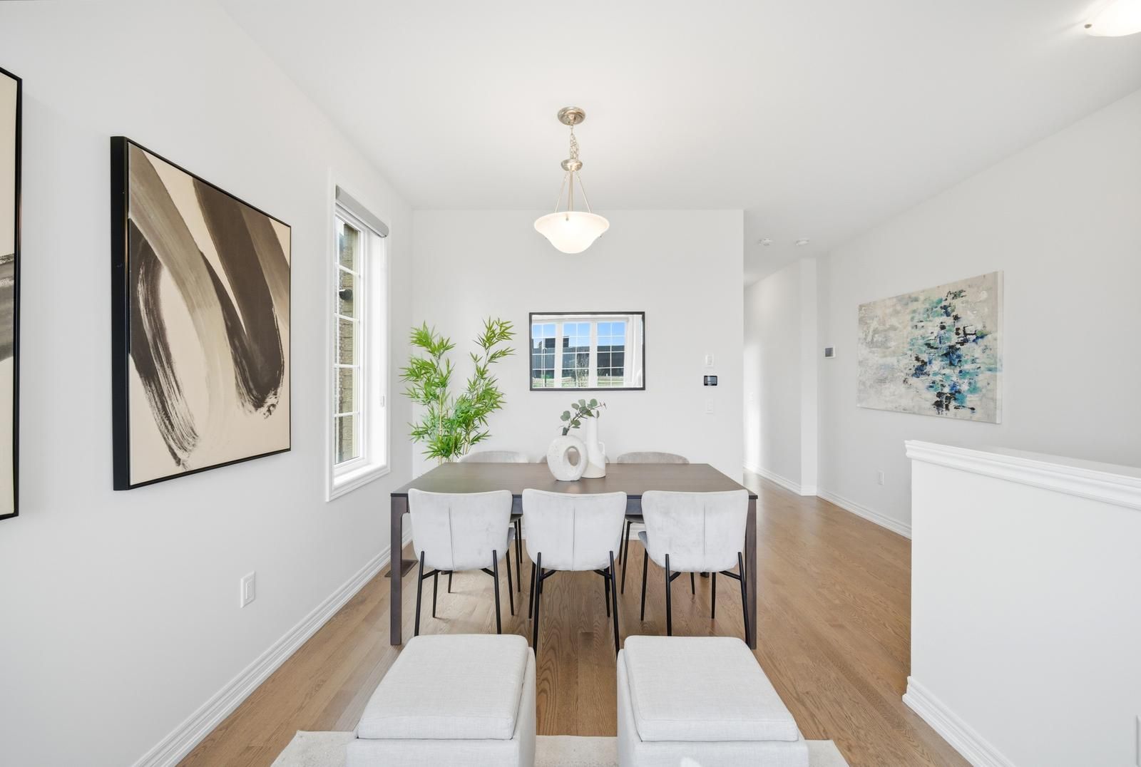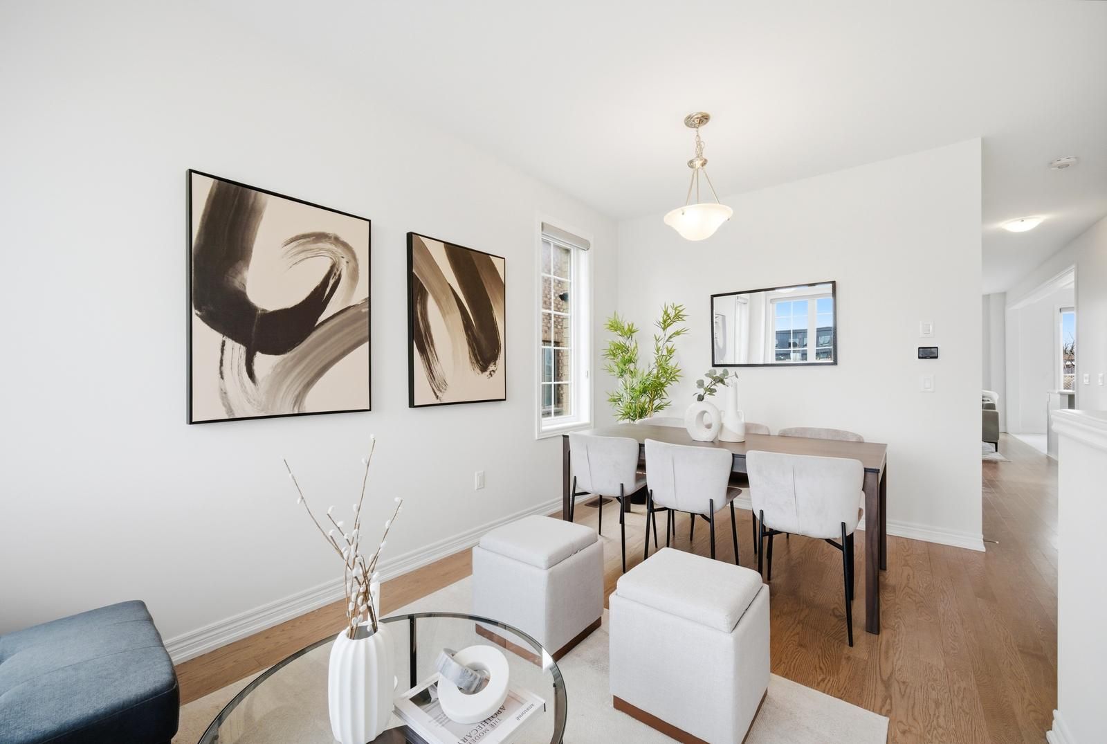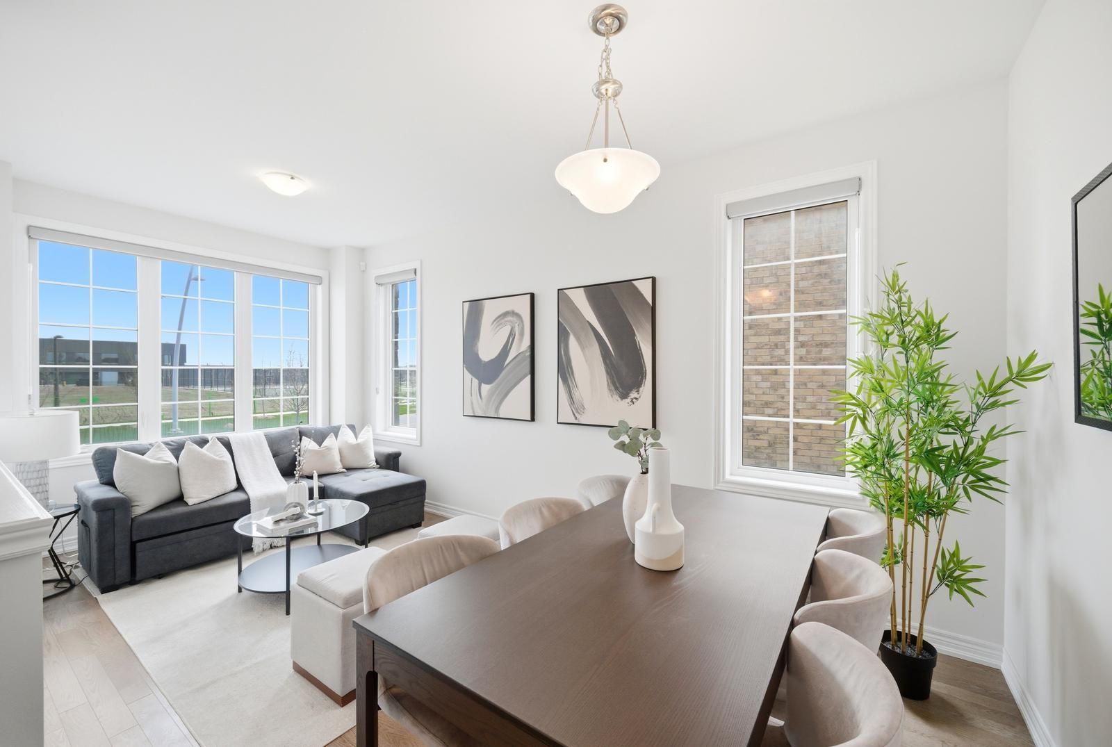 Rarely offered modern and elegant end unit freehold townhouse with a stunning stone and brick façade, offering nearly 2,000 sq ft of above grade living space with a spacious and functional layout including living, dining, and family rooms, three large bedrooms, and convenient upper level laundry. This bright home features 9 ft smooth ceilings on the main floor, a beautiful white kitchen, and no carpet throughout. The large primary bedroom includes a walk in closet and a spacious ensuite with a glass shower. Enjoy an interlocked driveway extension with extra parking, a generous 35 ft wide rear, and a large private backyard with no rear neighbours, perfect for relaxing and entertaining. The unspoiled basement offers endless potential. Ideally located close to parks, schools, shopping, the go station, hwy 404, and just steps to the brand new state of the art community health and active living plaza, adding exceptional convenience and long term value to the neighbourhood. A must see!