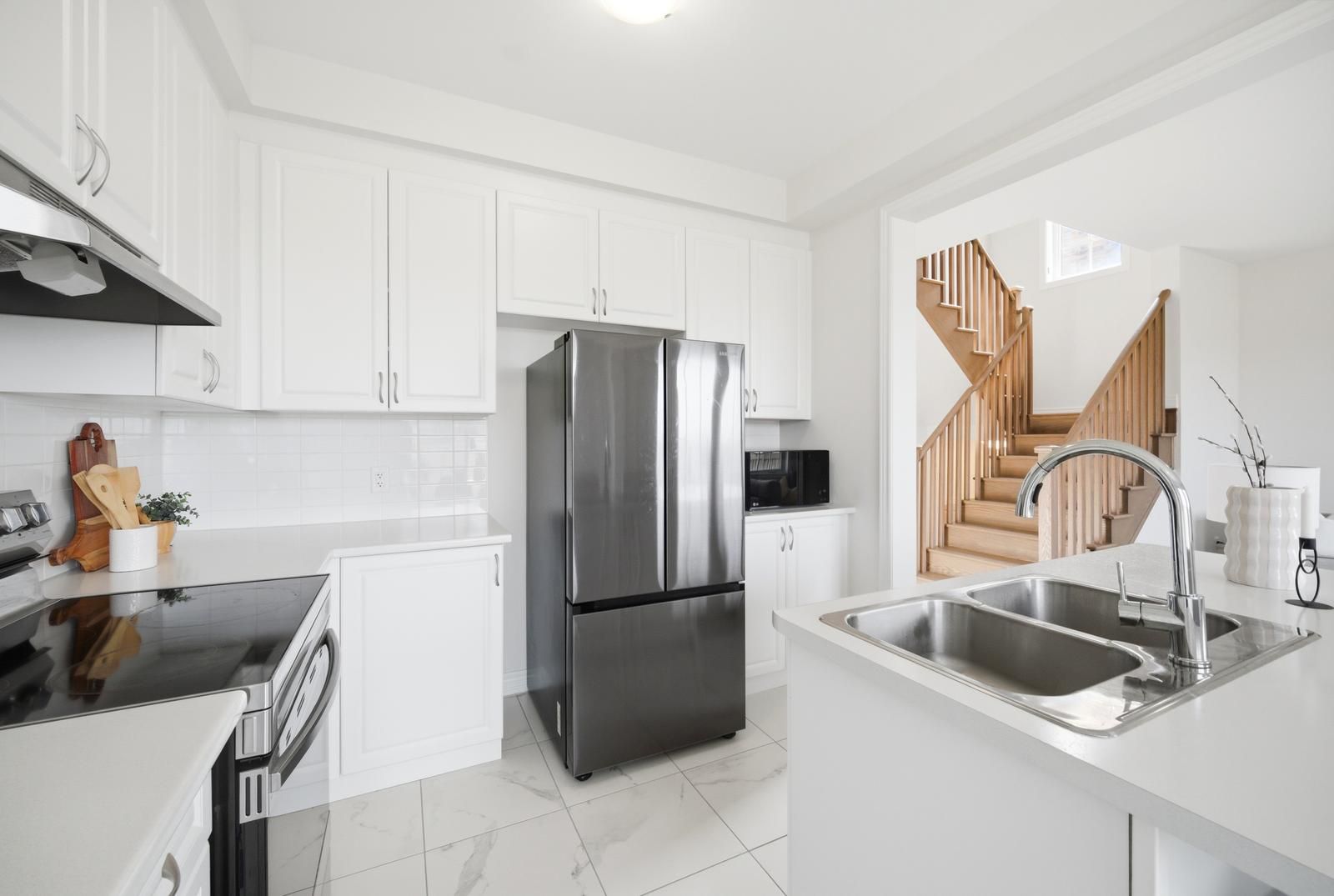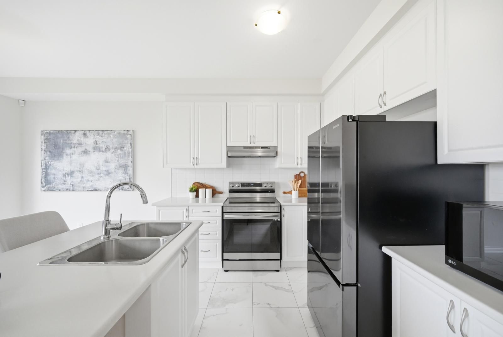 • Bright kitchen, 9 ft ceilings, and no carpet throughout for easy maintenance.