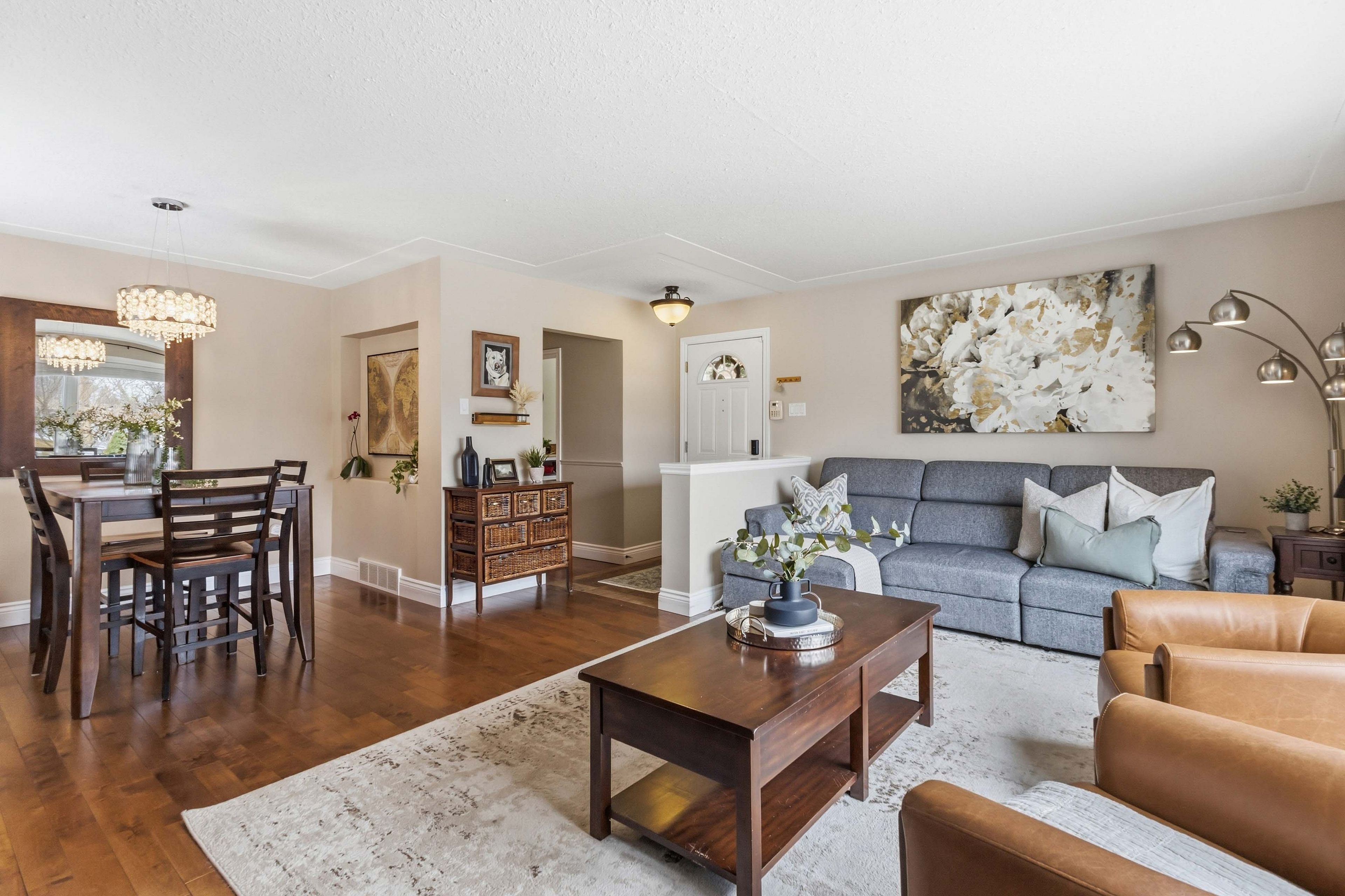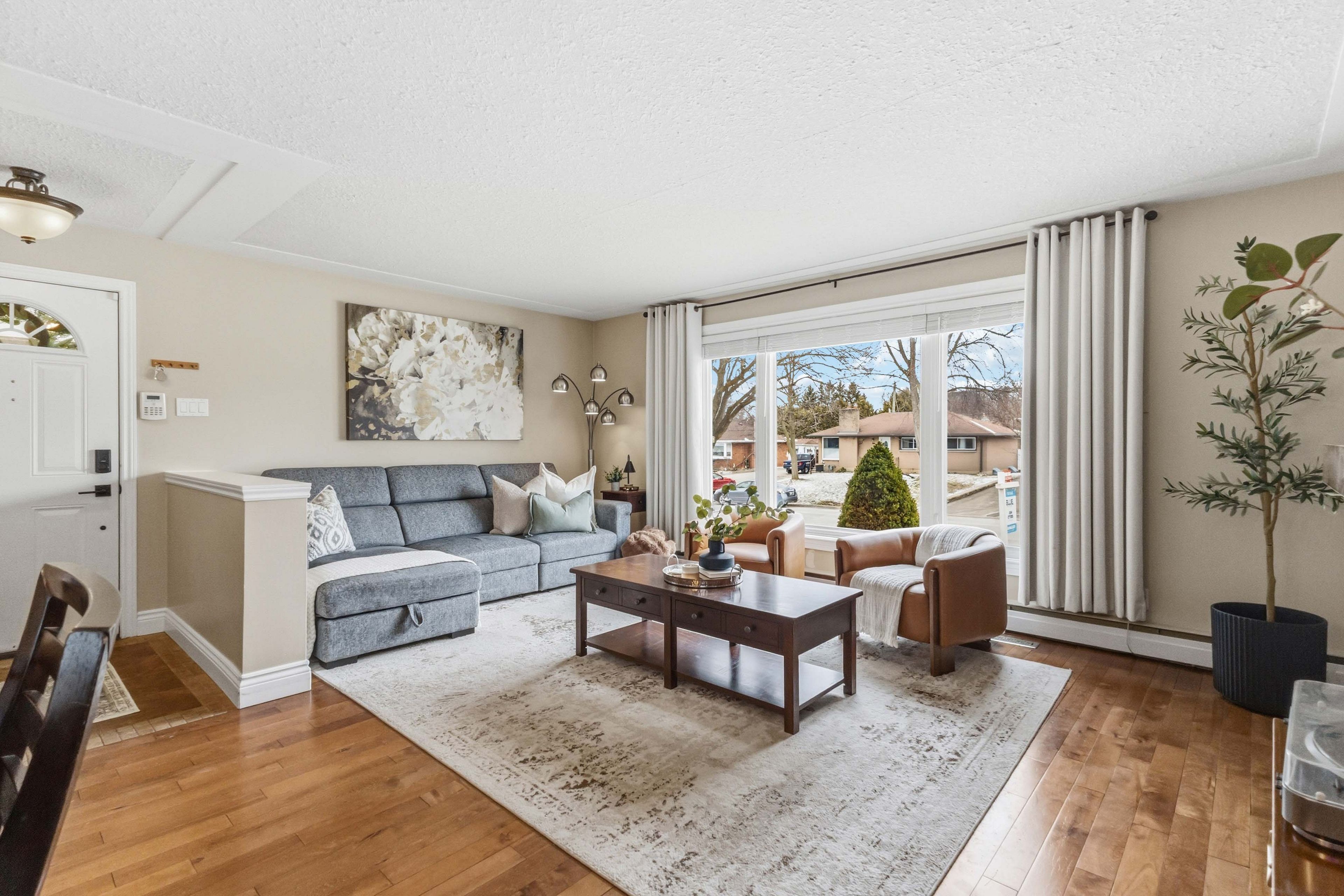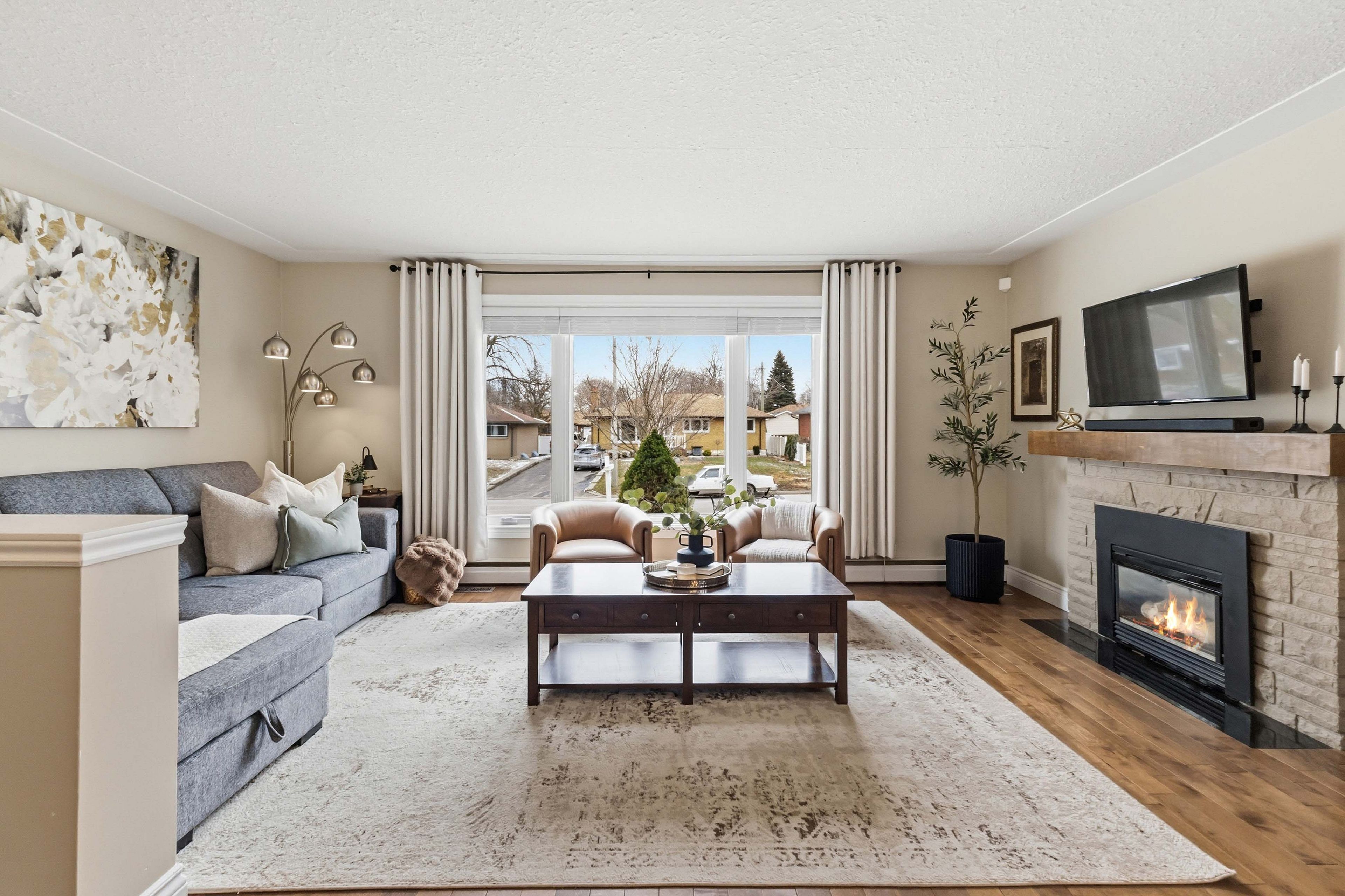 Welcome to 189 king edward avenue, a home where the details have been thoughtfully taken care of so you can simply move in and enjoy. Step in from the inviting front porch and into a bright, open living and dining space where new picture windows flood the room with natural light, a cozy natural gas fireplace anchors the space, and rich hardwood floors add warmth and timeless charm. The space flows into the kitchen, refreshed with paint, quartz countertops, and a large under-mount sink-perfect for making family meals. Down the hallway, you'll find three bedrooms, highlighted by the primary bedroom with peaceful backyard views and a closet complete with built-in storage organization. The 4-piece bathroom has fresh paint, earth-tone tiles, and a clean, modern aesthetic. Heading downstairs, discover the ultimate entertaining retreat - fully renovated in 2024, the basement boasts new carpet, a 4-piece bathroom, and a bonus movie theatre room-ideal for movie nights, game days, or relaxing evenings with family and friends. Outside, the backyard is a private oasis with a large composite deck offering ample space for summer gatherings, while an oversized gazebo includes a hidden theatre screen for outdoor movie nights or cheering on your favourite team. Towering hedges surround the fully fenced yard, providing privacy and plenty of room for kids and pets to play. Garden beds are ready for planting and produces fresh strawberries each summer. Practical features continue throughout the property with built-in blinds, central vacuum, and an attached garage offering convenient parking and extra storage. The driveway has also been recently replaced with new concrete, enhancing both durability and curb appeal. With countless updates and thoughtful touches throughout, 189 king edward avenue is a meticulously maintained home designed for comfortable living. Come see it for yourself and experience everything it has to offer.