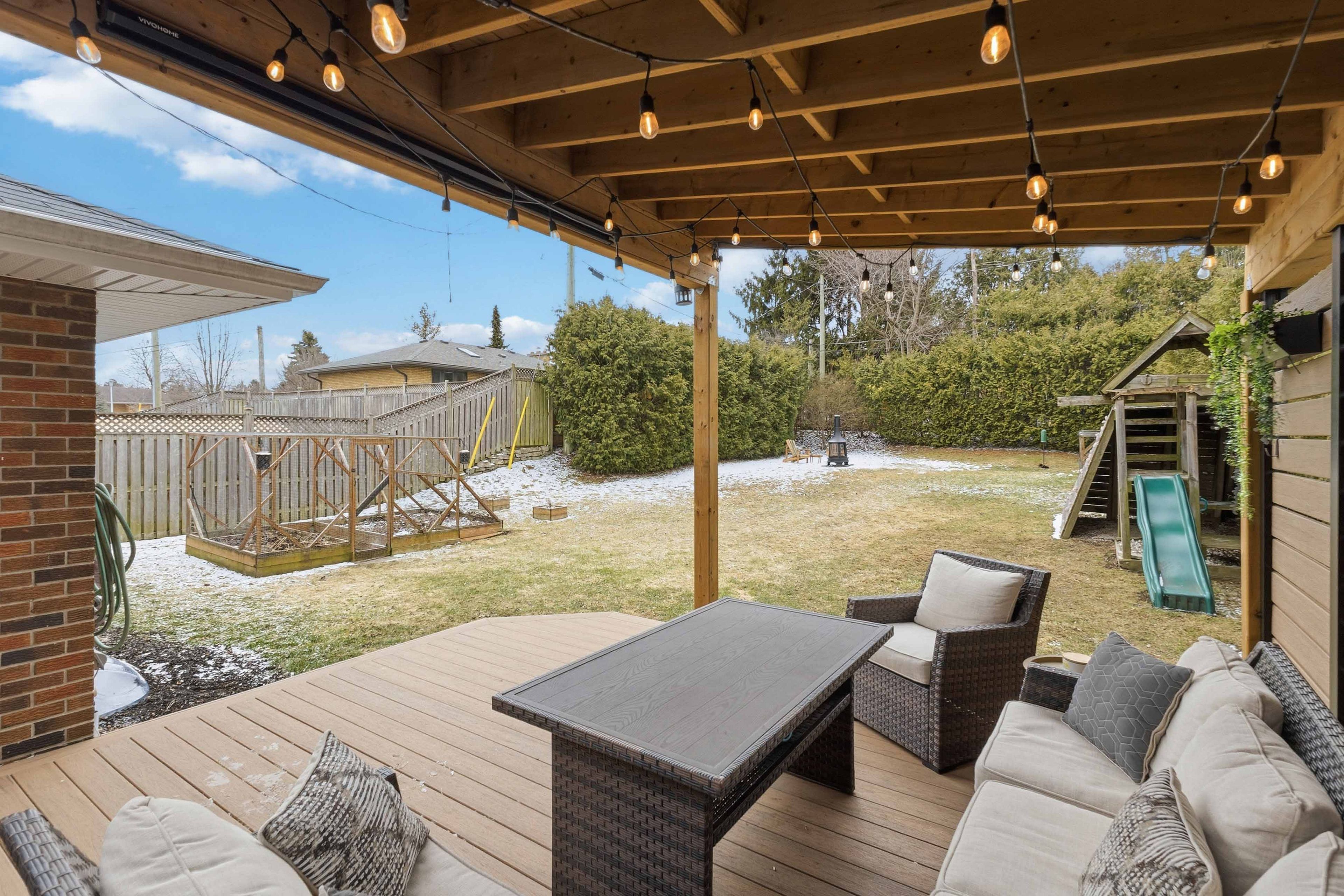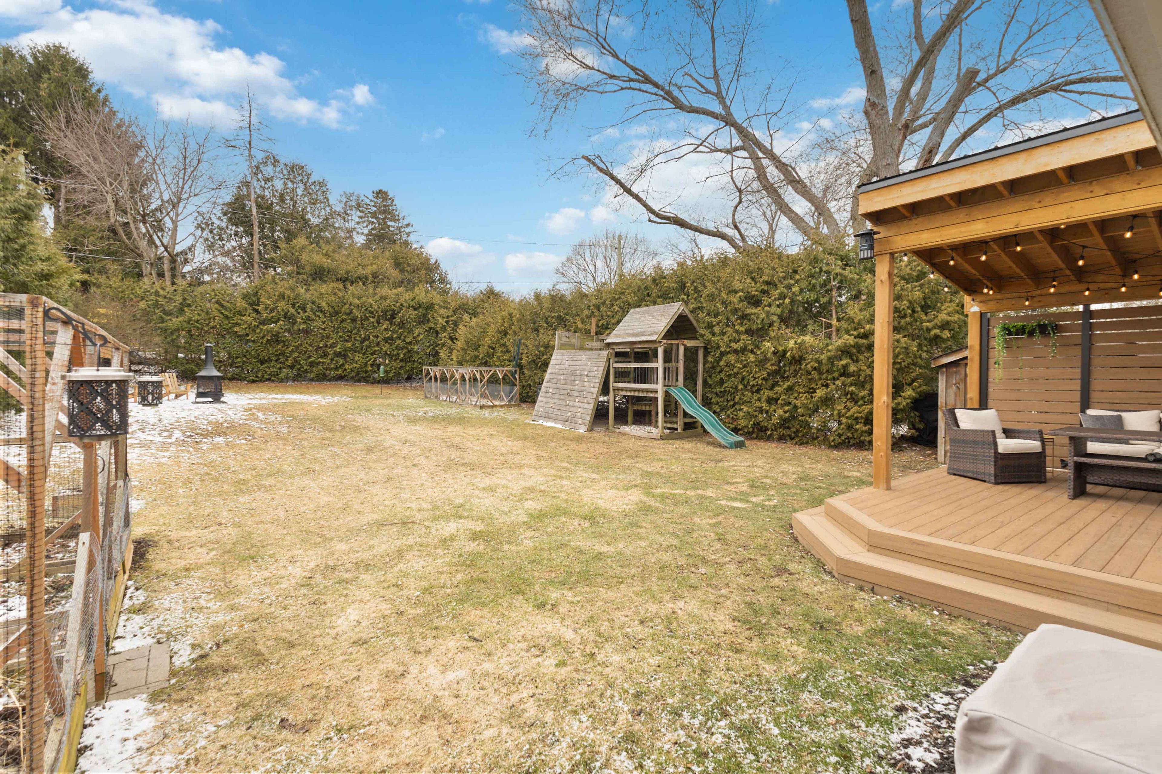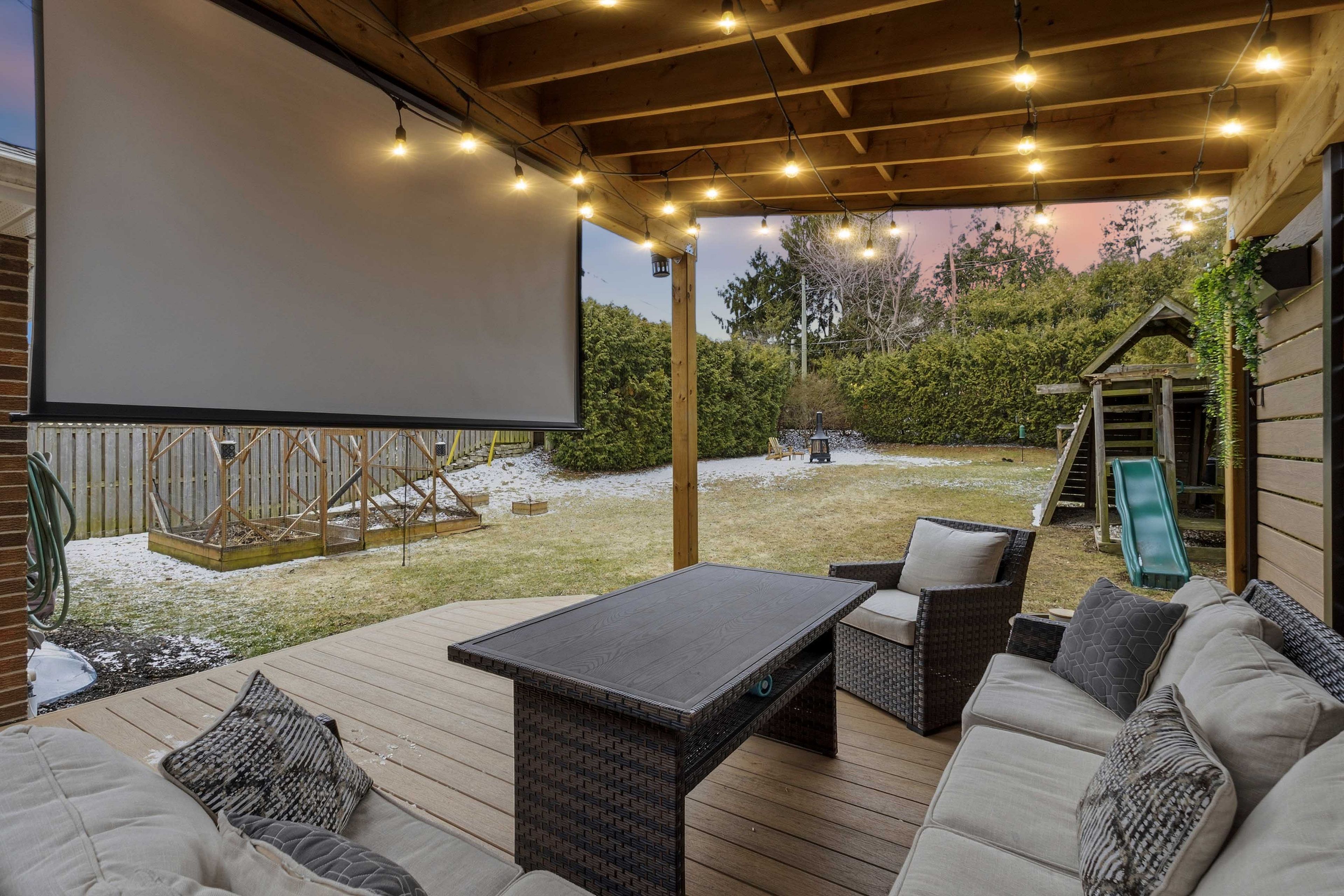 • Private backyard oasis with a large deck and hidden theatre screen.