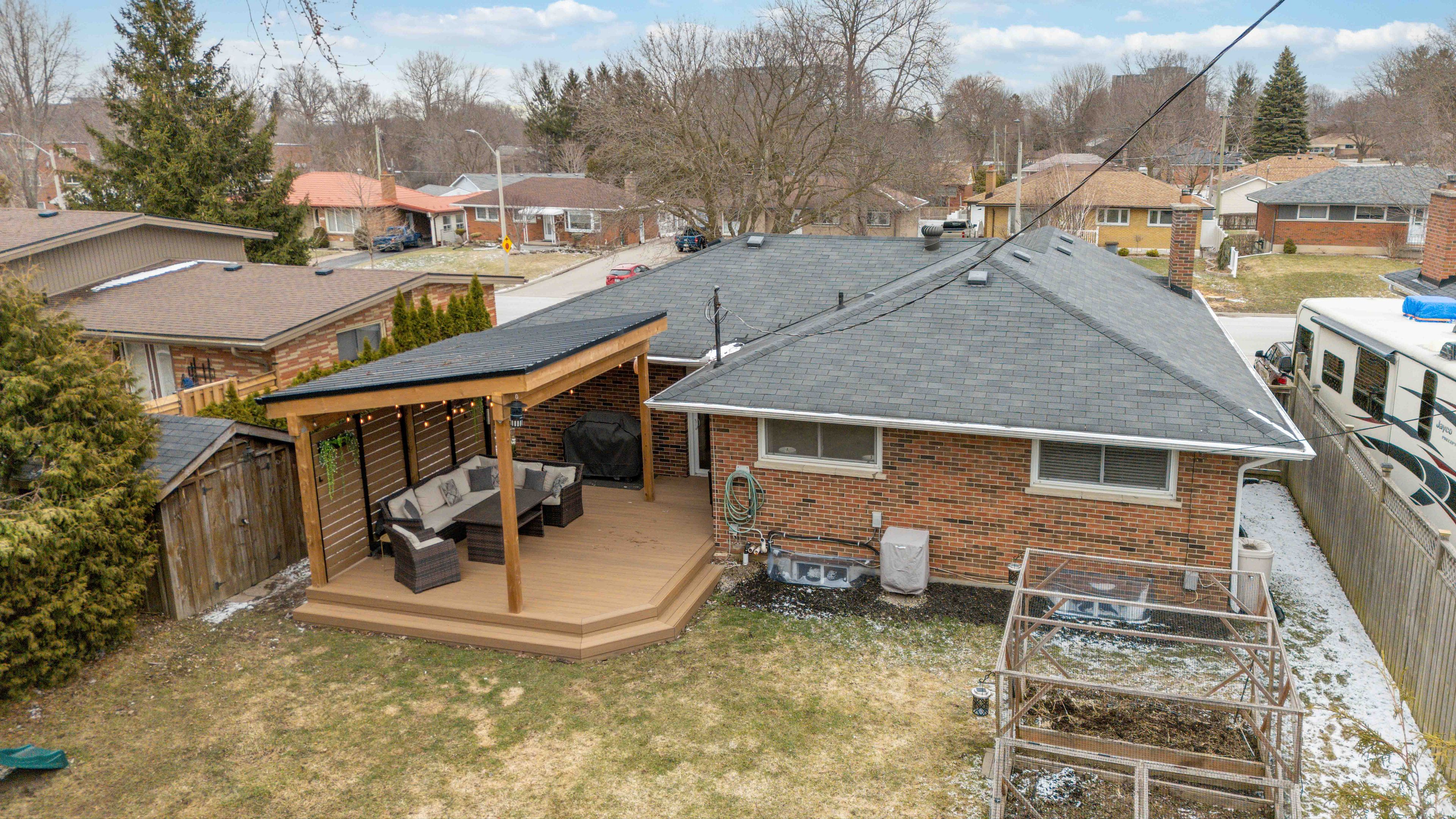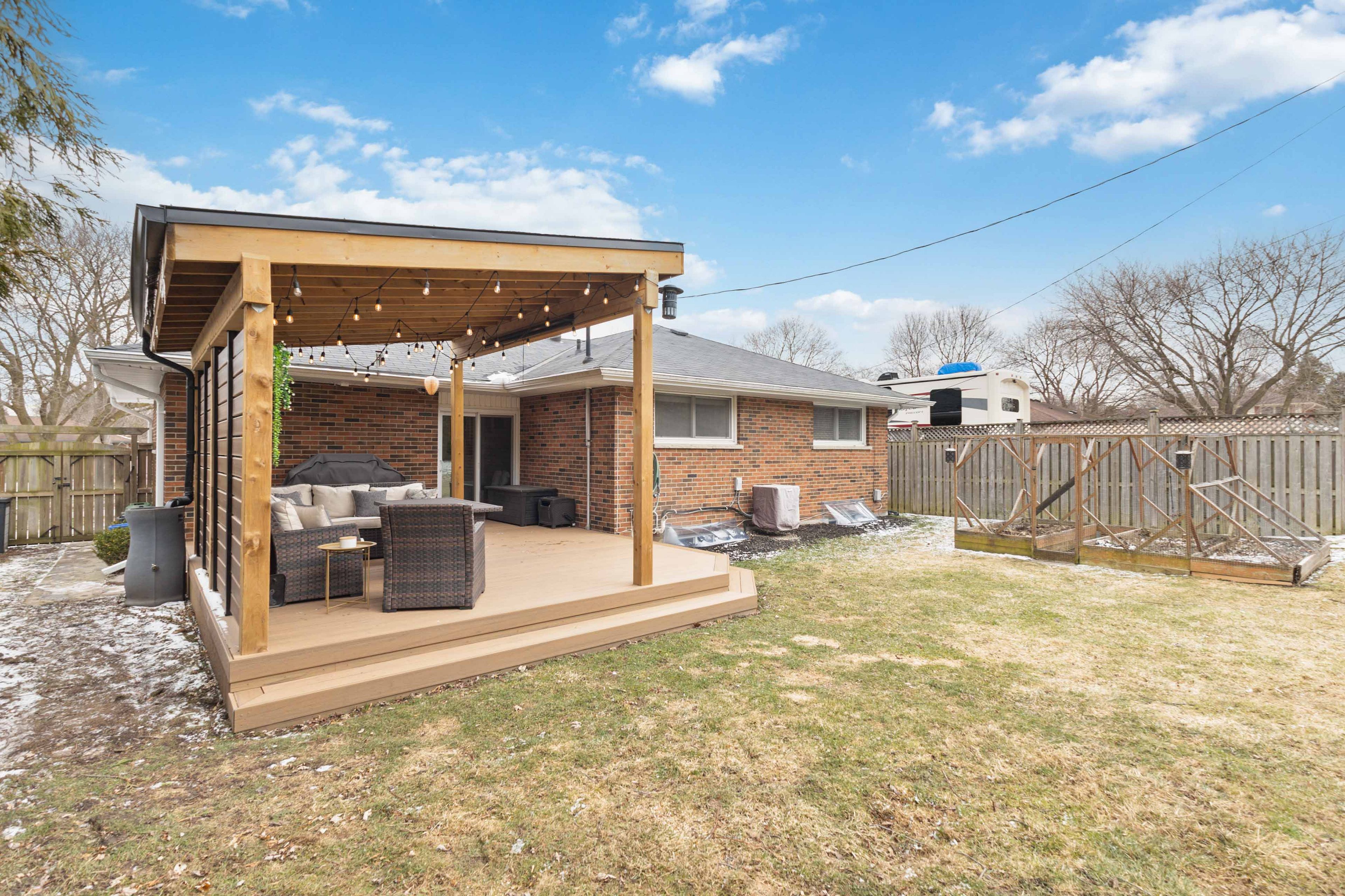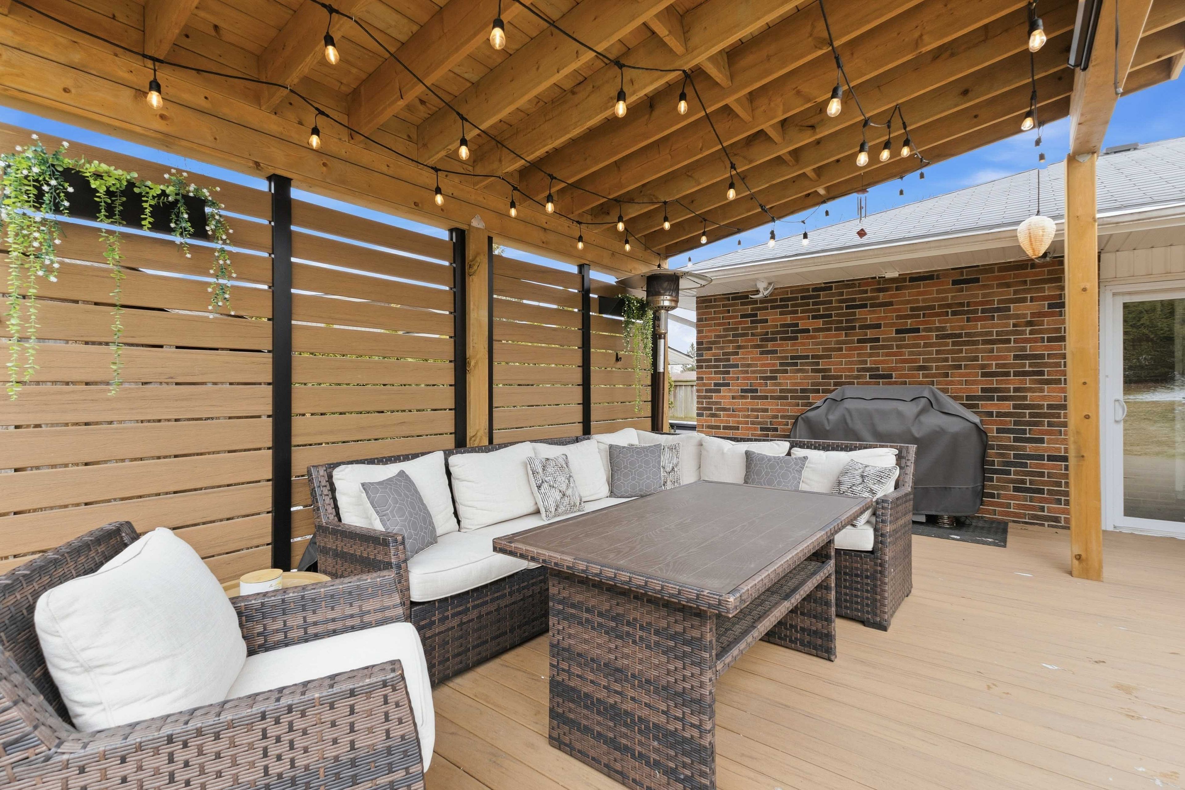 • Private backyard oasis with a large deck and hidden theatre screen.