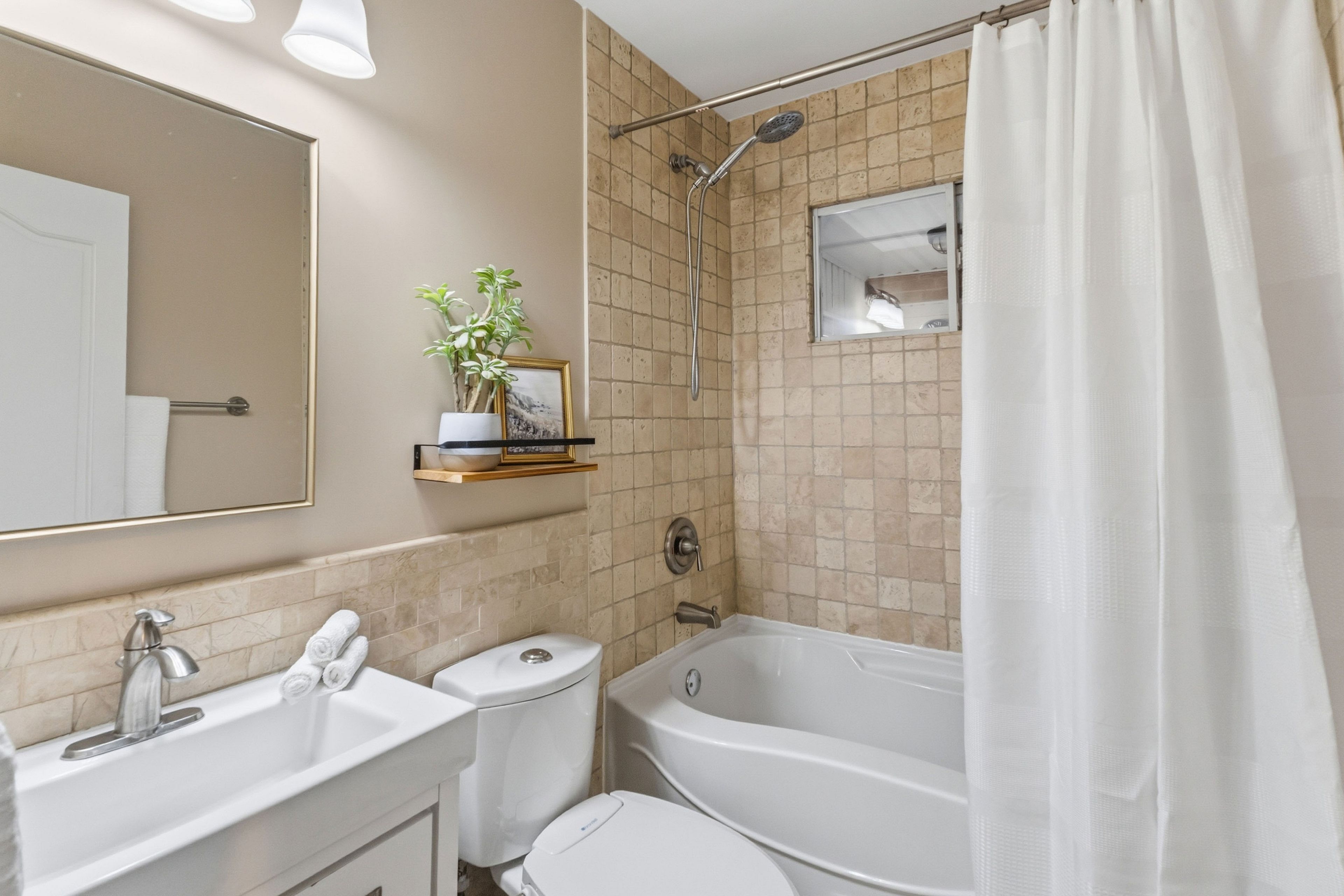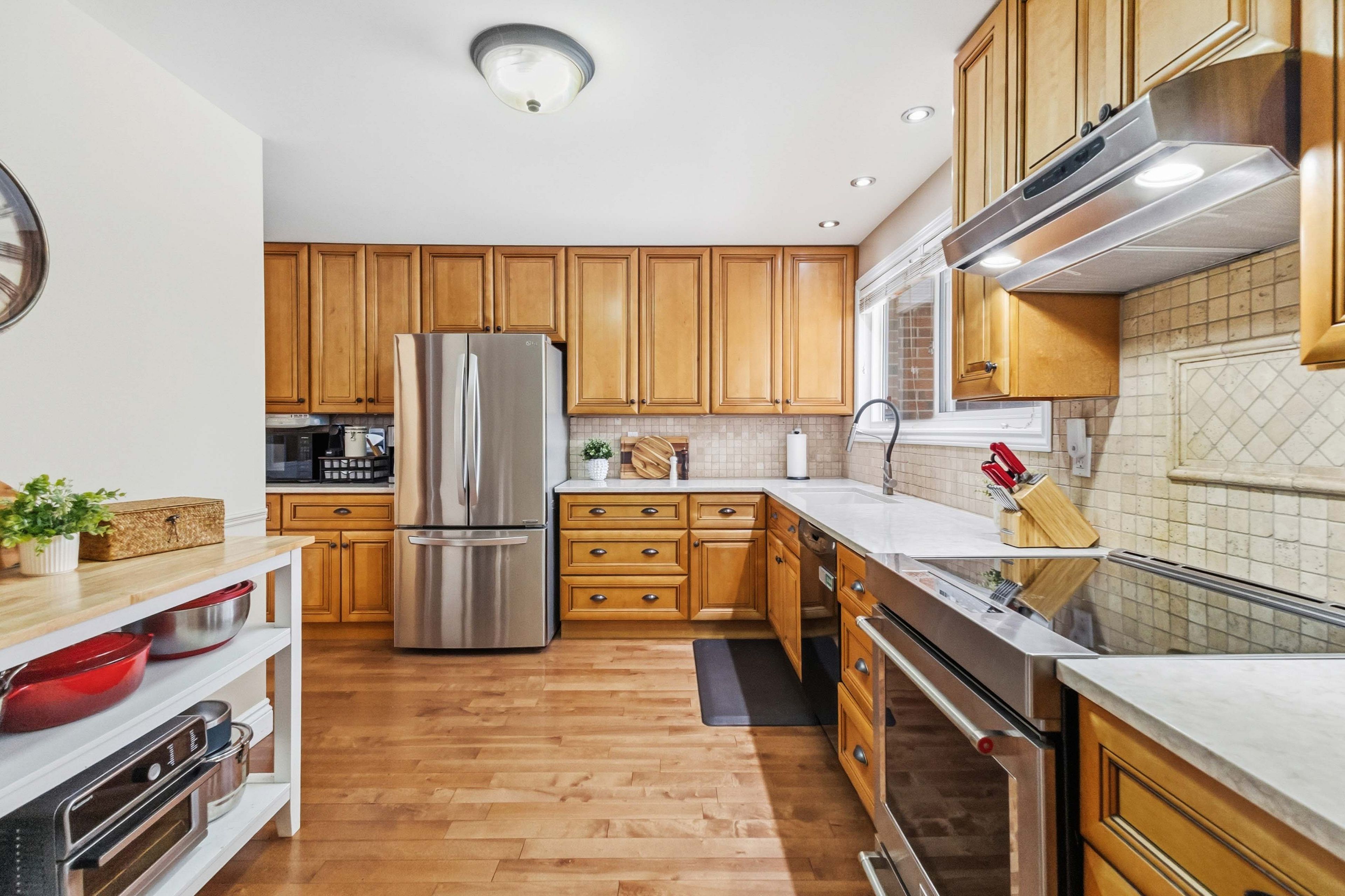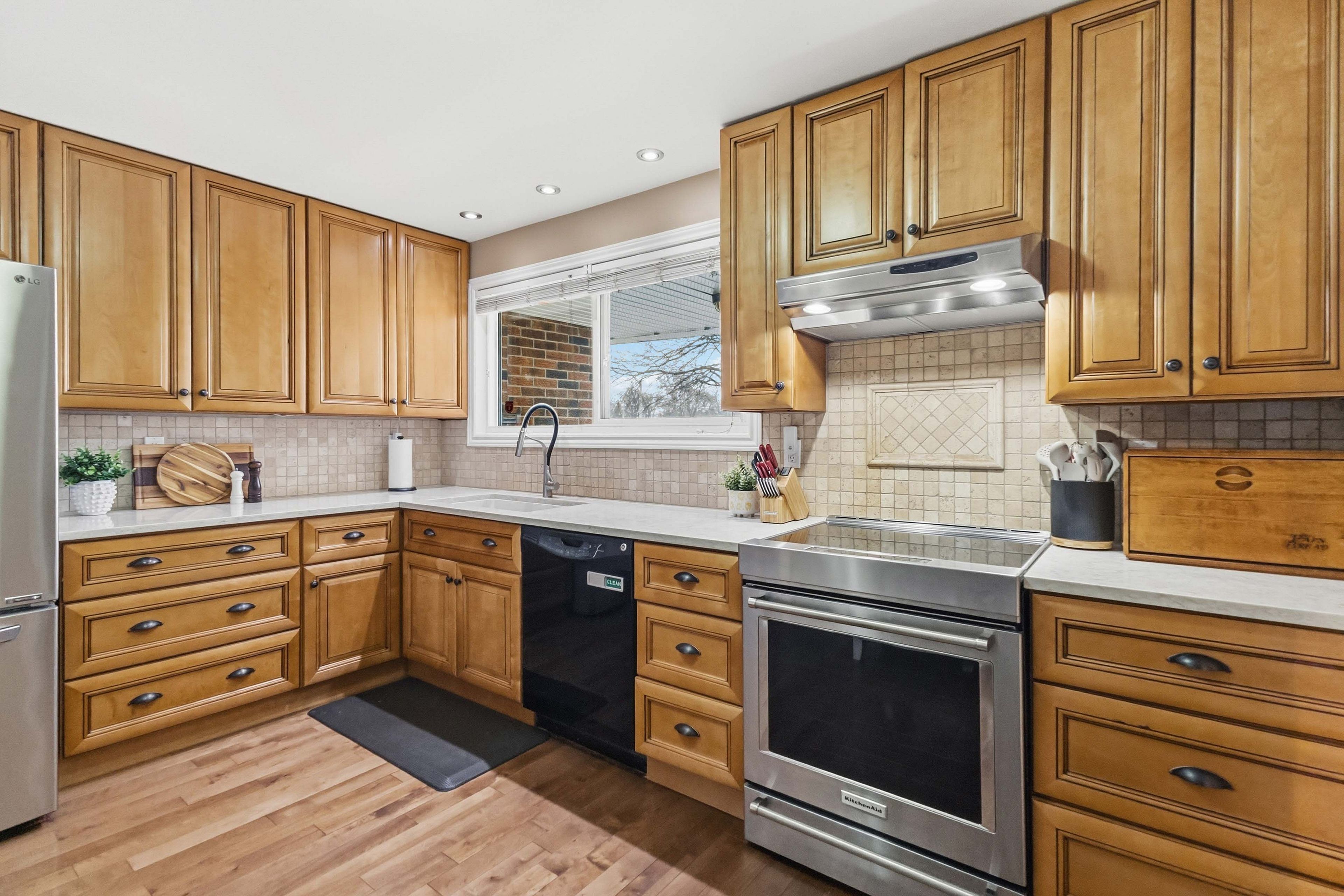 • Updated kitchen featuring quartz countertops and under-mount sink for family meals.
