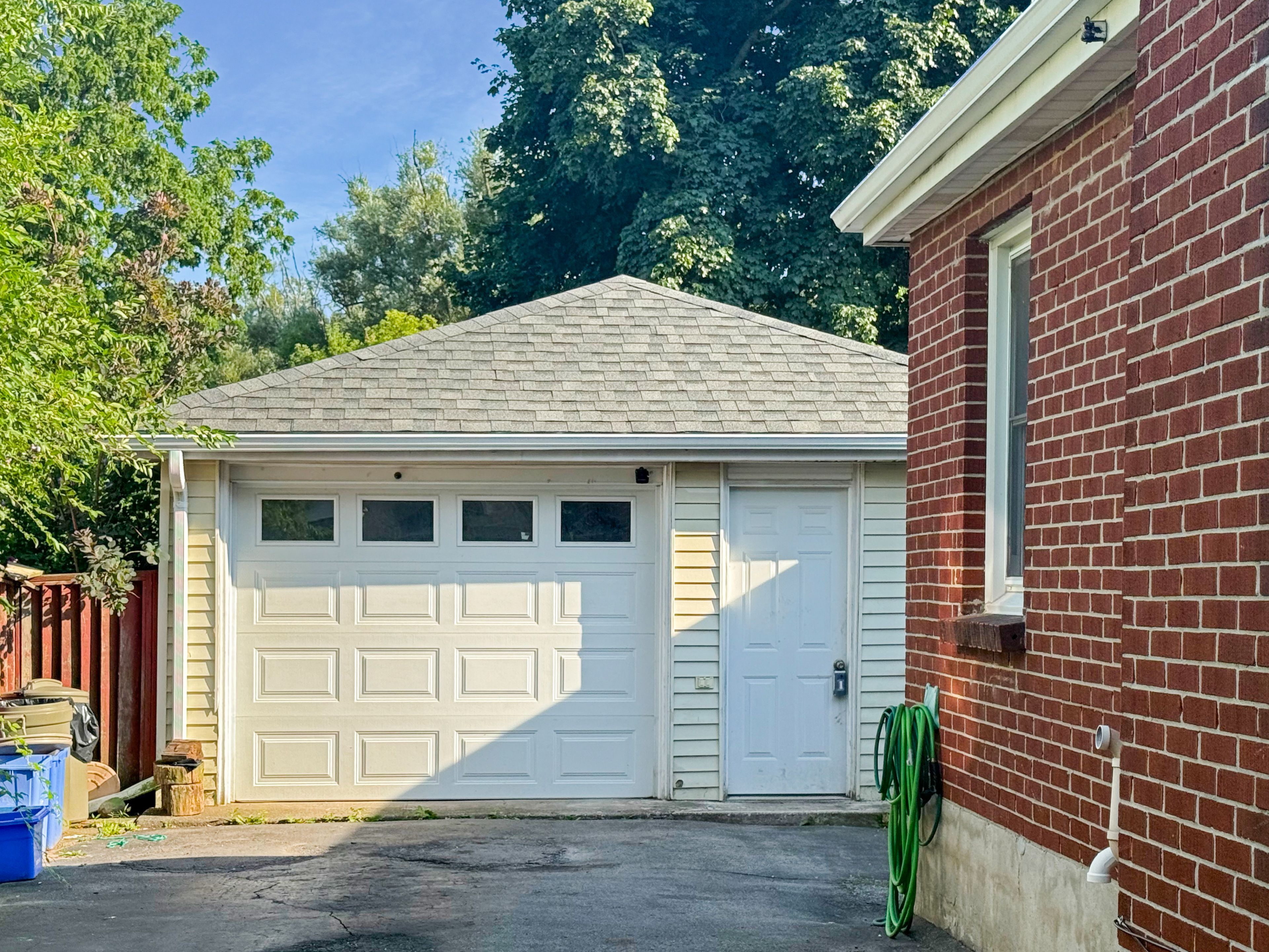 • Oversized garage with workshop, massive driveway for parking six cars.