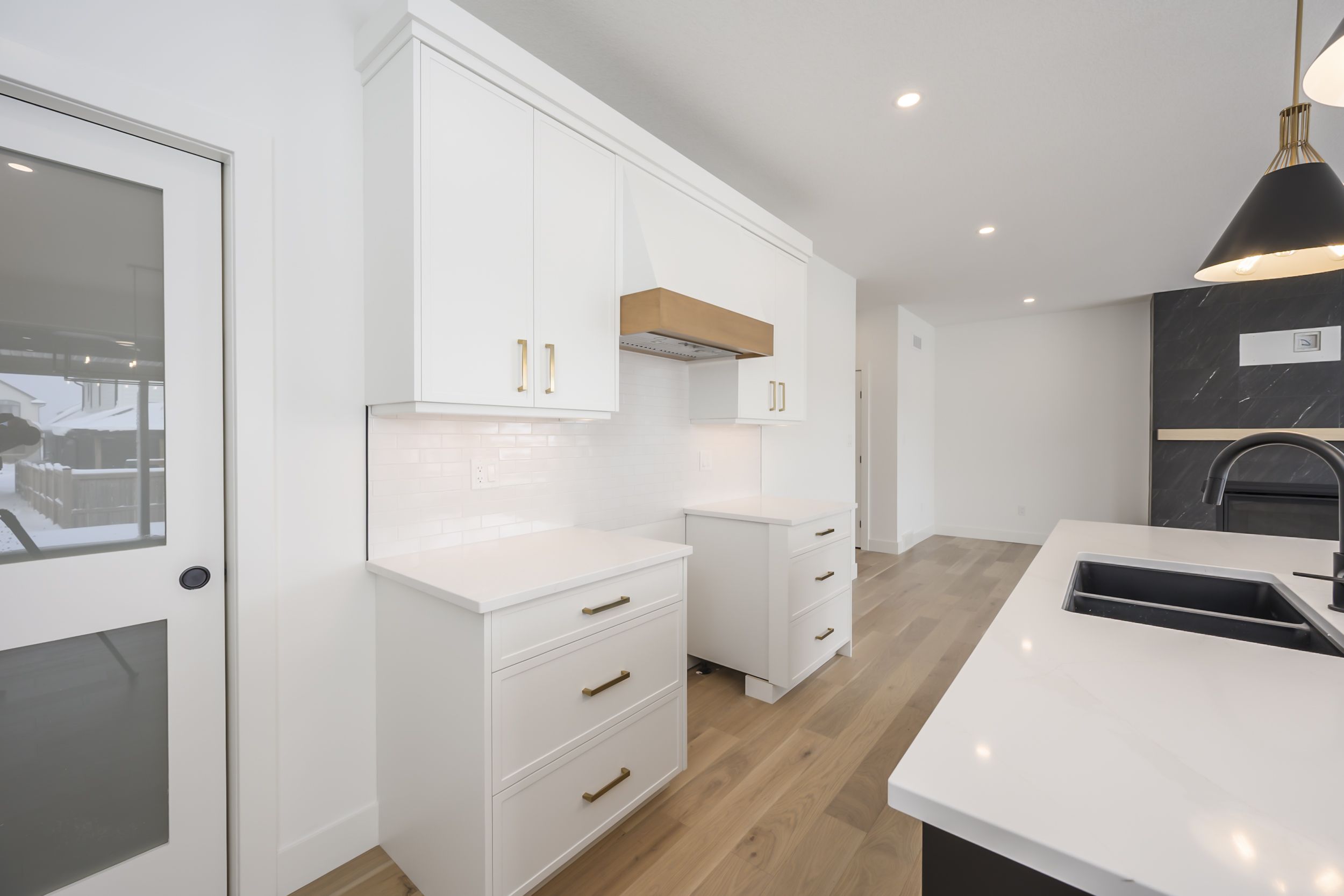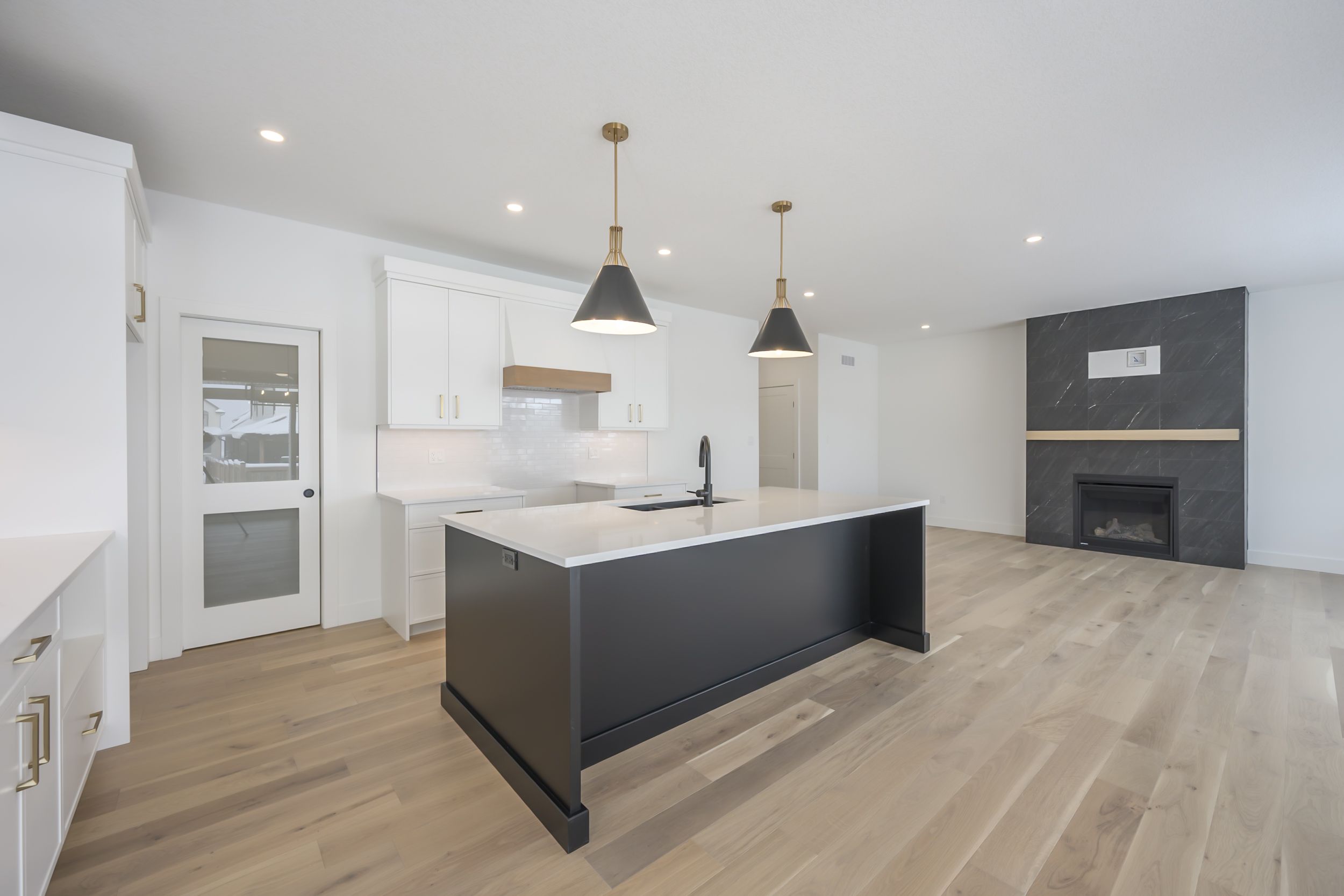 • Thoughtful kitchen layout with custom cabinetry and oversized island.