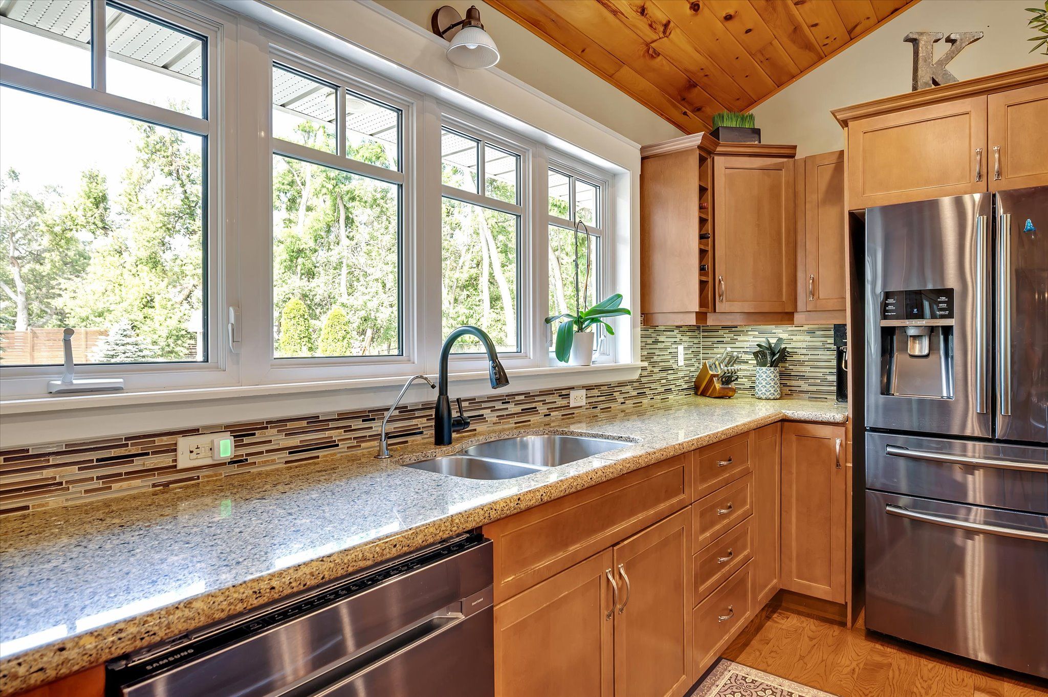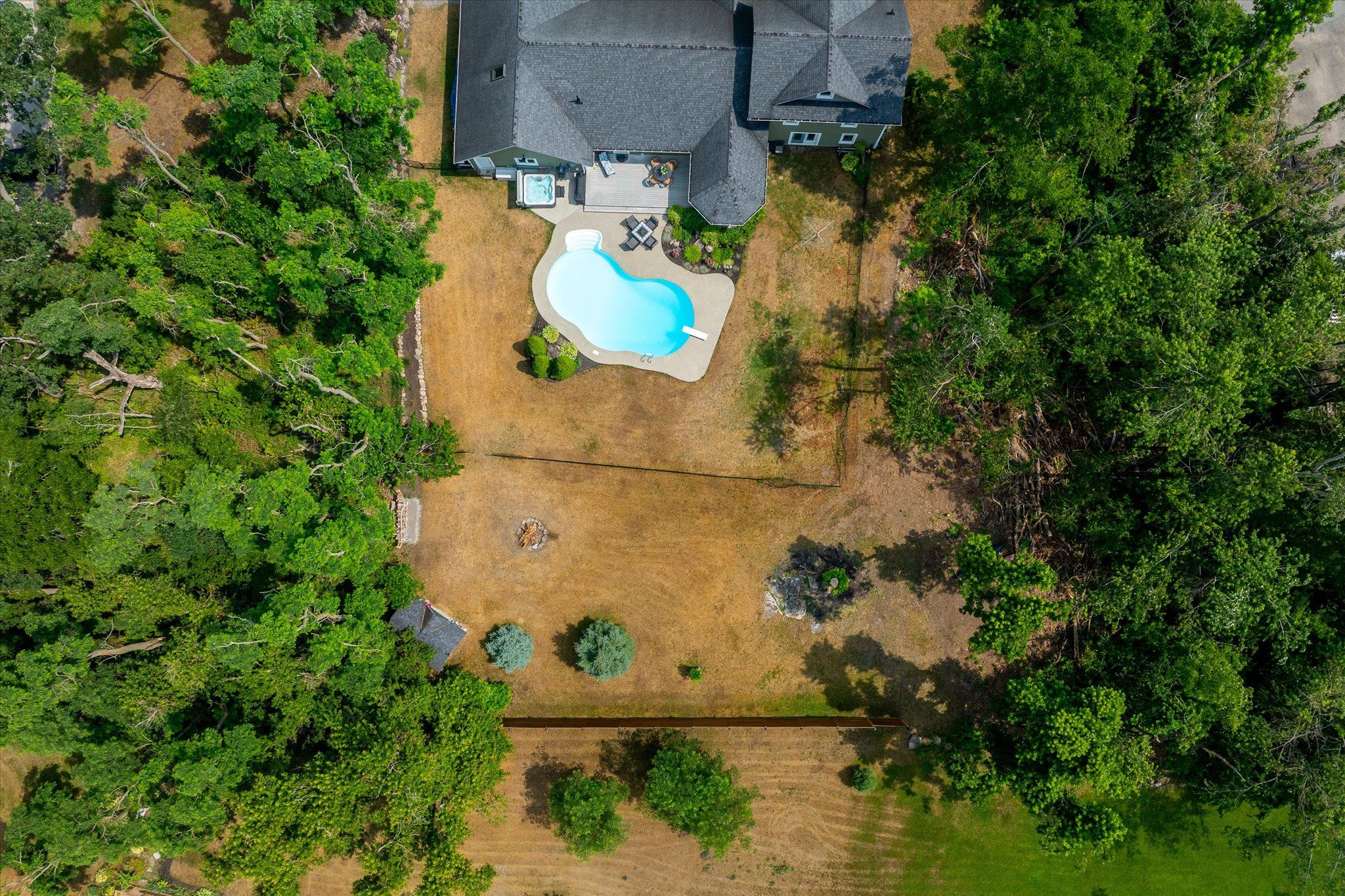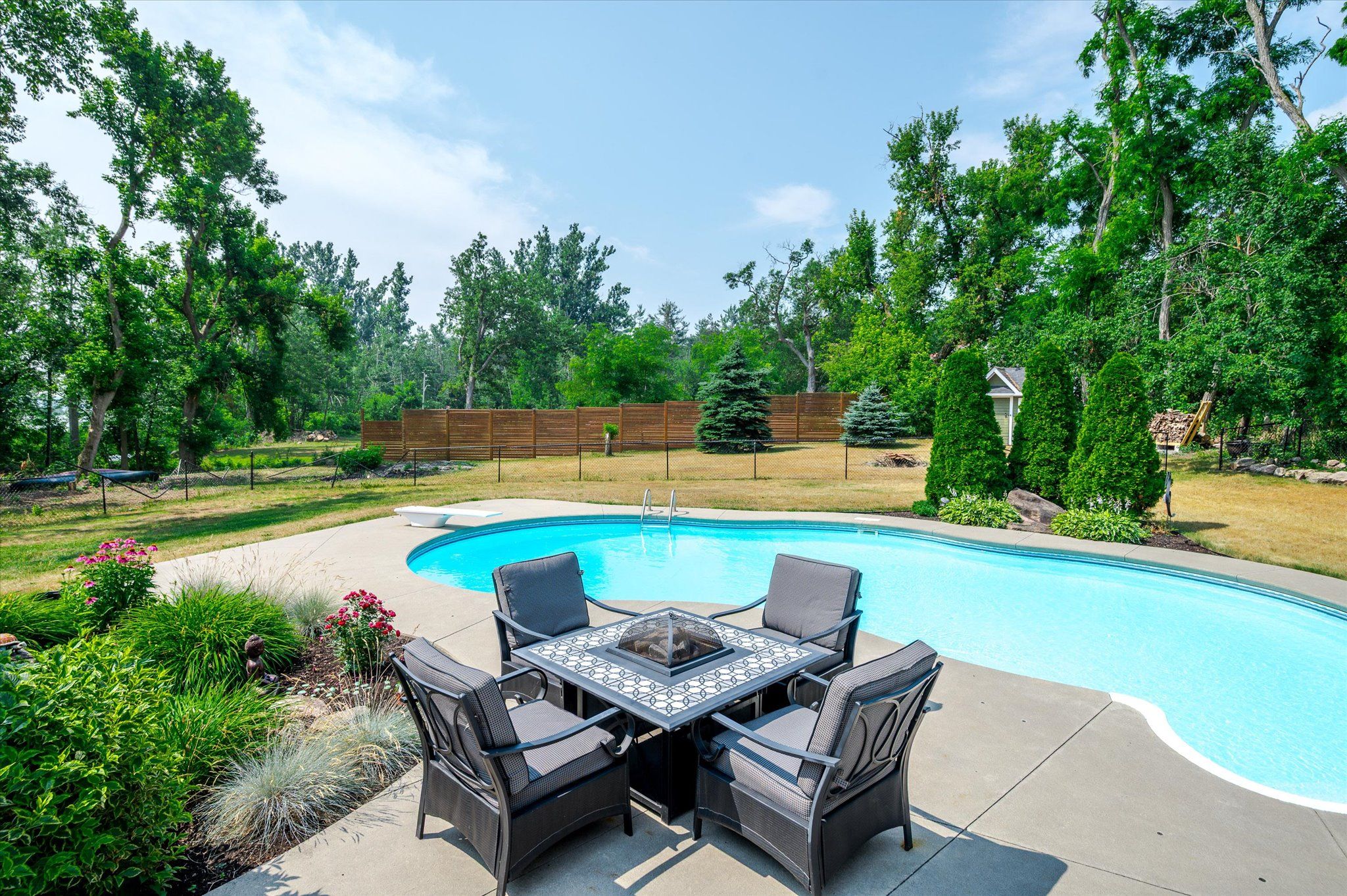 • Private backyard oasis with a heated in-ground pool and Trex decking.