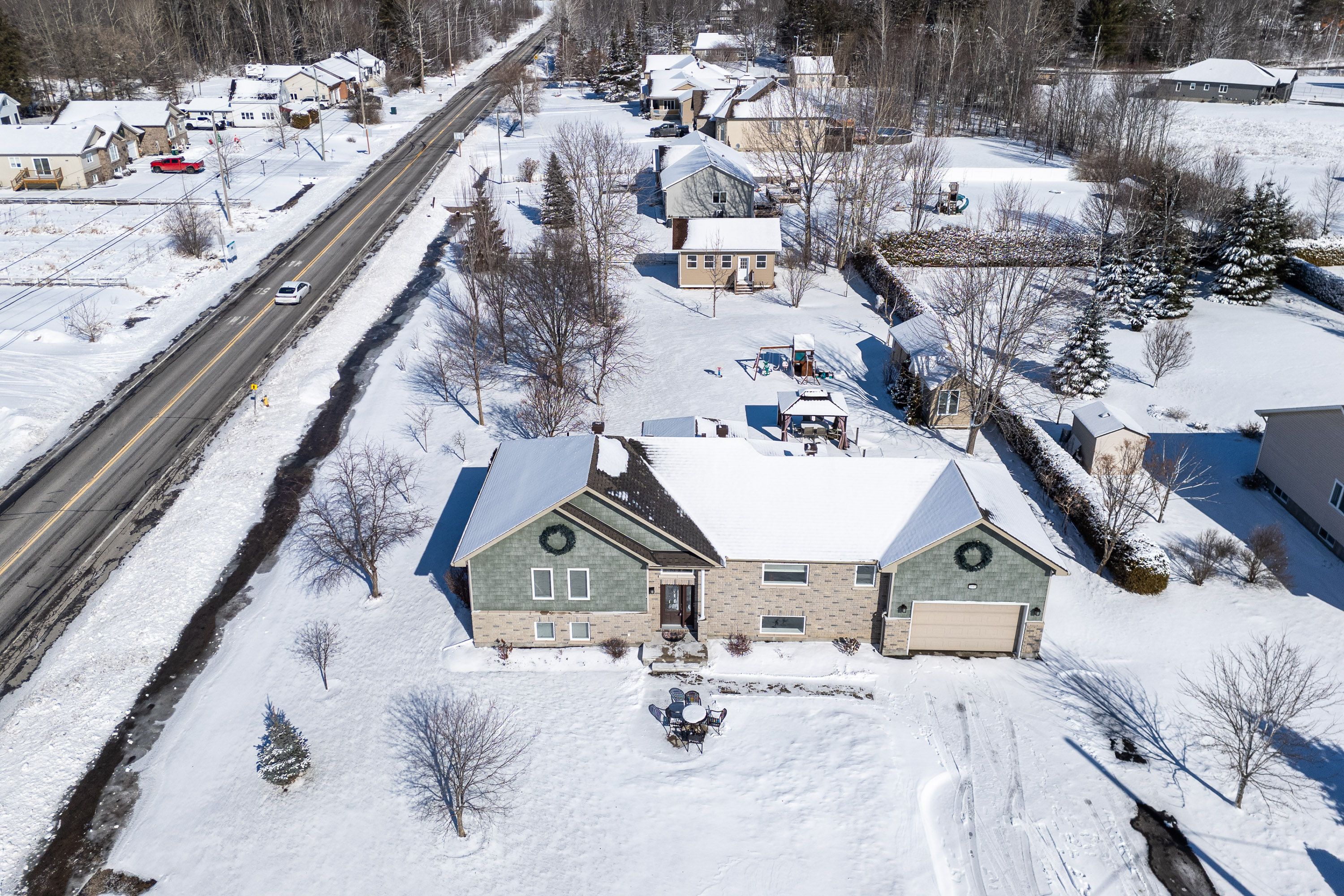 Welcome to this beautifully maintained custom raised bungalow in a highly desirable neighbourhood, set on an expansive, nearly 1-acre lot with municipal water and septic services. Offering 6 bedrooms and 3 bathrooms, this home is ideally situated with quick access to highway 417. This thoughtfully designed home offers a bright and inviting main level featuring flat ceilings and rich oak hardwood flooring throughout. The well-appointed kitchen is designed for both function and style, complete with ample cabinetry and a large island. The living room offers a warm atmosphere with a natural gas fireplace. Three bedrooms are located on this level, with one easily serving as a home office or den. The fully finished lower level presents a complete in-law suite with excellent versatility, offering a full kitchen, three bedrooms, a full bathroom, 9-foot ceilings, radiant floor heating, and a dedicated home theatre space-perfect for multi-generational living or short term rental income. Outdoors, the property truly shines with a new deck, a new interlock front patio/walkway (2023), and side walkway (2024), and two fully serviced outbuildings: an 8' x 12' hobby shed and an 18' x 26' workshop, both serviced by a heat pump with electrical done in 2018. A natural gas bbq hookup adds convenience for outdoor entertaining. Additional highlights include freshly painted (2022), a new roof (2024), furnace and a/c (2021), and heat pump (2021). The home is also equipped with 200 amp electrical service. Whether you're seeking a fully equipped workshop for your business, an investment opportunity with airbnb potential, or a home suited for multi-generational living, this property offers it all-book your private showing today!