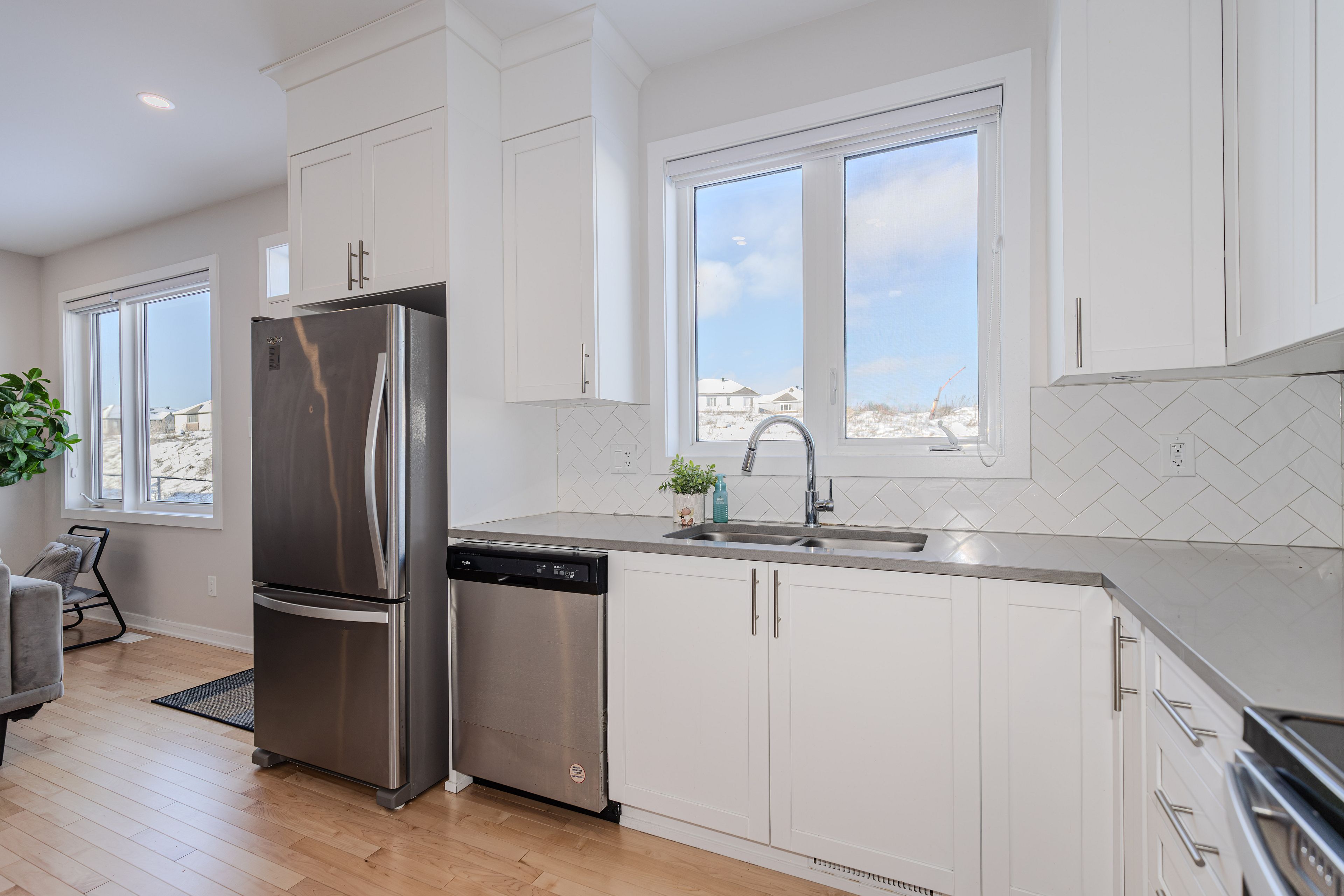 3. 5 years old home | 3 bedrooms | 2. 5 bathrooms | finished basement | 1 attached garage - this is the one! Beautiful south-facing home filled with abundant natural light through expansive windows. The main floor features 9-ft ceilings, elegant hardwood flooring throughout, and thoughtfully designed separate dining and living areas. The stylish open-concept kitchen showcases upgraded finishes, a large quartz countertop, and ample cabinetry, creating a perfect space for both daily living and entertaining. The second level offers three generously sized bedrooms and two full bathrooms, providing comfort and functionality for family living. The finished open-concept basement adds valuable living space - ideal for a home gym, movie theatre, office, or recreation area. Laundry is conveniently located in the basement for quiet and practical use. Enjoy the convenience of a newly completed shopping plaza within walking distance, including food basics, and only 10 minutes to hwy 416 for an easy commute. Close to new schools, parks, and everyday amenities, this home is situated in a welcoming, family-friendly neighbourhood. A wonderful opportunity to own a modern, move-in-ready home in a growing community.