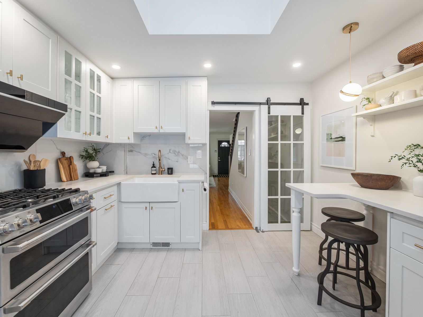 Welcome to 189a booth avenue, a beautifully renovated home in the heart of prime leslieville. This residence blends warmth, functionality, and curated designer features throughout. The main floor features rich hardwood floors, large picture windows that flood the space with natural light, and custom built-ins that add both character and practicality. The layout flows seamlessly, offering comfortable living and dining areas ideal for everyday living and effortless entertaining. The renovated kitchen is a true standout, complete with custom cabinetry, stainless steel appliances, quartz countertops, skylights, and a walk-out to the private garden - perfect for summer evenings and relaxed weekends at home. Upstairs, you'll find two well-proportioned bedrooms, including a serene primary retreat with custom closets and built-ins, complemented by a beautifully renovated main bathroom. The fully finished lower level offers exceptional versatility, featuring a stunning bathroom and flexible living space ideal for guests, a media room, or a home office. A rare bonus in leslieville, this property offers two-car parking, with one space in the detached garage and a second space located in front of the garage. With an exceptional 98 walk score, you are just steps from the vibrant energy of queen street east - home to some of the city's best cafés, restaurants, boutiques, and everyday conveniences. Jimmie simpson park feels like an extension of your backyard, offering tennis courts, a swimming pool, a playground, a community centre, and expansive green space. Transit is effortless, with the 24/7 queen streetcar providing a direct route downtown or a quick 15-minute bike ride. Commuters will also appreciate easy access to both the don valley parkway and the gardiner expressway, with the future ontario line just steps away. A rare opportunity to own a turn-key home in one of toronto's most dynamic neighbourhoods.