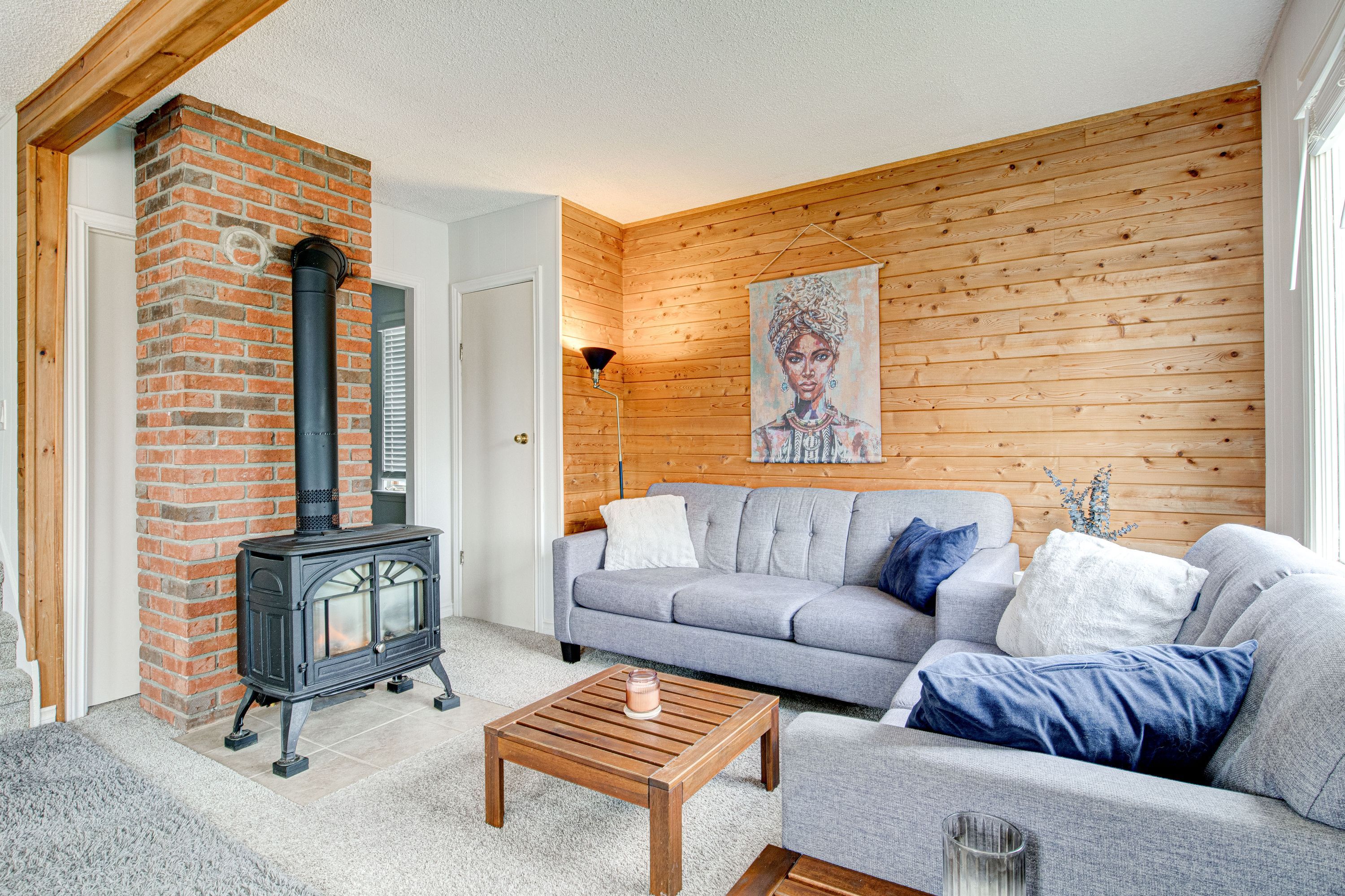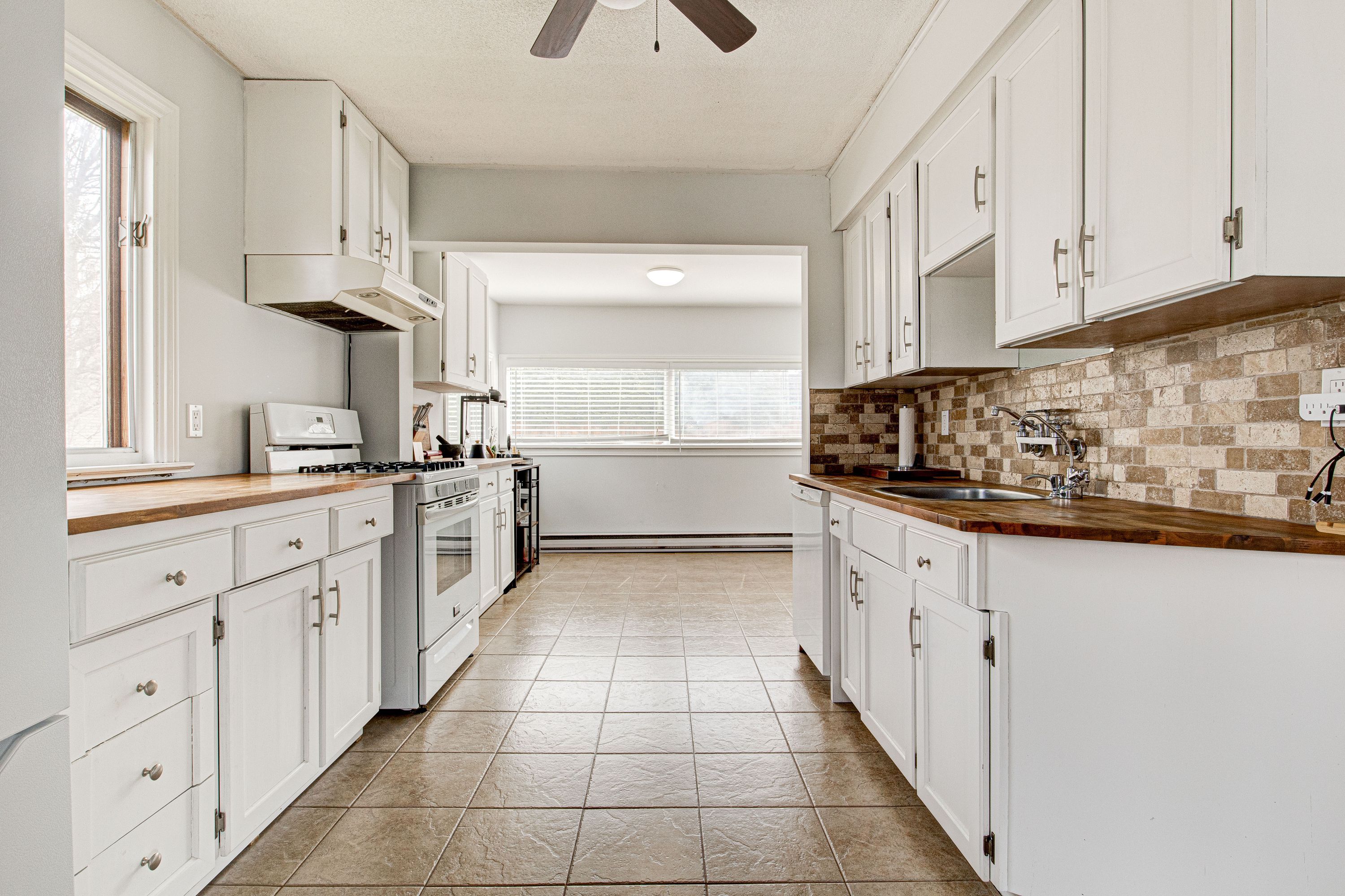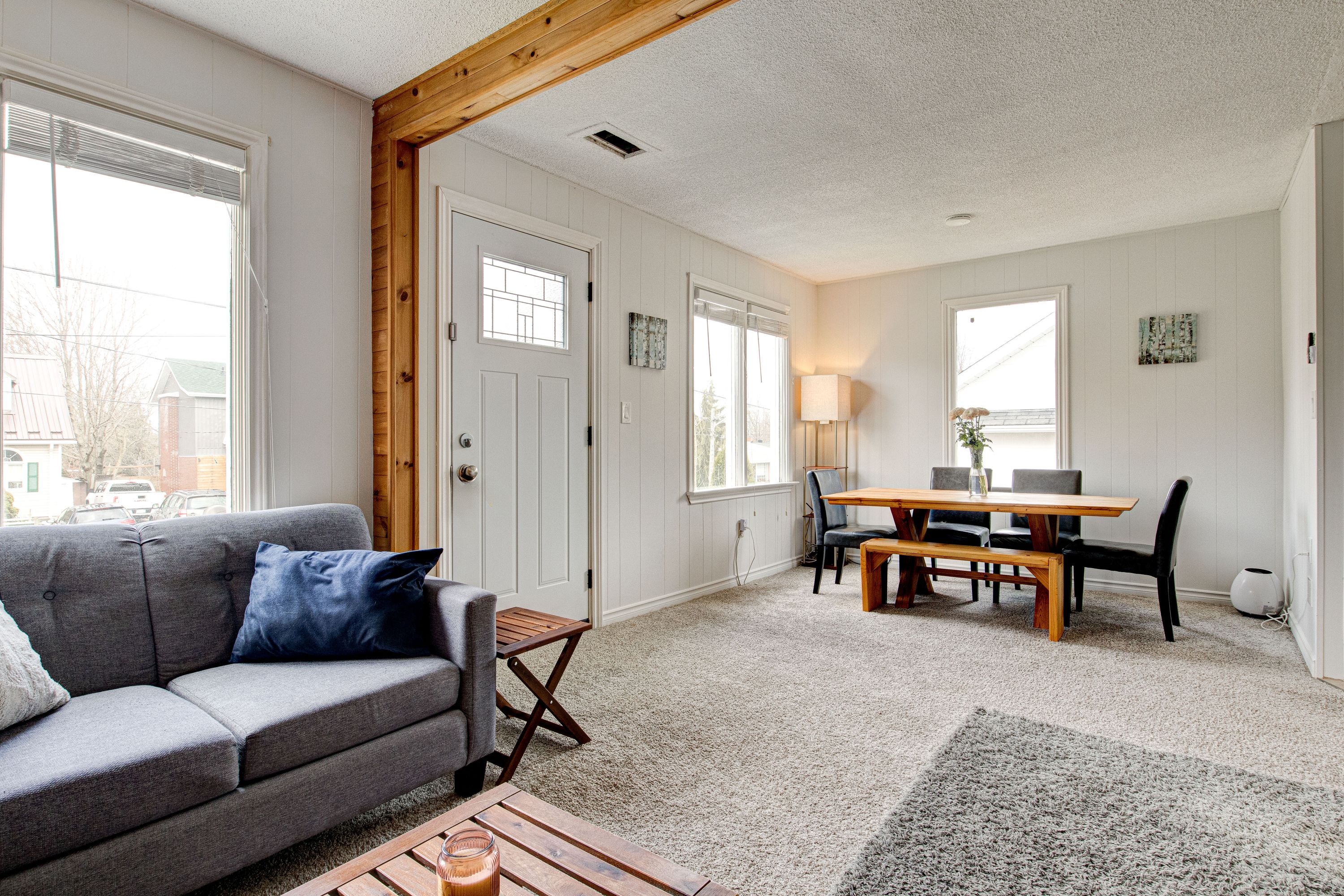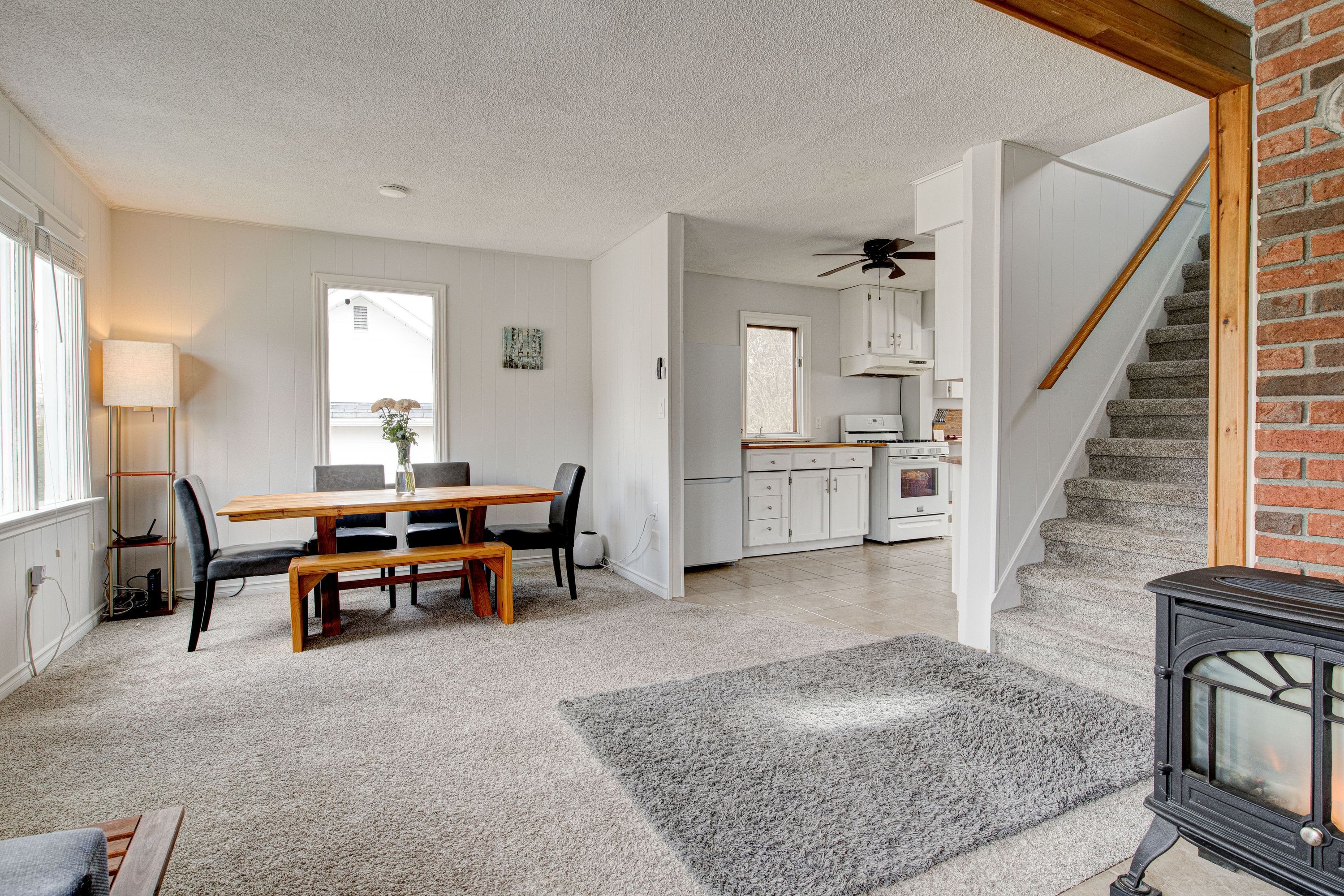 • Updated eat-in kitchen and cozy living space with gas fireplace.