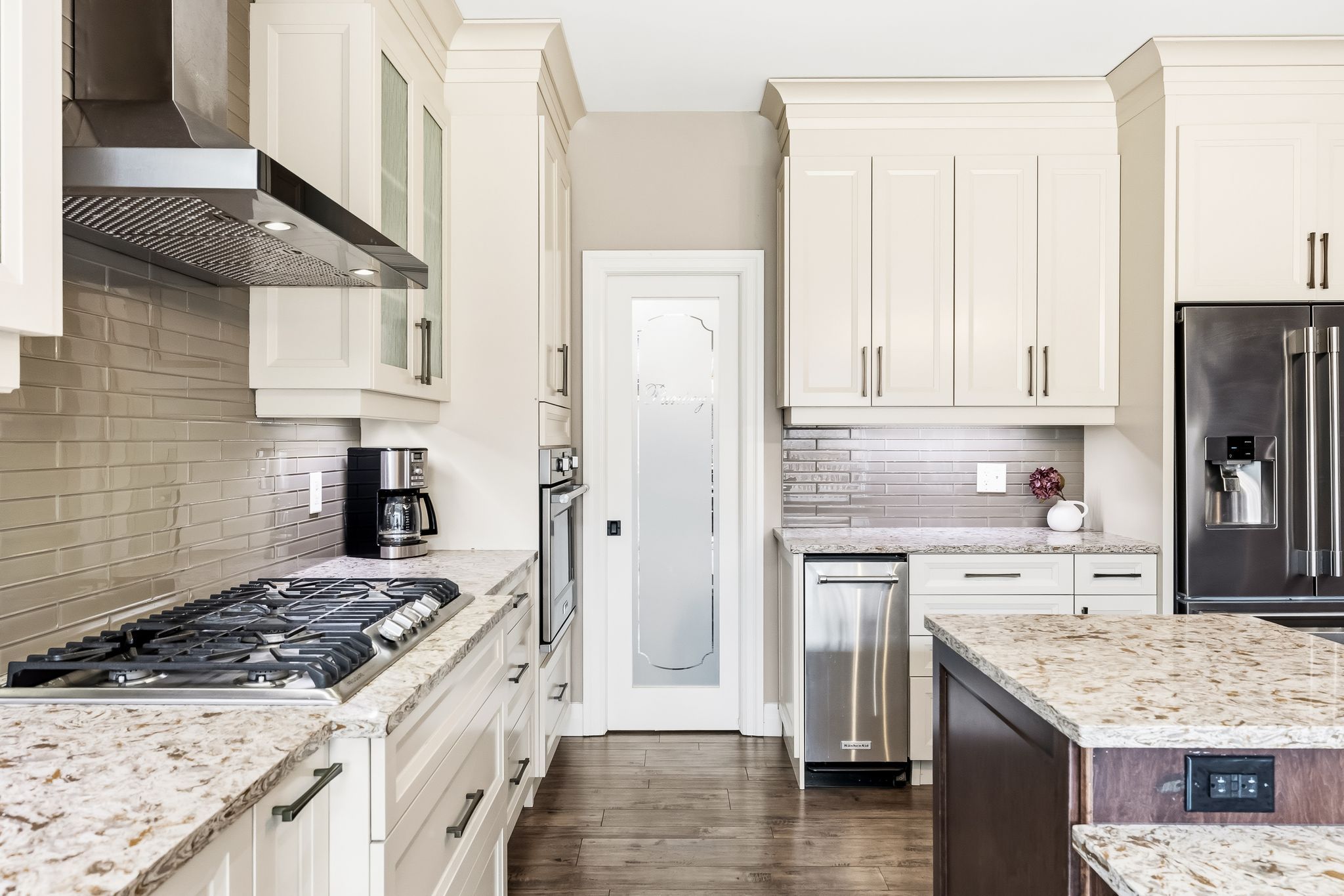• Stunning kitchen with granite countertops, island, and walk-in pantry.