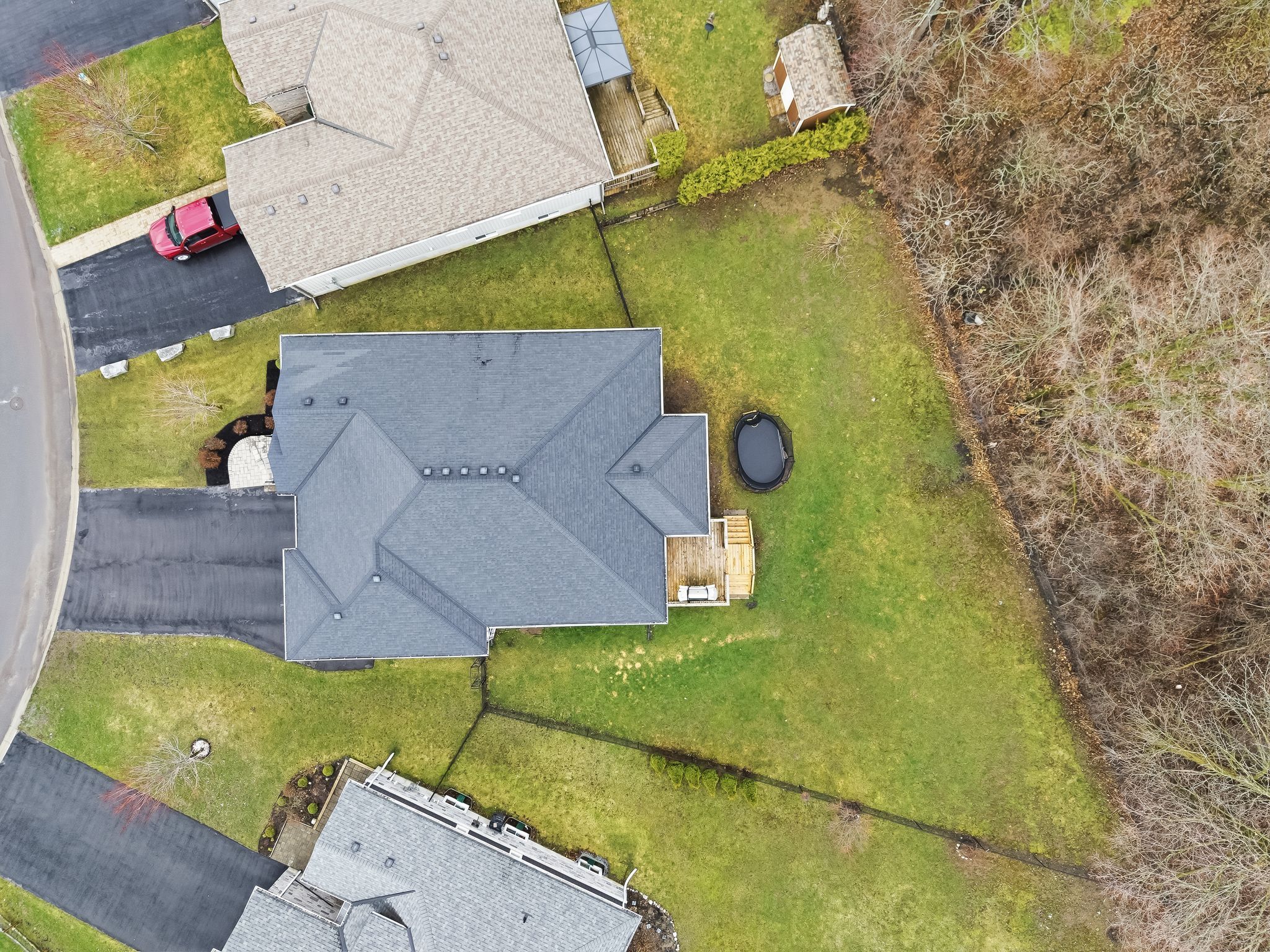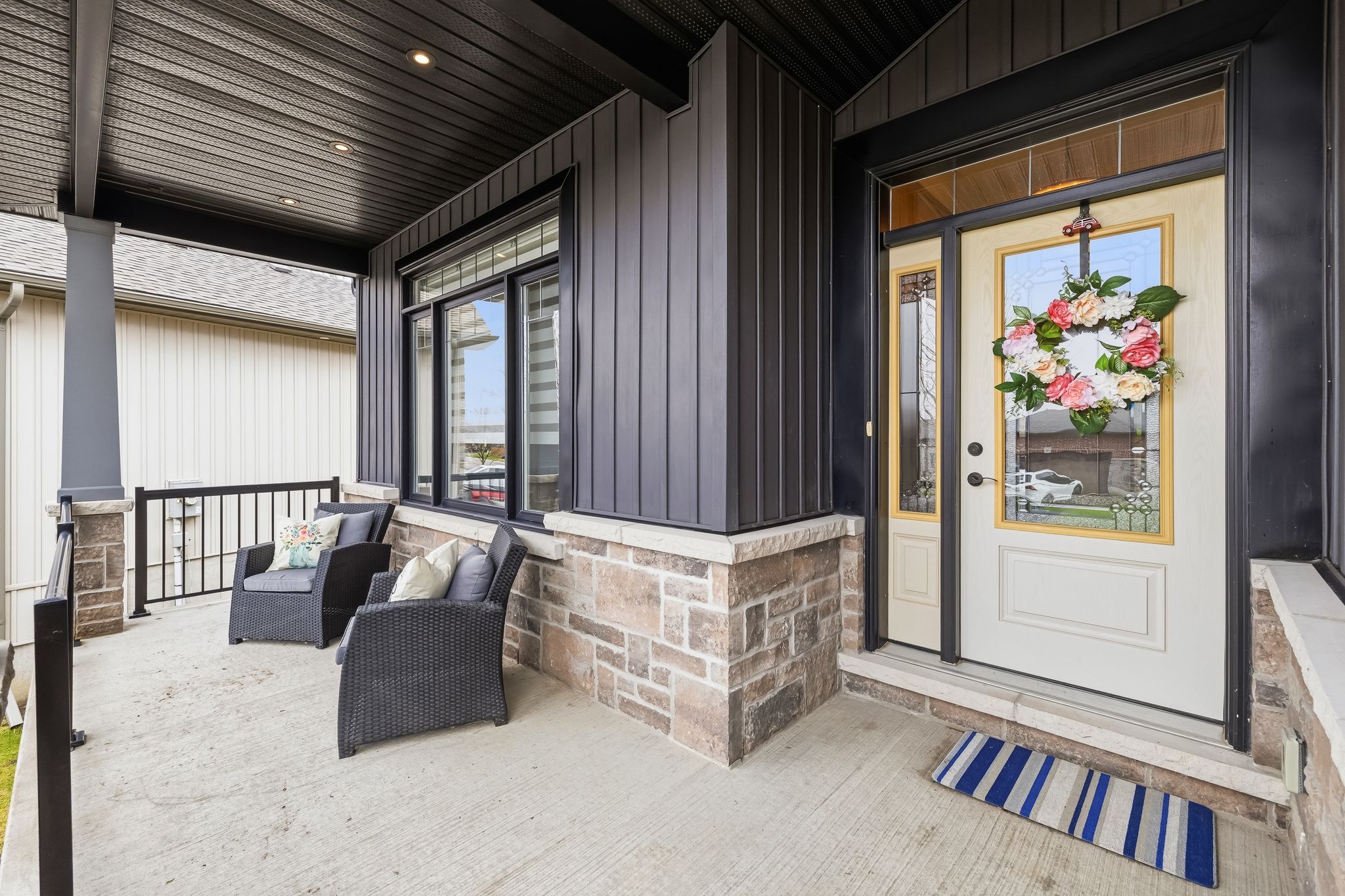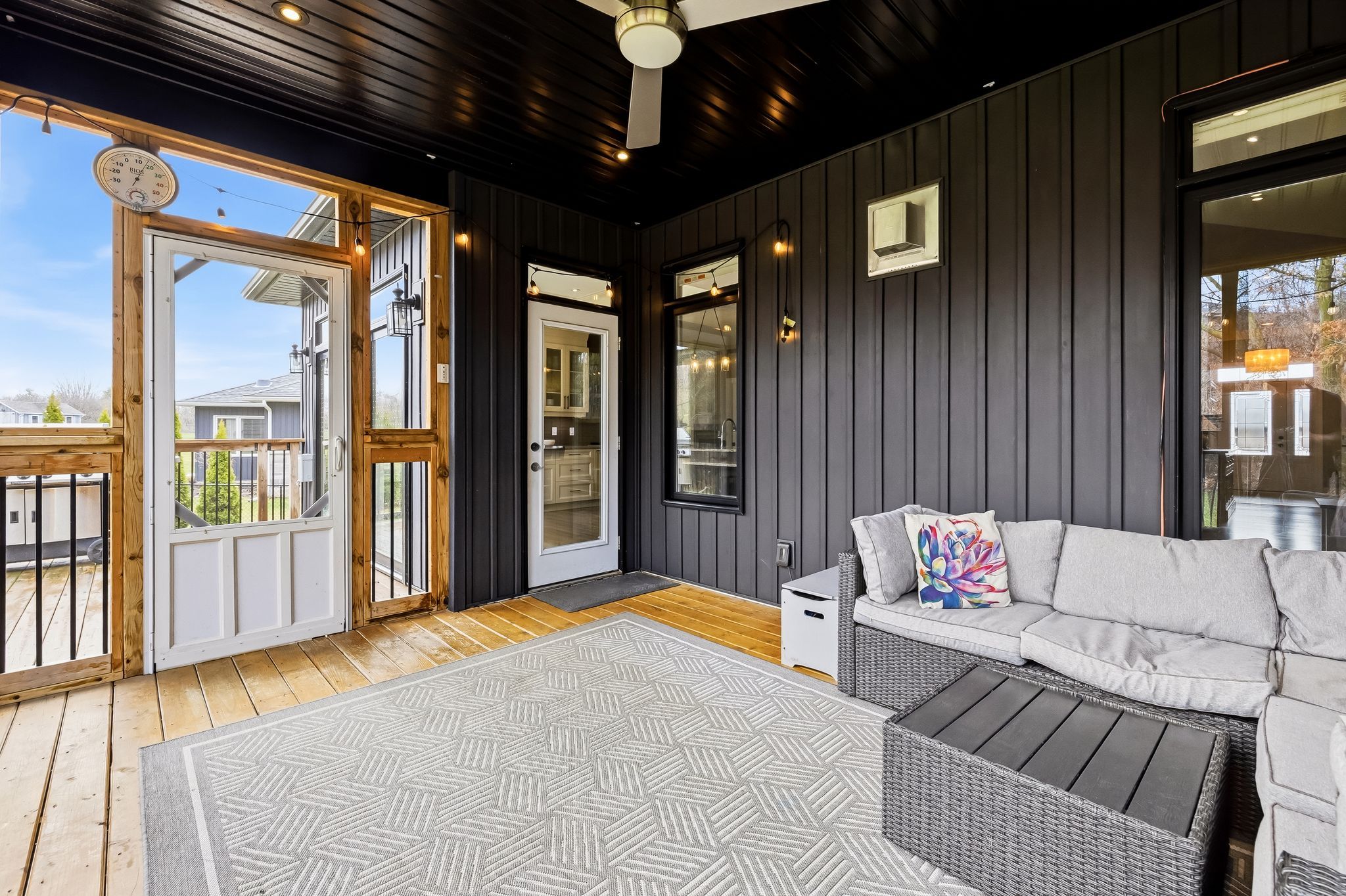 • Oversized covered deck overlooking a fenced yard with no rear neighbors.
