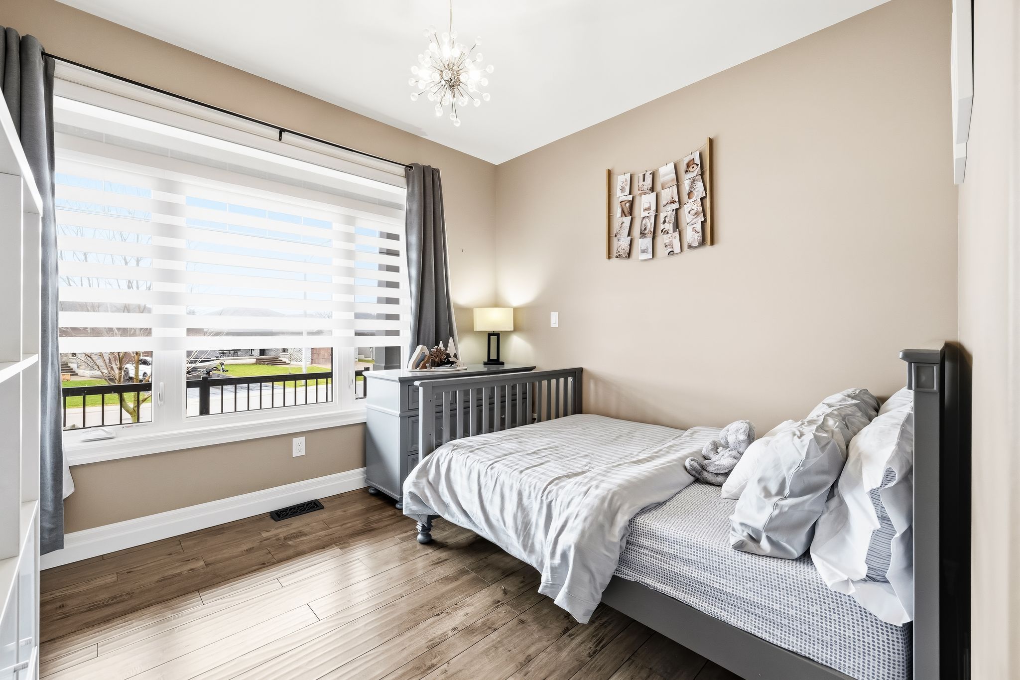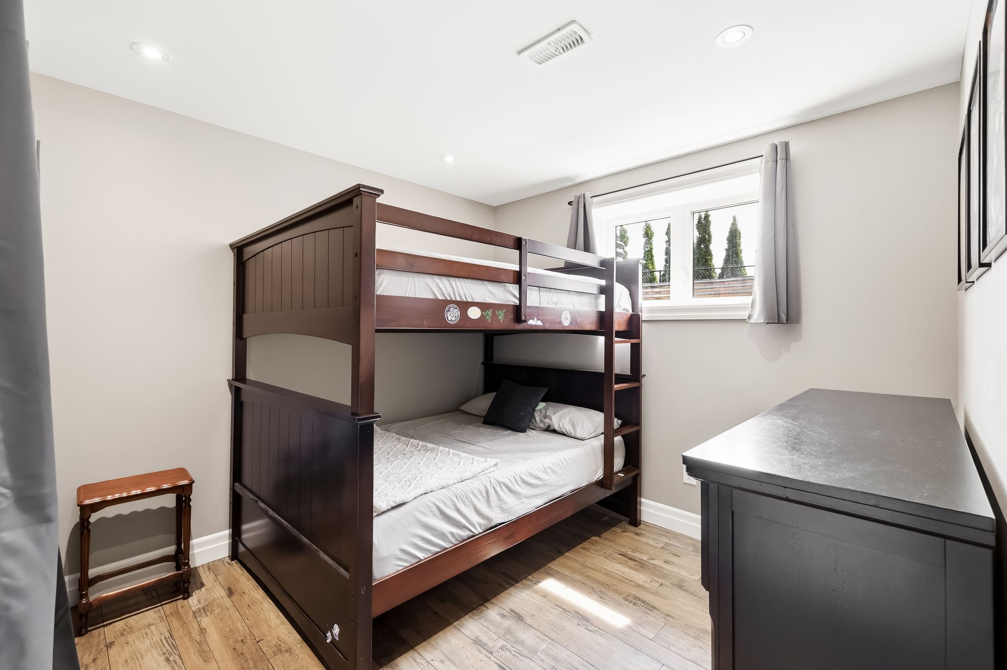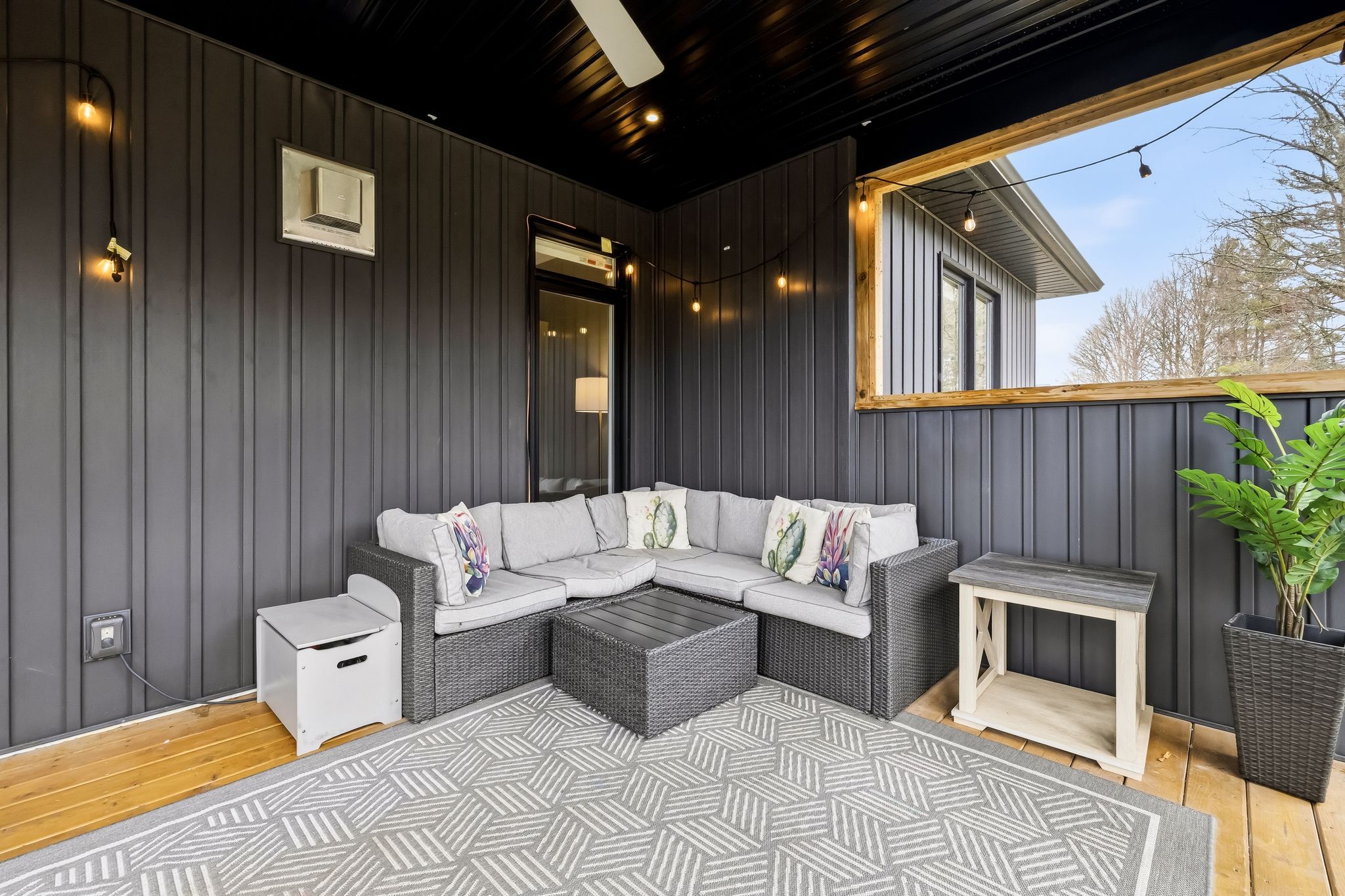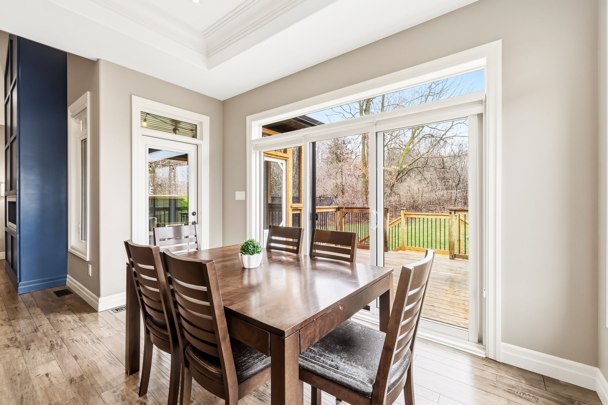 • Oversized covered deck overlooking a fenced yard with no rear neighbors.