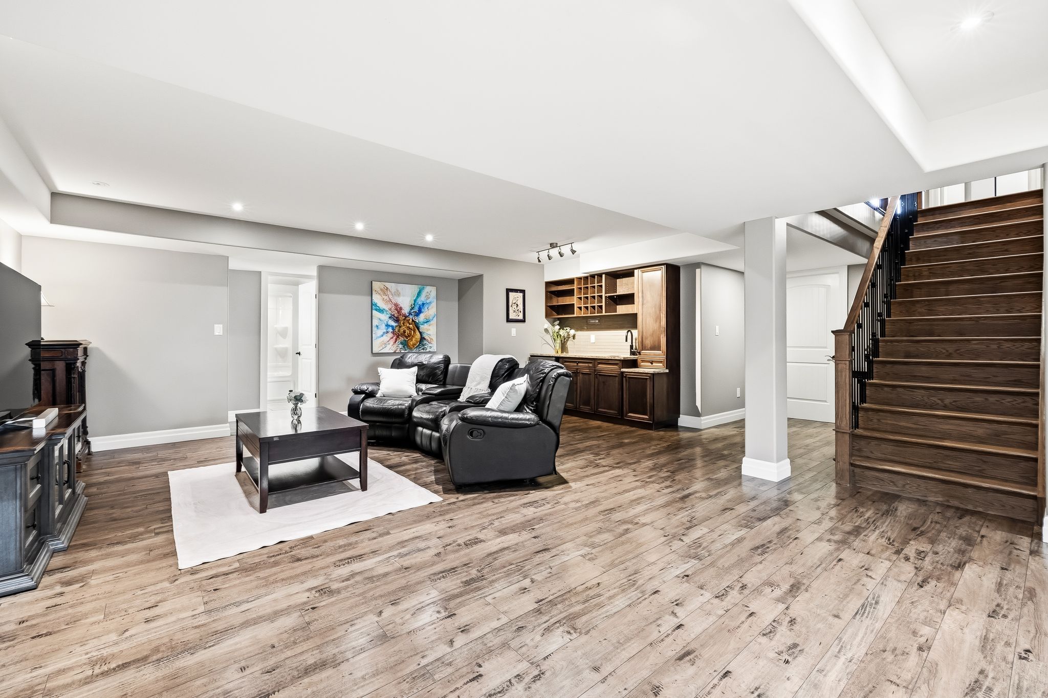 • Bright lower level with rec room, wet bar, and extra bedrooms.
