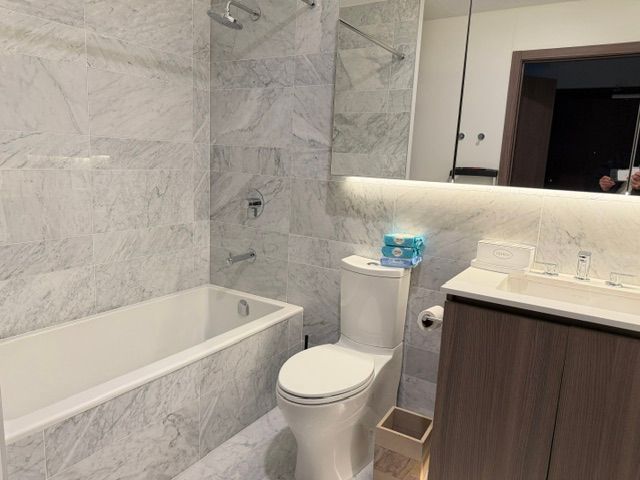 Spacious two-bedroom suite in the heart of toronto @ lakeshore condos. This bright & spacious unit is south/west facing with a stunning lake view. Modern open concept layout with a large balcony perfect for entertaining. Comes with 1 parking & 1 locker. Amenities include: sauna, gym, wet spa zone, outdoor yoga & fitness, theatre, guest suites & more. Steps away from shoppers drug mart, loblaws, lcbo, public transit, td bank, restaurants and many more.