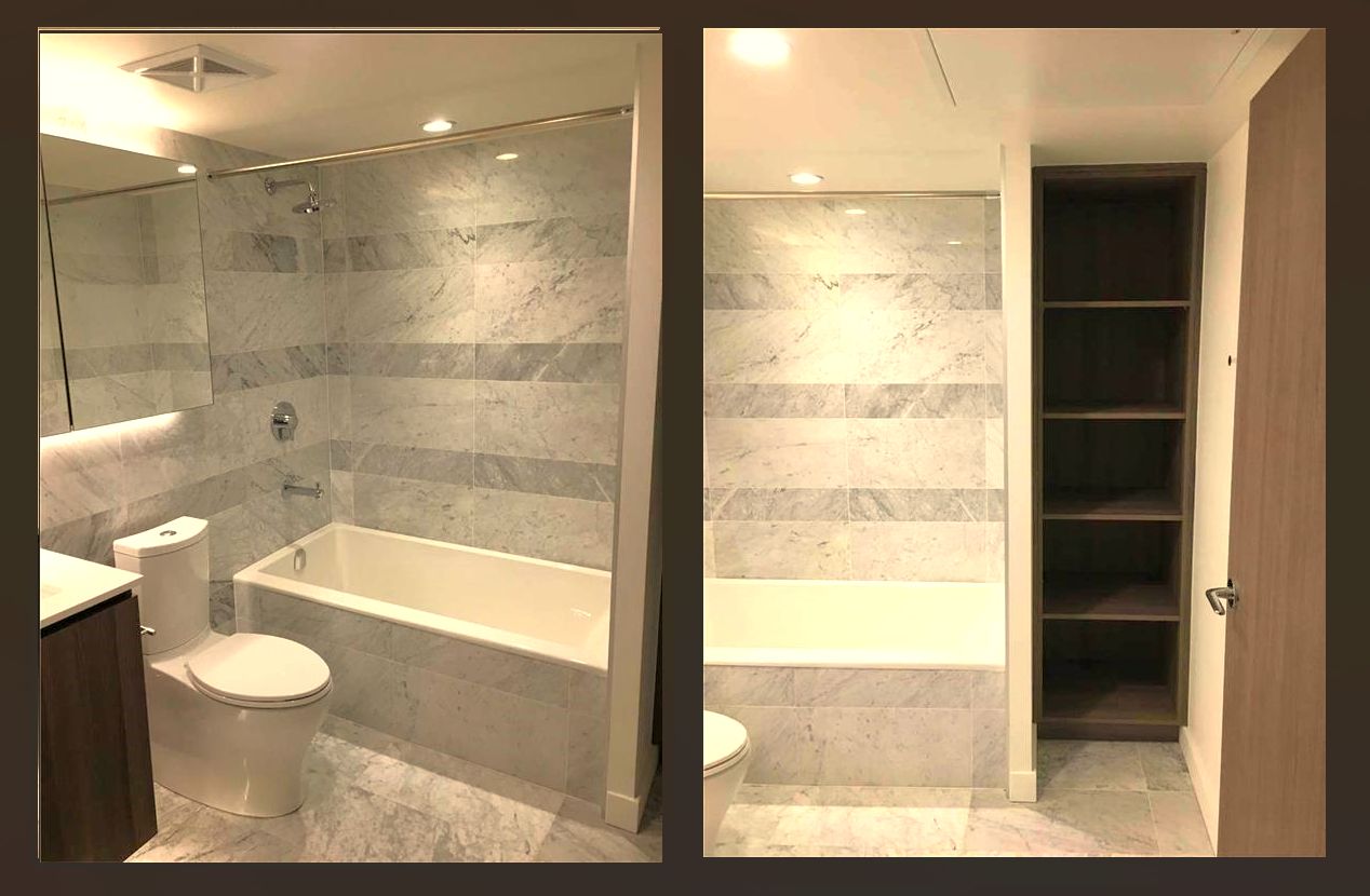• Extra large bathroom with marble throughout and built-in cabinetry.